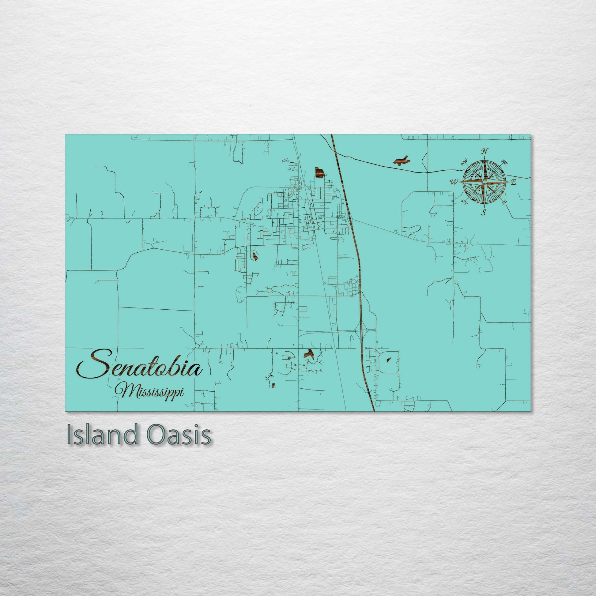 This is a street map of Senatobia, MS designed by Fire & Pine artists.