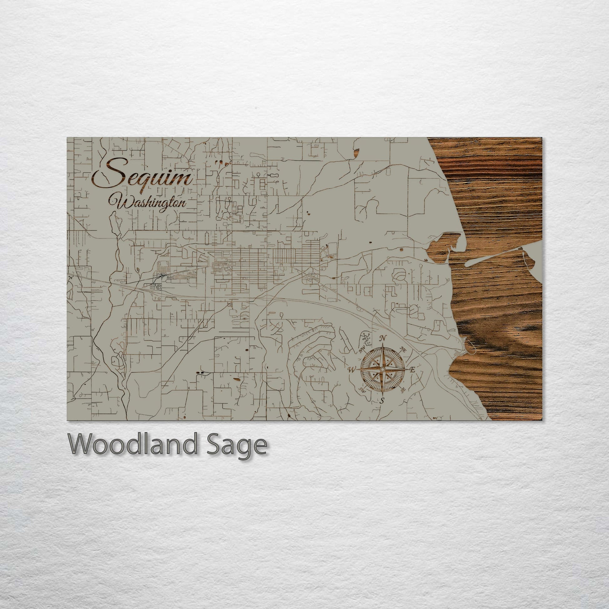This is a street map of Sequim, WA designed by Fire & Pine artists.