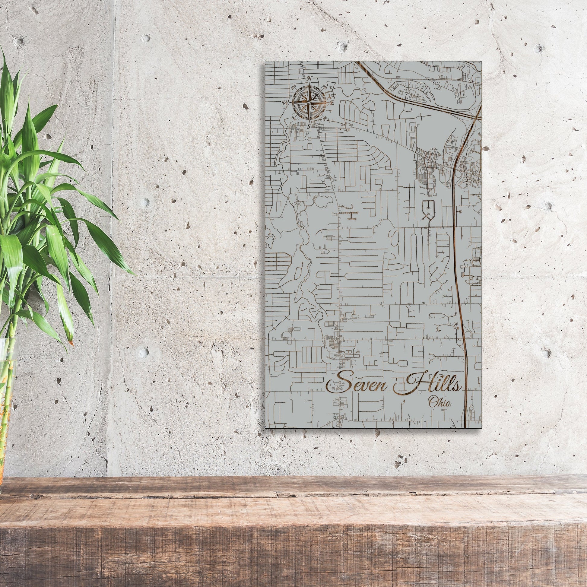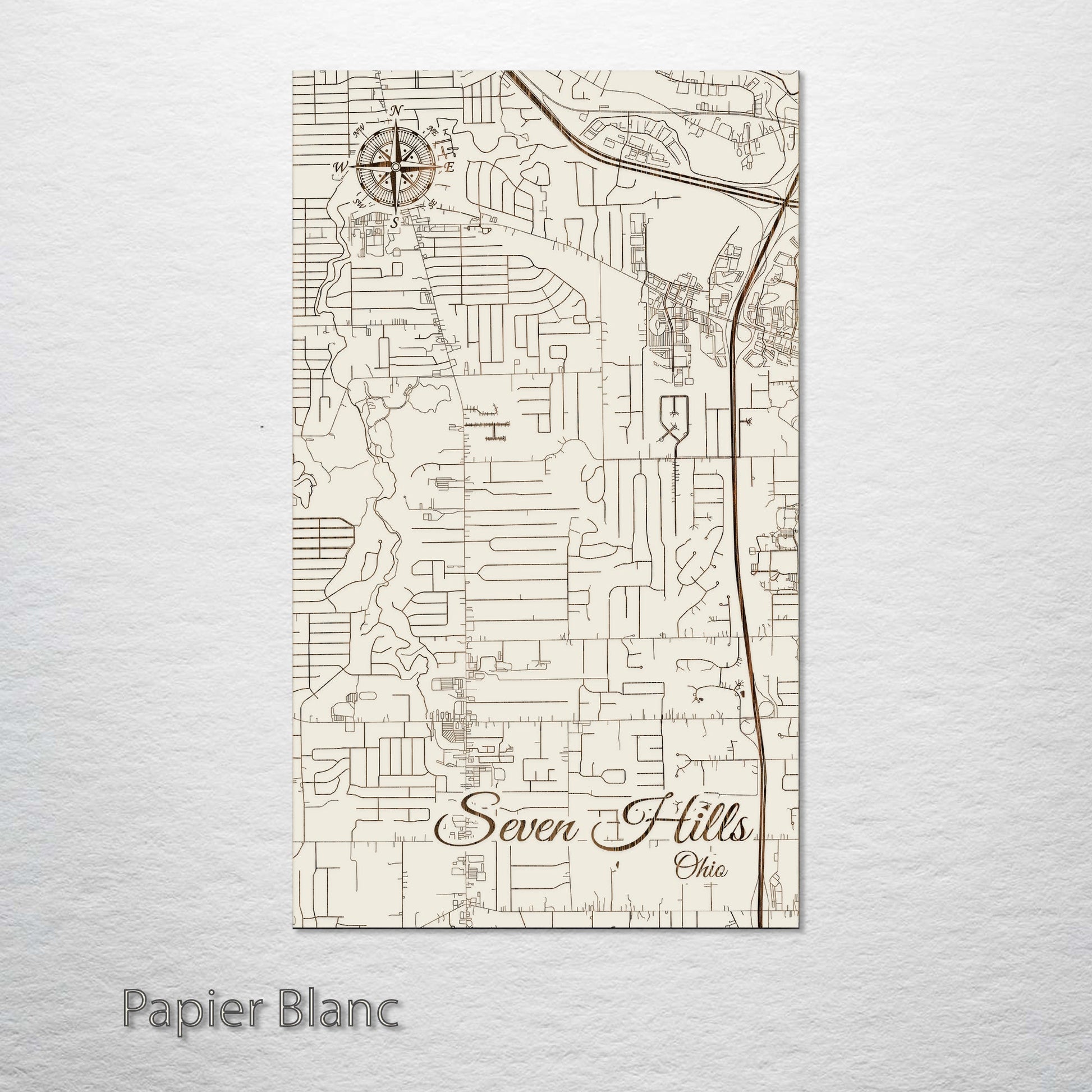 This is a street map of Seven Hills, OH designed by Fire & Pine artists.