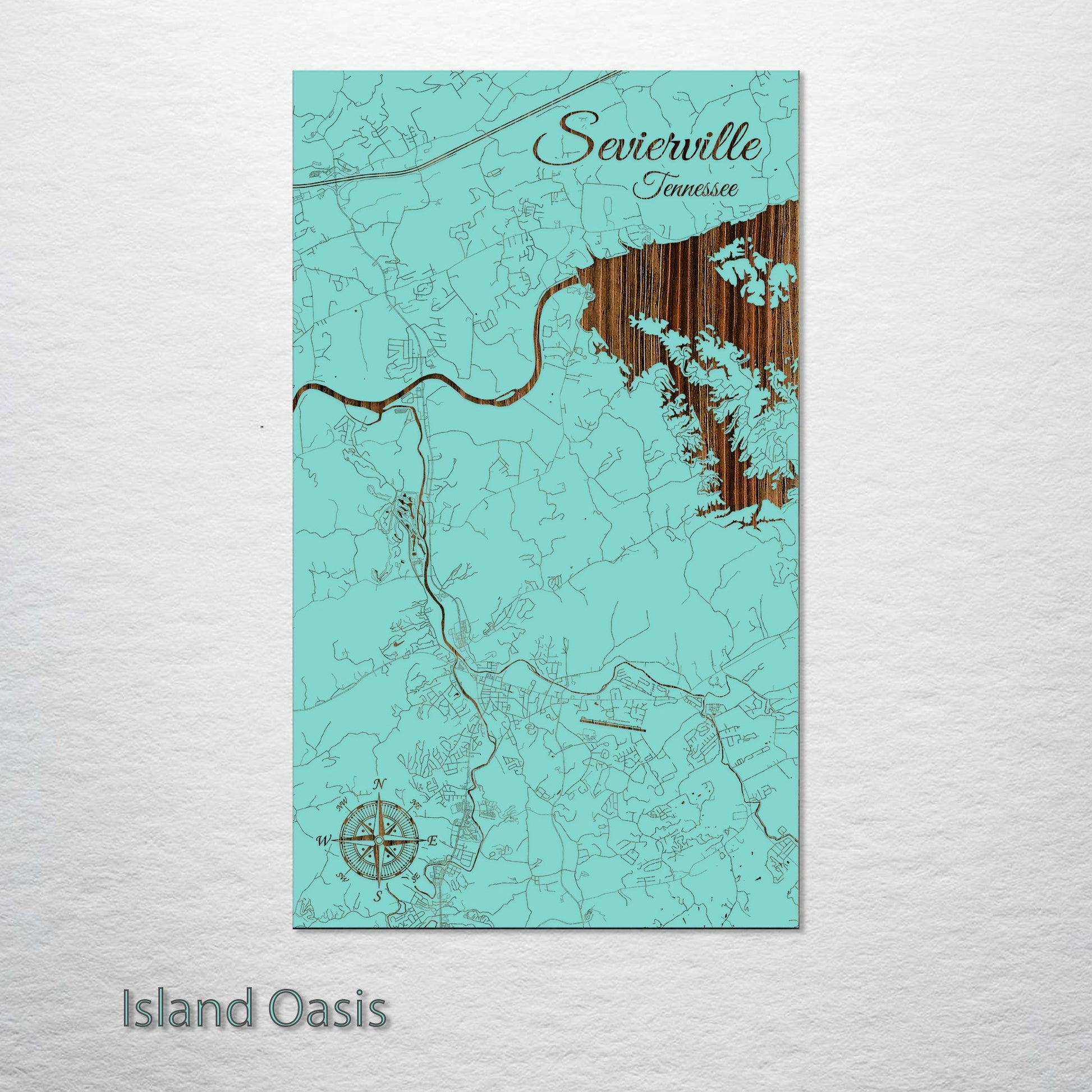 This is a street map of Sevierville, TN designed by Fire & Pine artists.