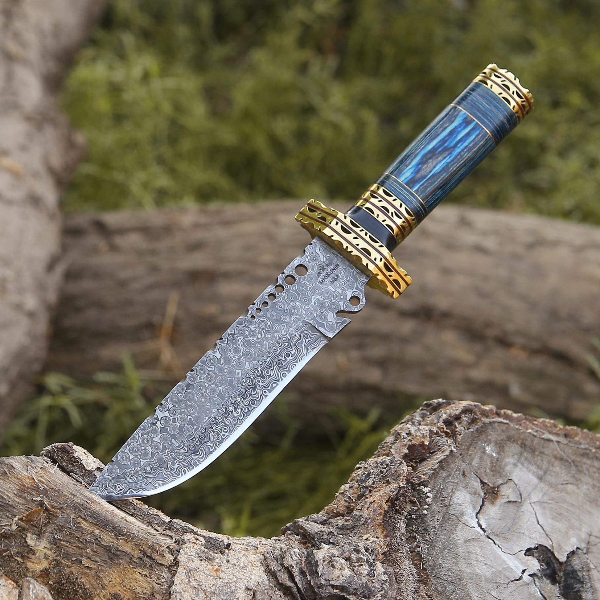 Shadowblade Damascus Steel Bowie Knife with Pakkawood Handle & Sheath