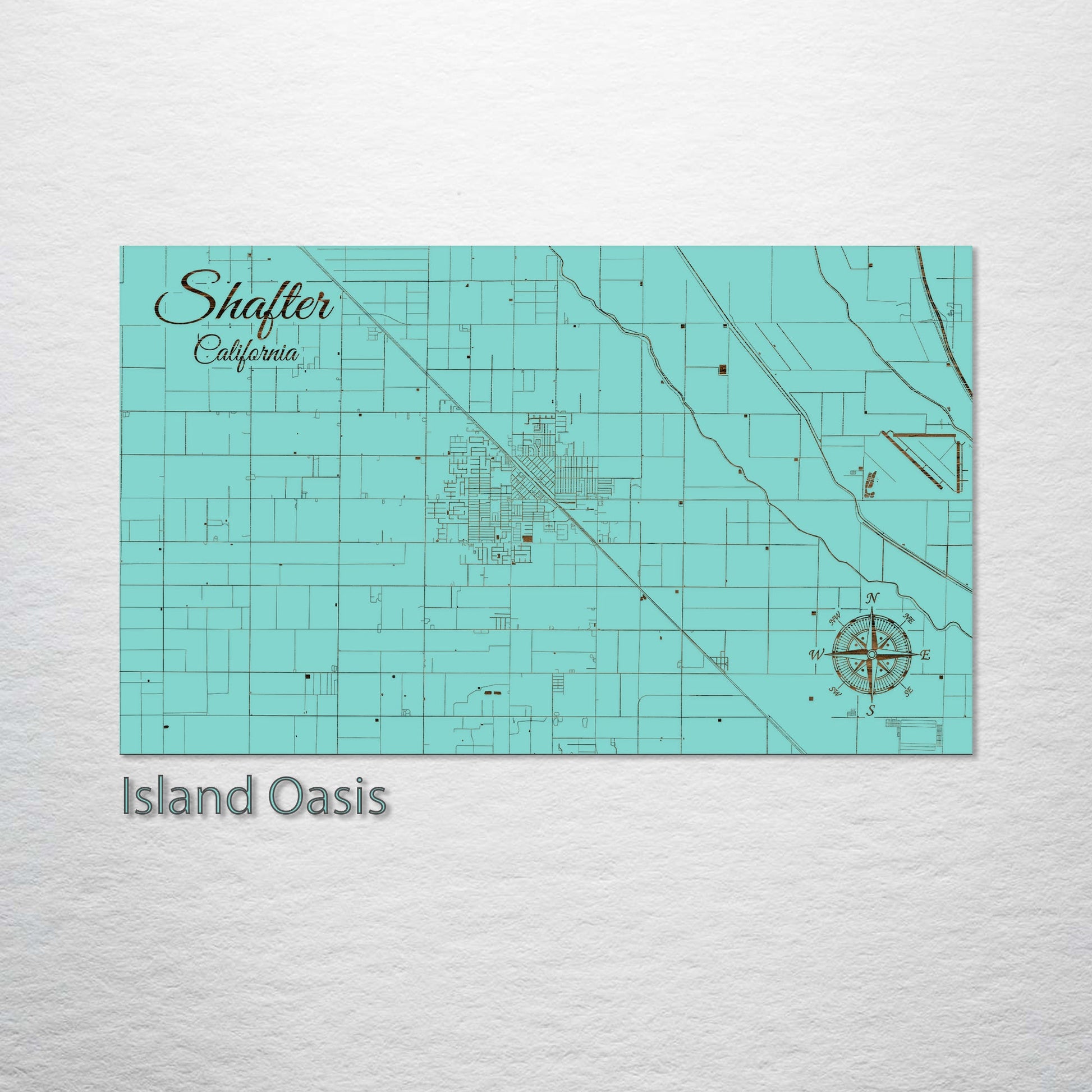 This is a street map of Shafter, CA designed by Fire & Pine artists.