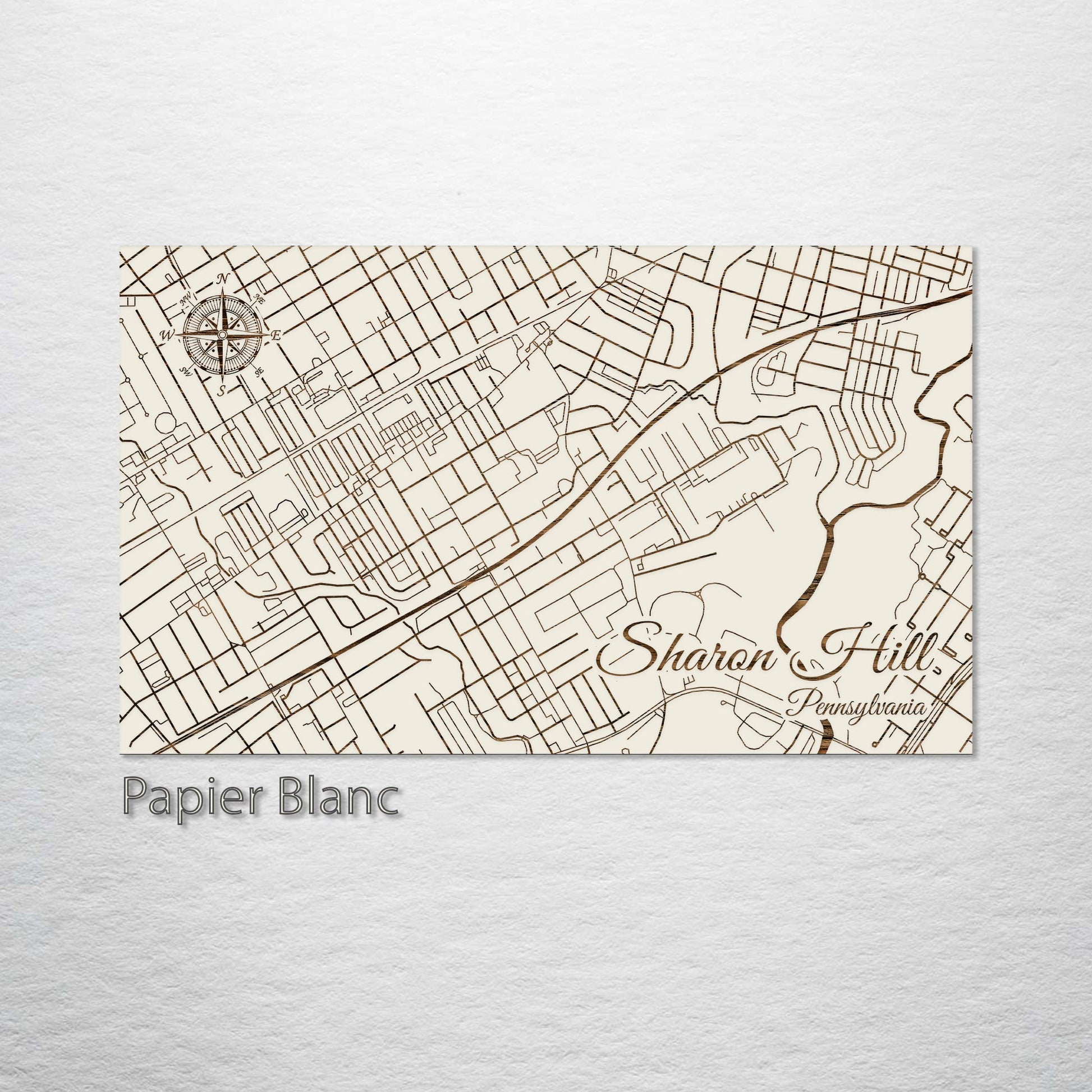 This is a street map of Sharon Hill, PA designed by Fire & Pine artists.