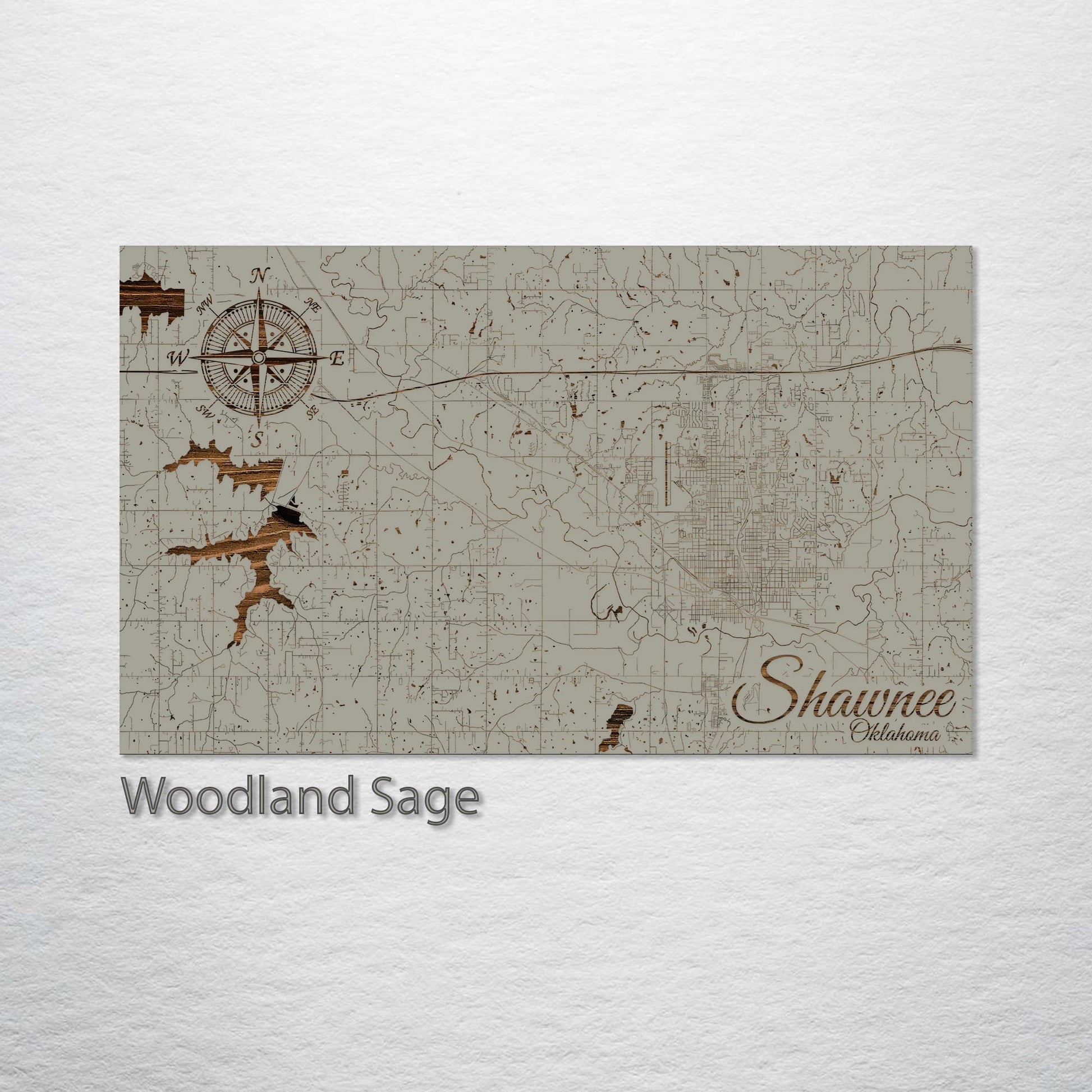 This is a street map of Shawnee, OK designed by Fire & Pine artists.