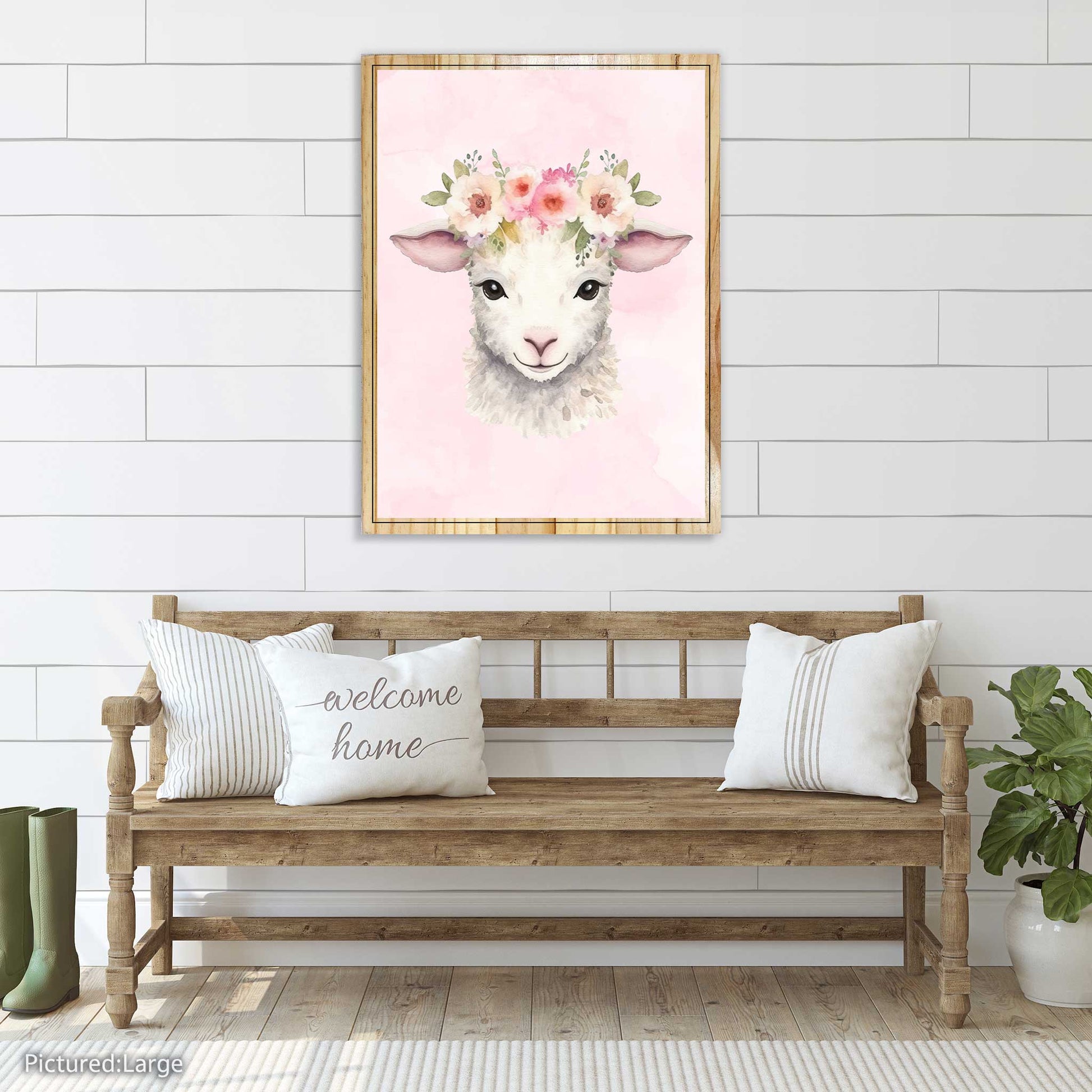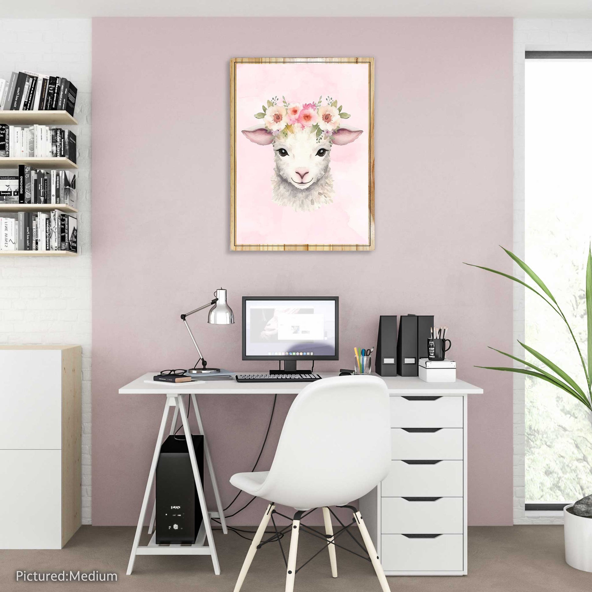 Available in a range of sizes, this print is ready to hang and will fit effortlessly into your space. With customization options available, you can make this piece even more special for your little one.Bring the essence of spring into your home with this heartwarming 'Sheep Flower Crown' print, and let the new beginnings of the season flourish in your child's living space.