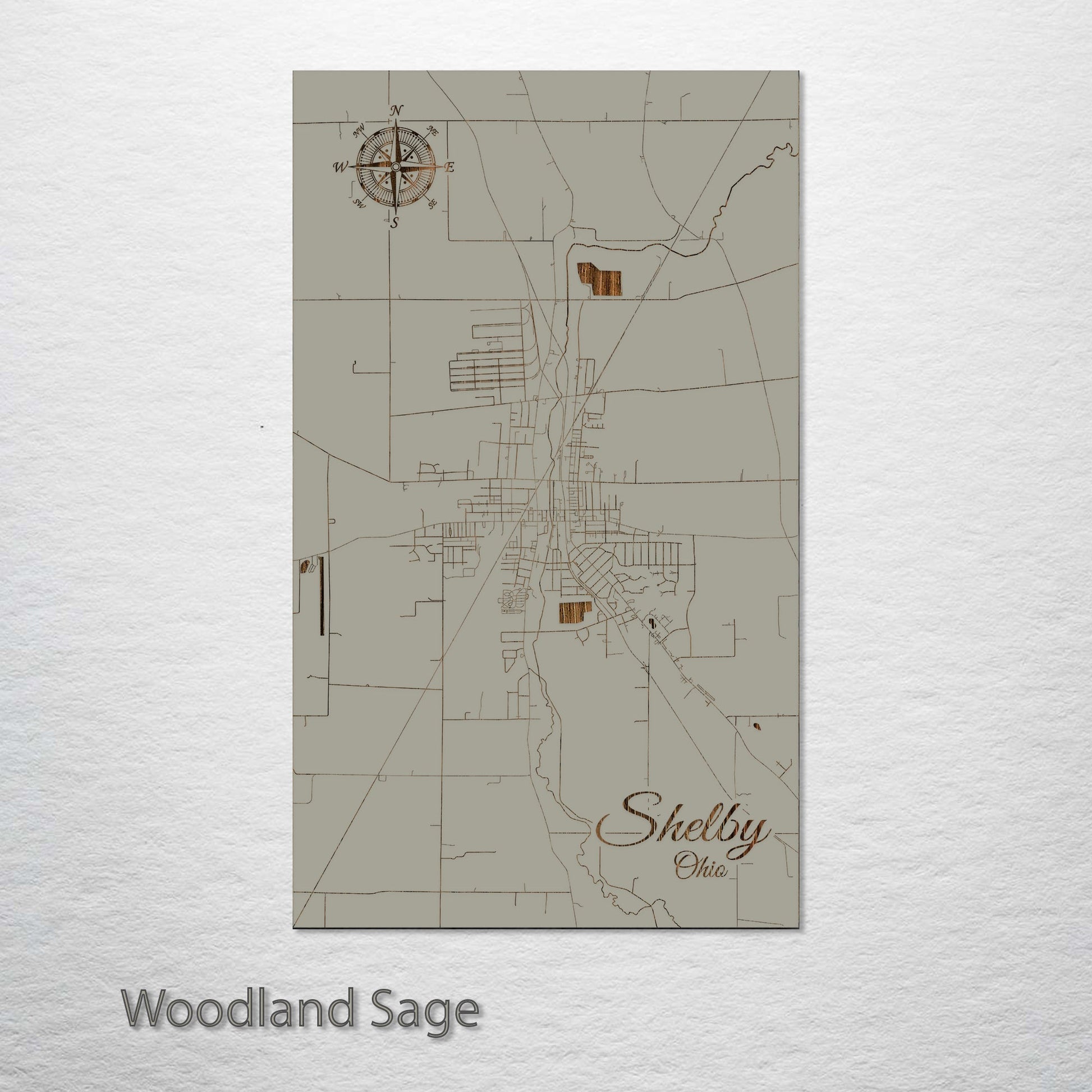 This is a street map of Shelby, OH designed by Fire & Pine artists.