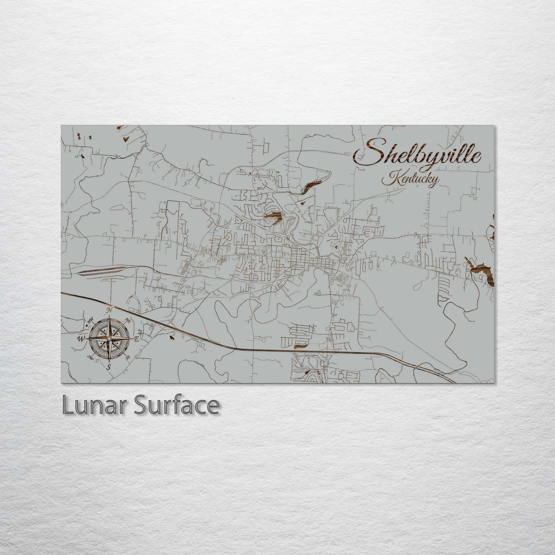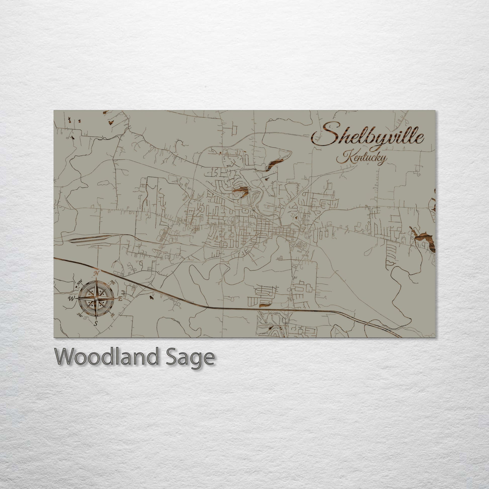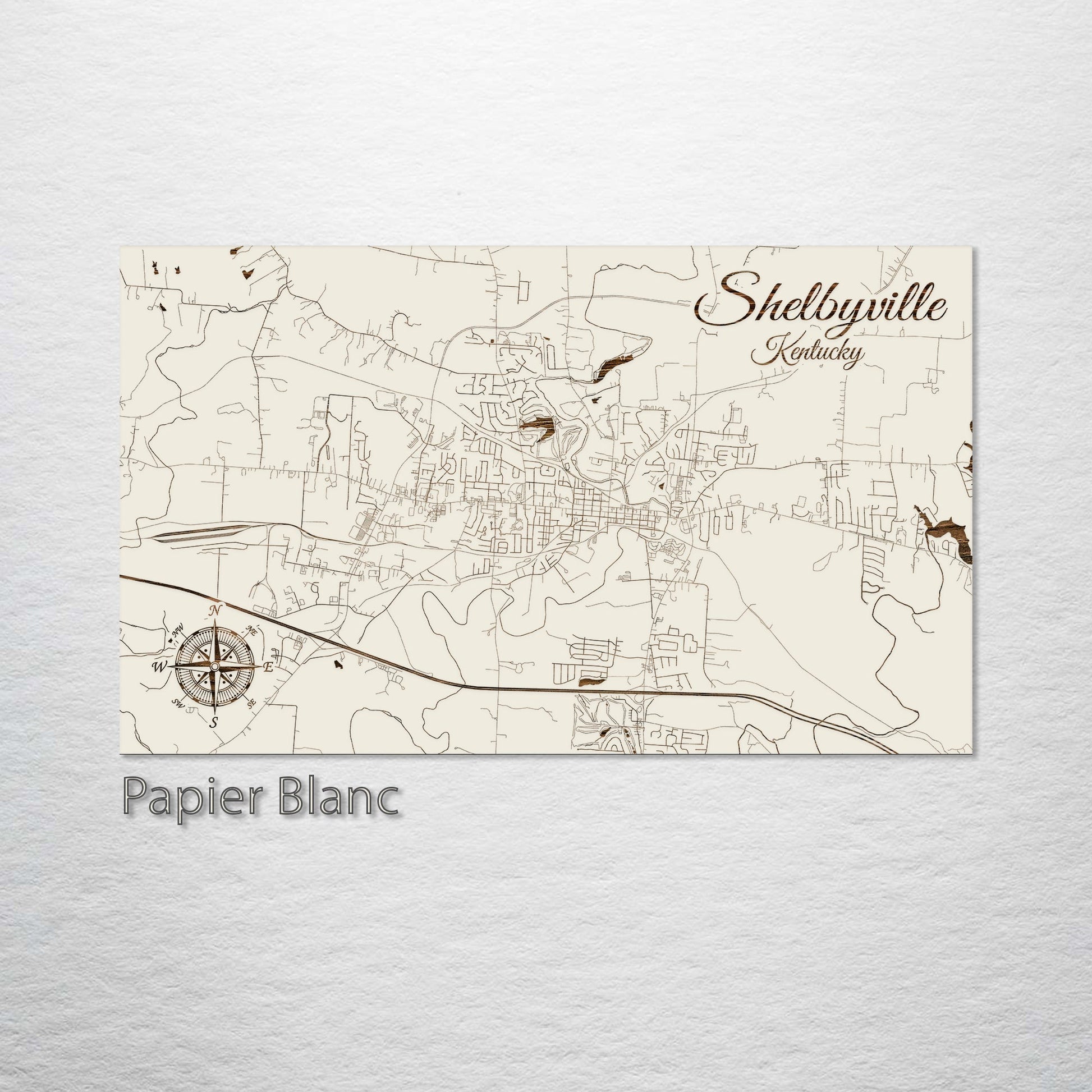 This is a street map of Shelbyville, KY designed by Fire & Pine artists.
