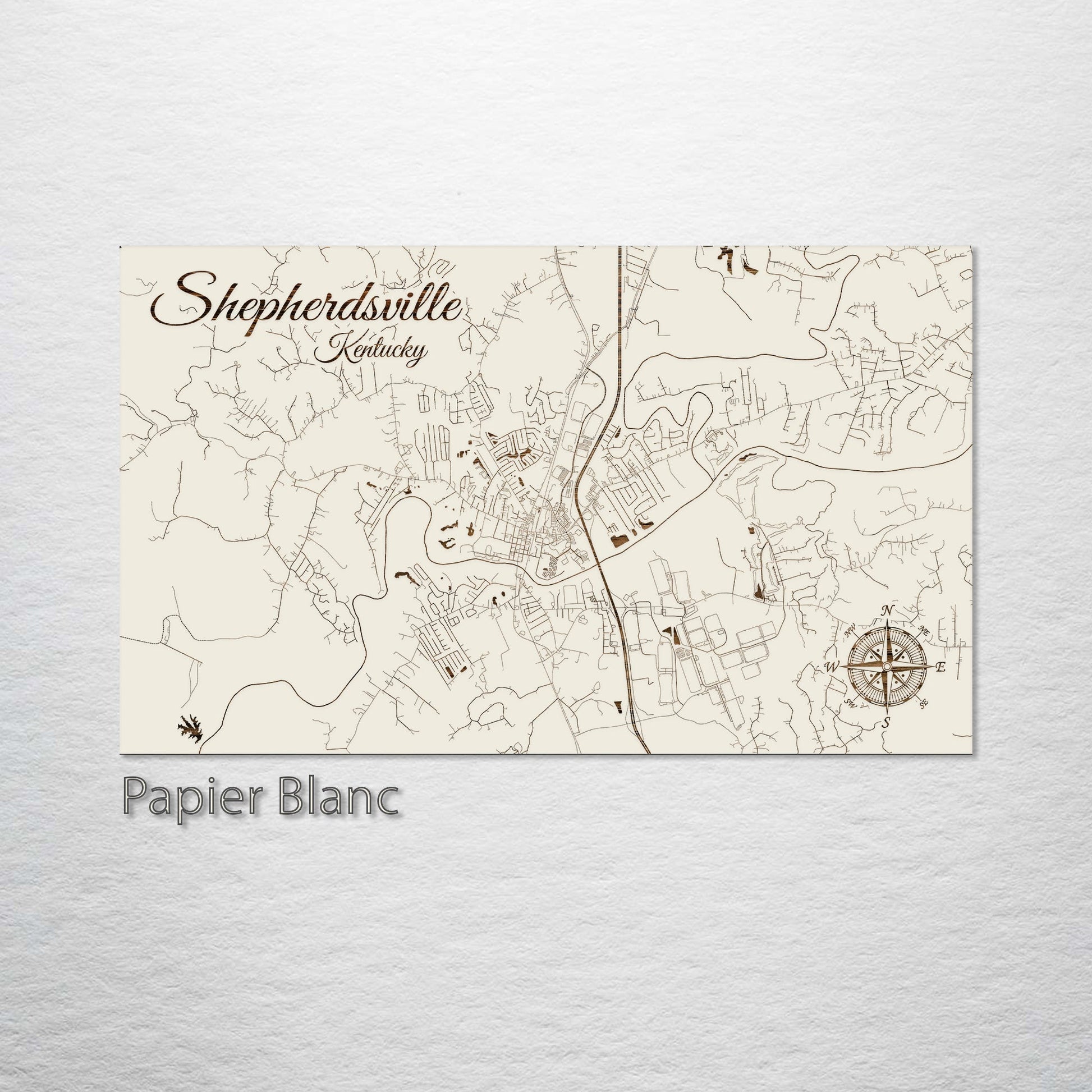 This is a street map of Shepherdsville, KY designed by Fire & Pine artists.