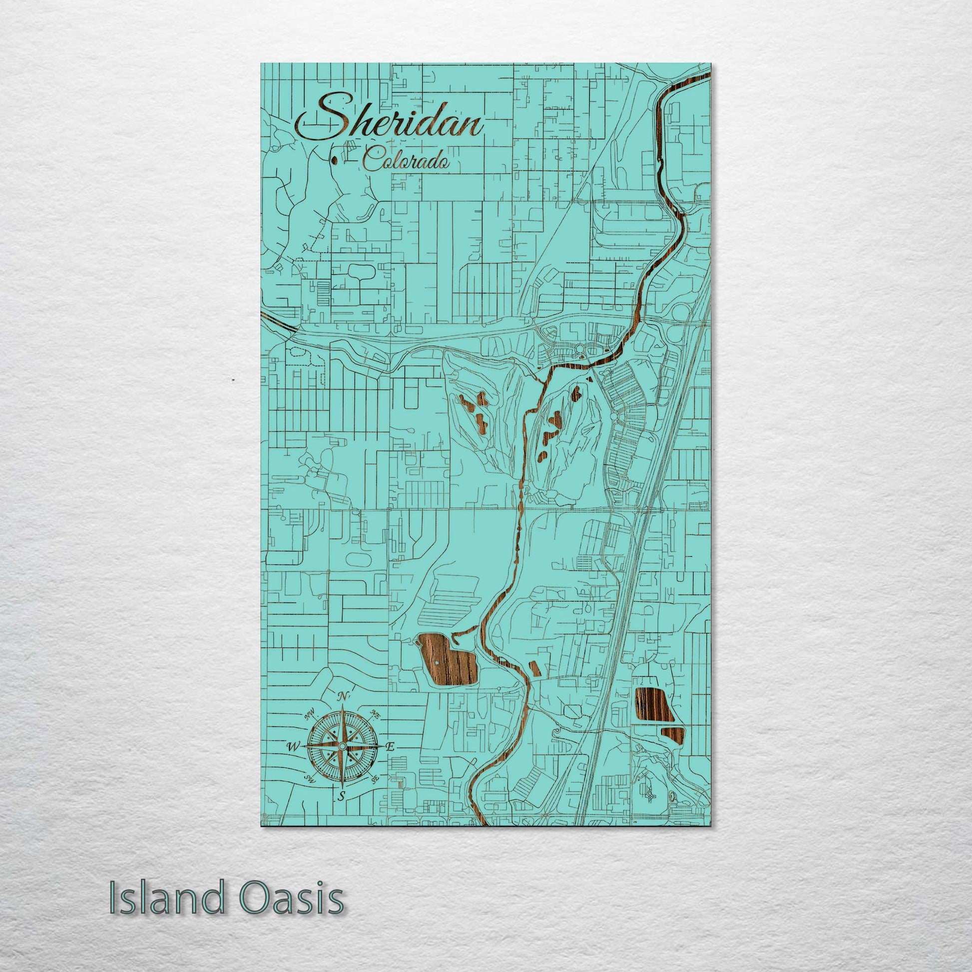 This is a street map of Sheridan, CO designed by Fire & Pine artists.