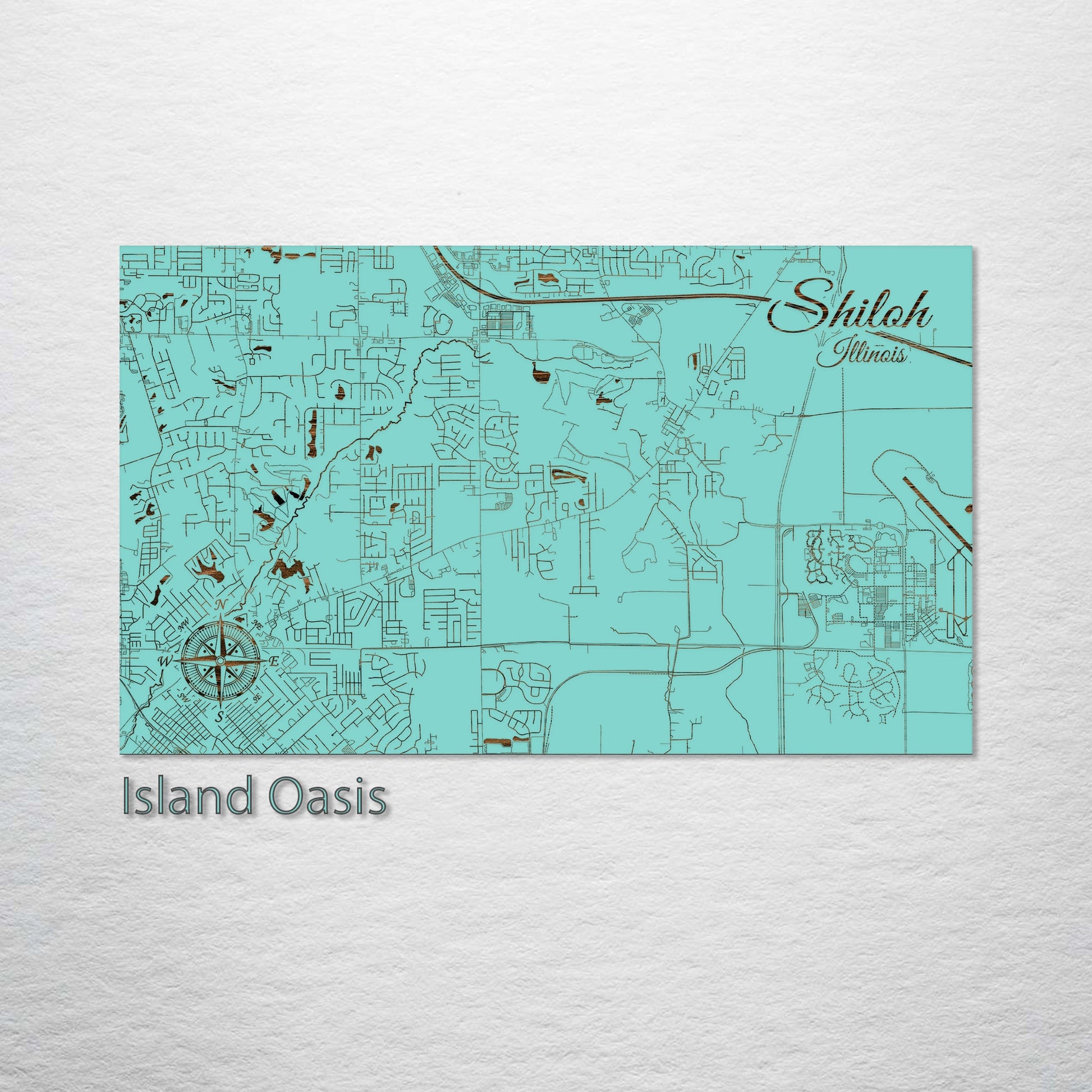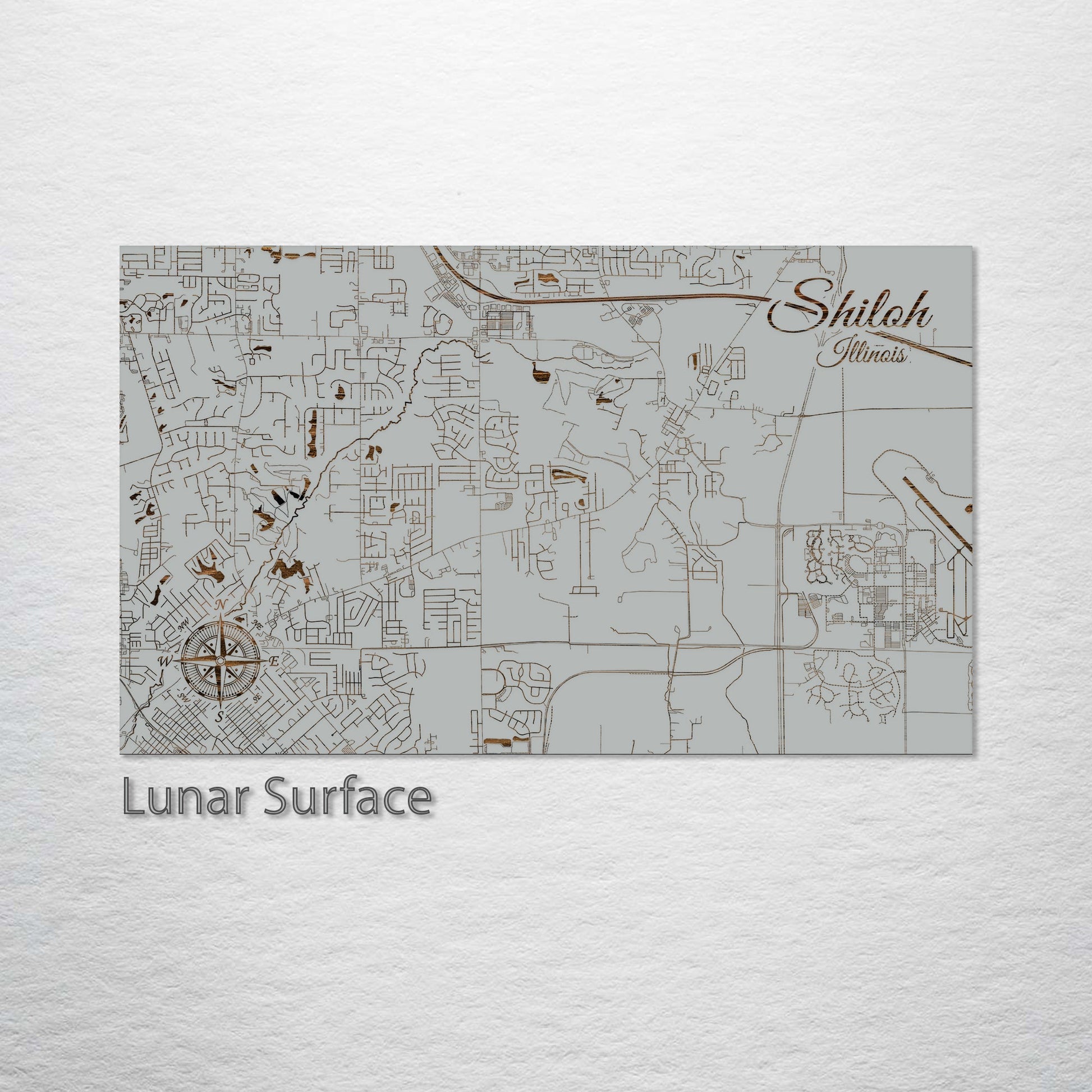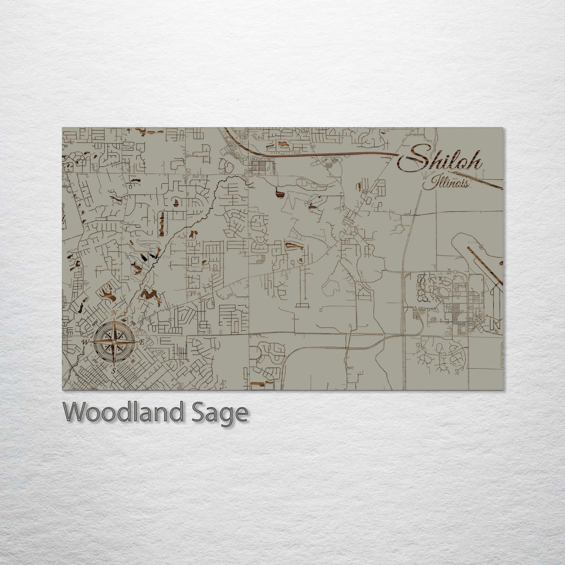 This is a street map of Shiloh, IL designed by Fire & Pine artists.