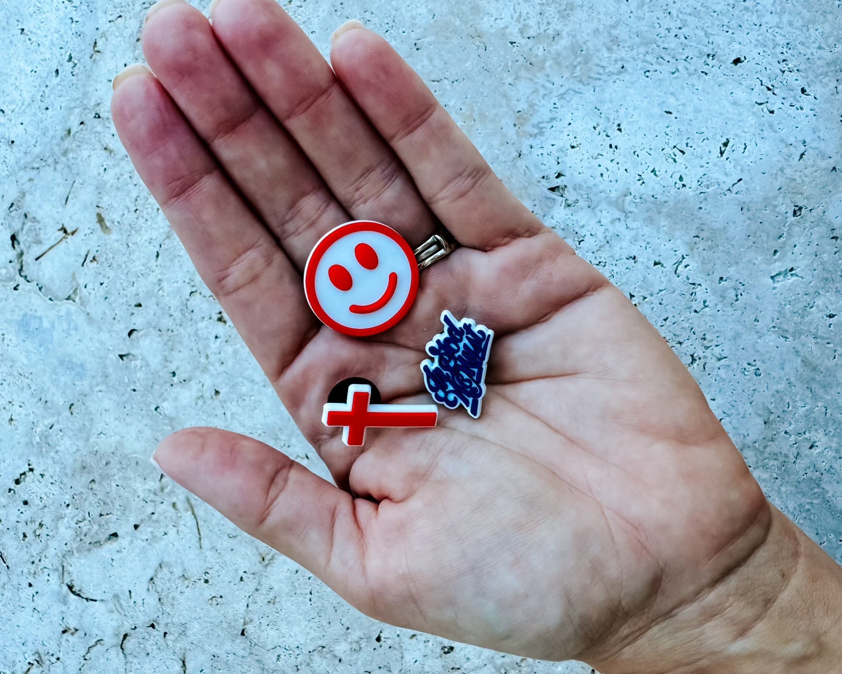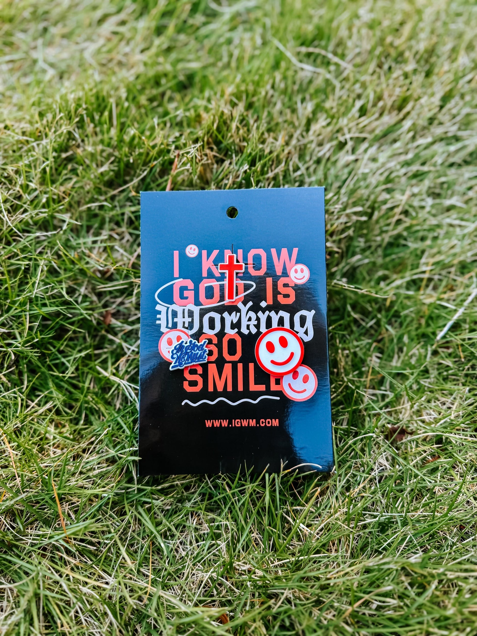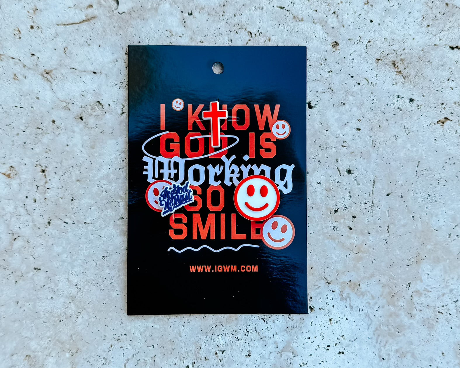 Use our shoe charms to personalize your shoes. This pack includes 3 different charms including our “In God We Must” logo, a cross and a smiley face. Each pack is displayed in a postcard with the saying “I know God is working so I smile”, so they are ready to give as a gift or keep for yourself!