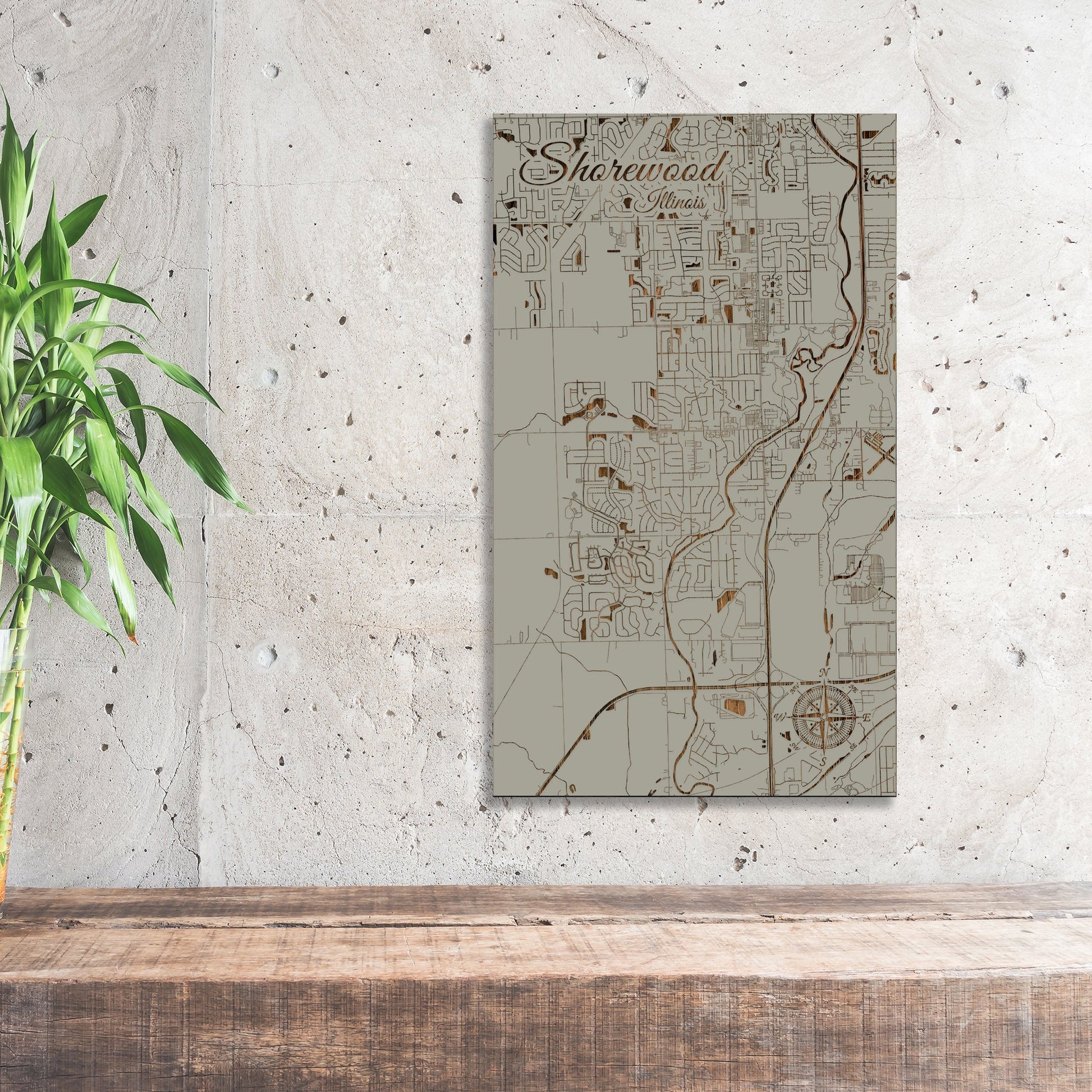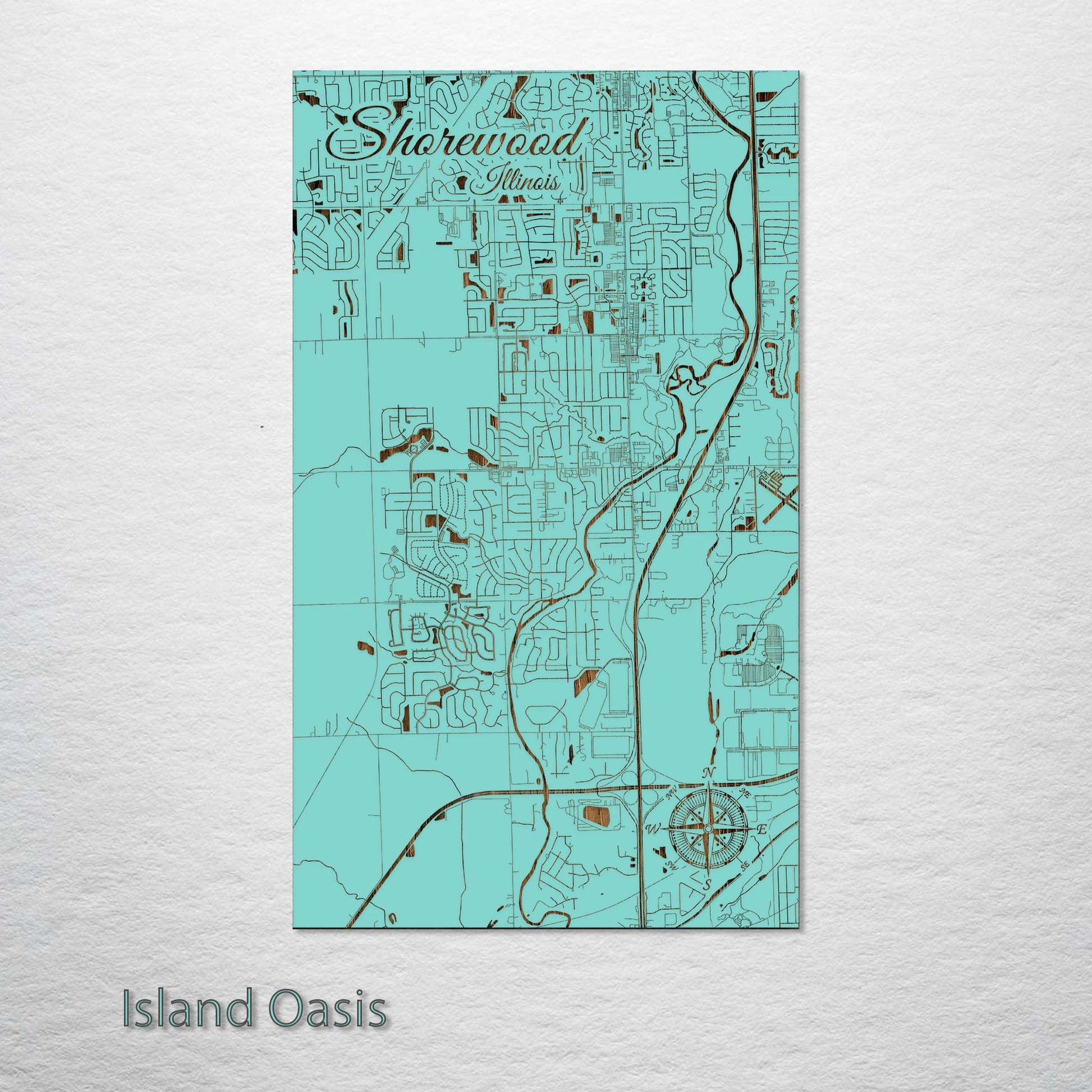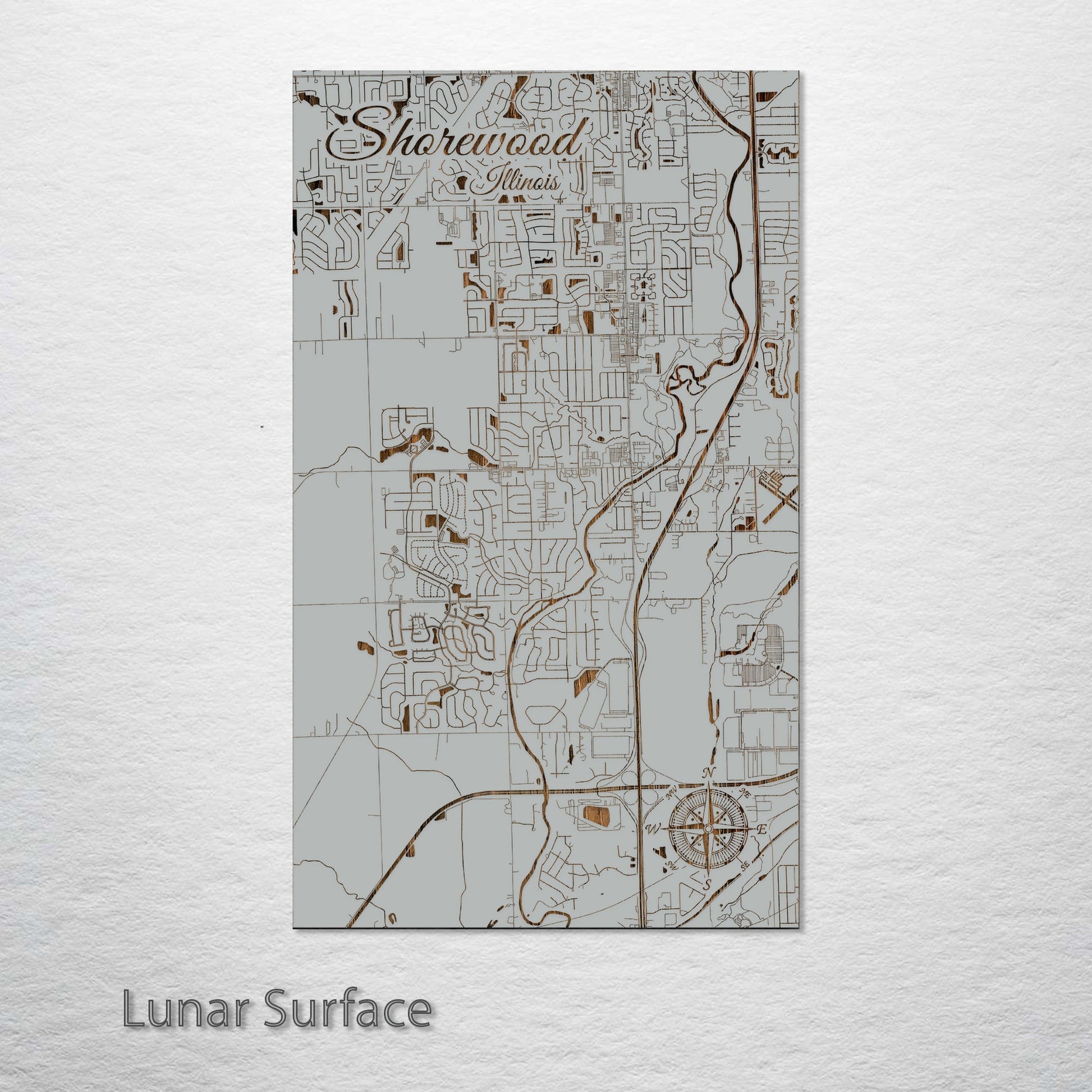 This is a street map of Shorewood, IL designed by Fire & Pine artists.