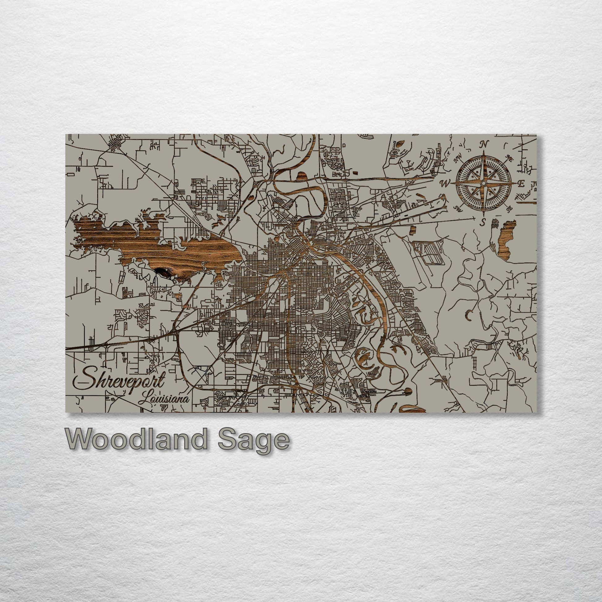 This is a street map of Shreveport, Louisiana designed by Fire & Pine artists.