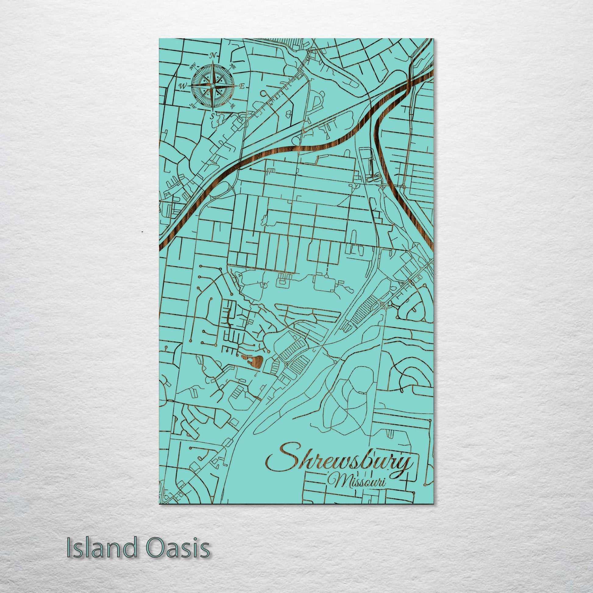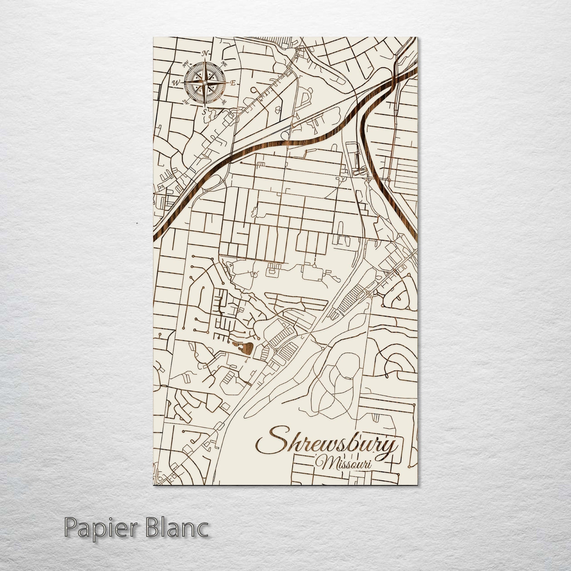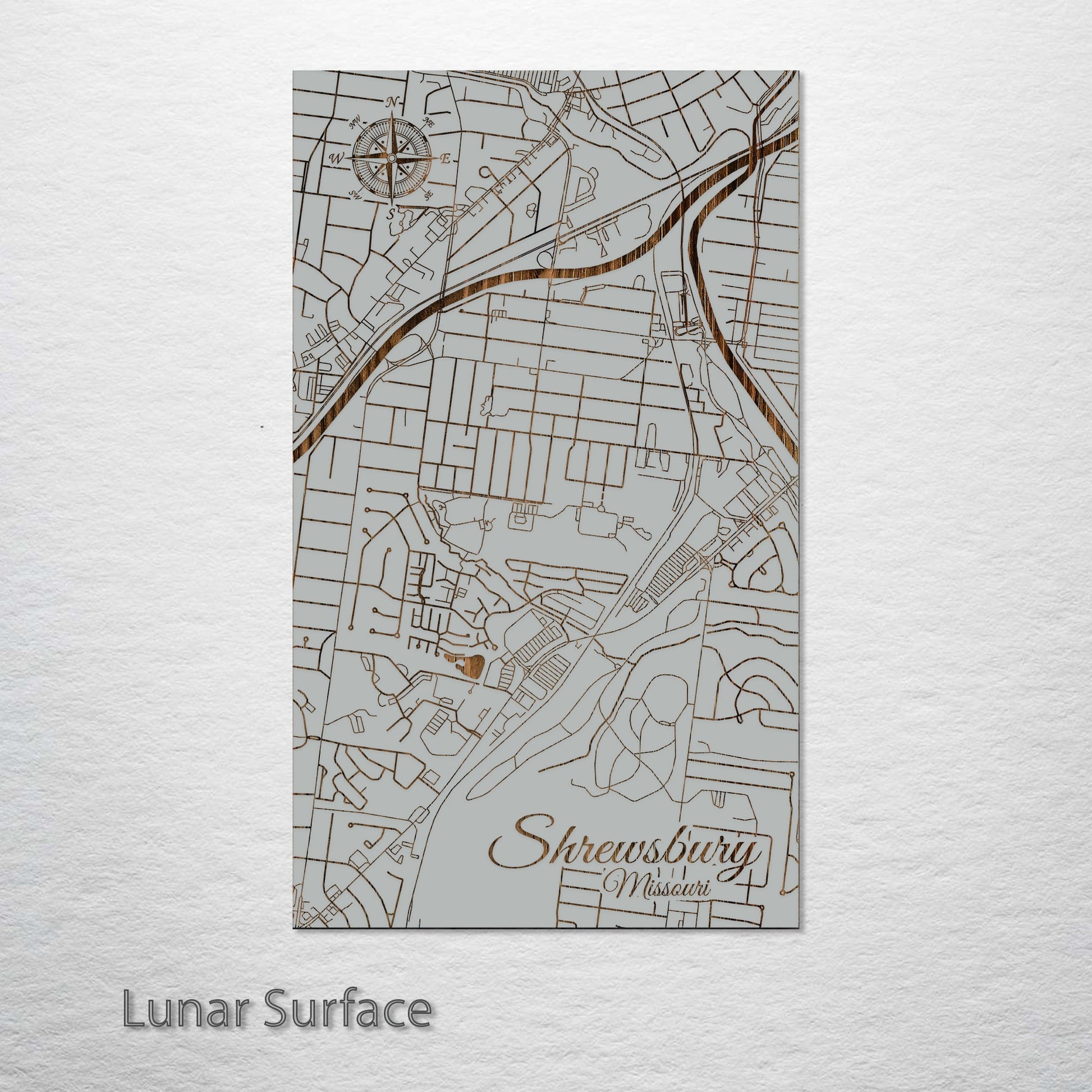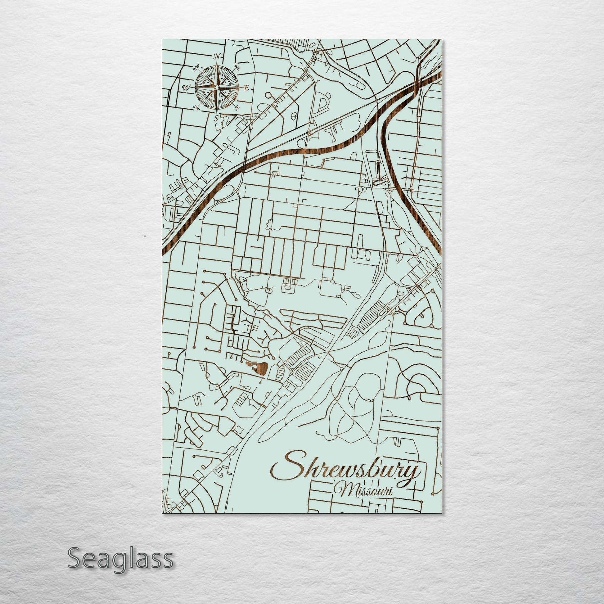 This is a street map of Shrewsbury, MO designed by Fire & Pine artists.