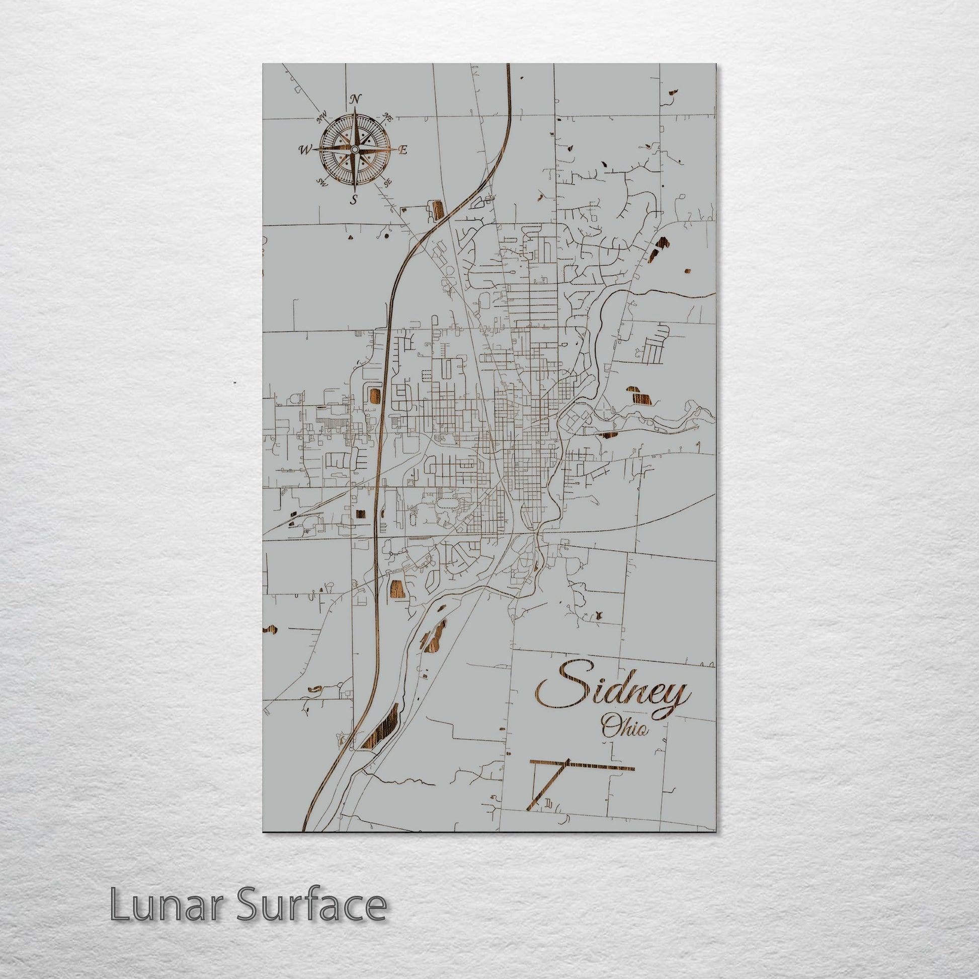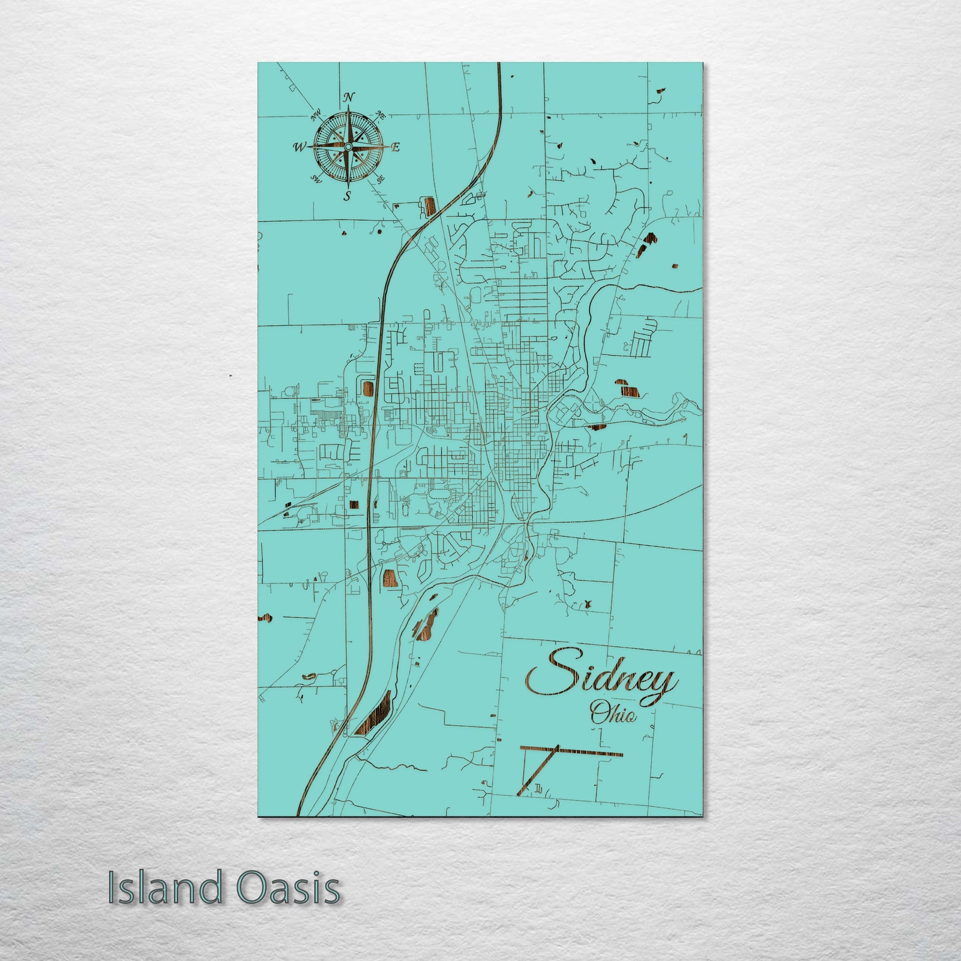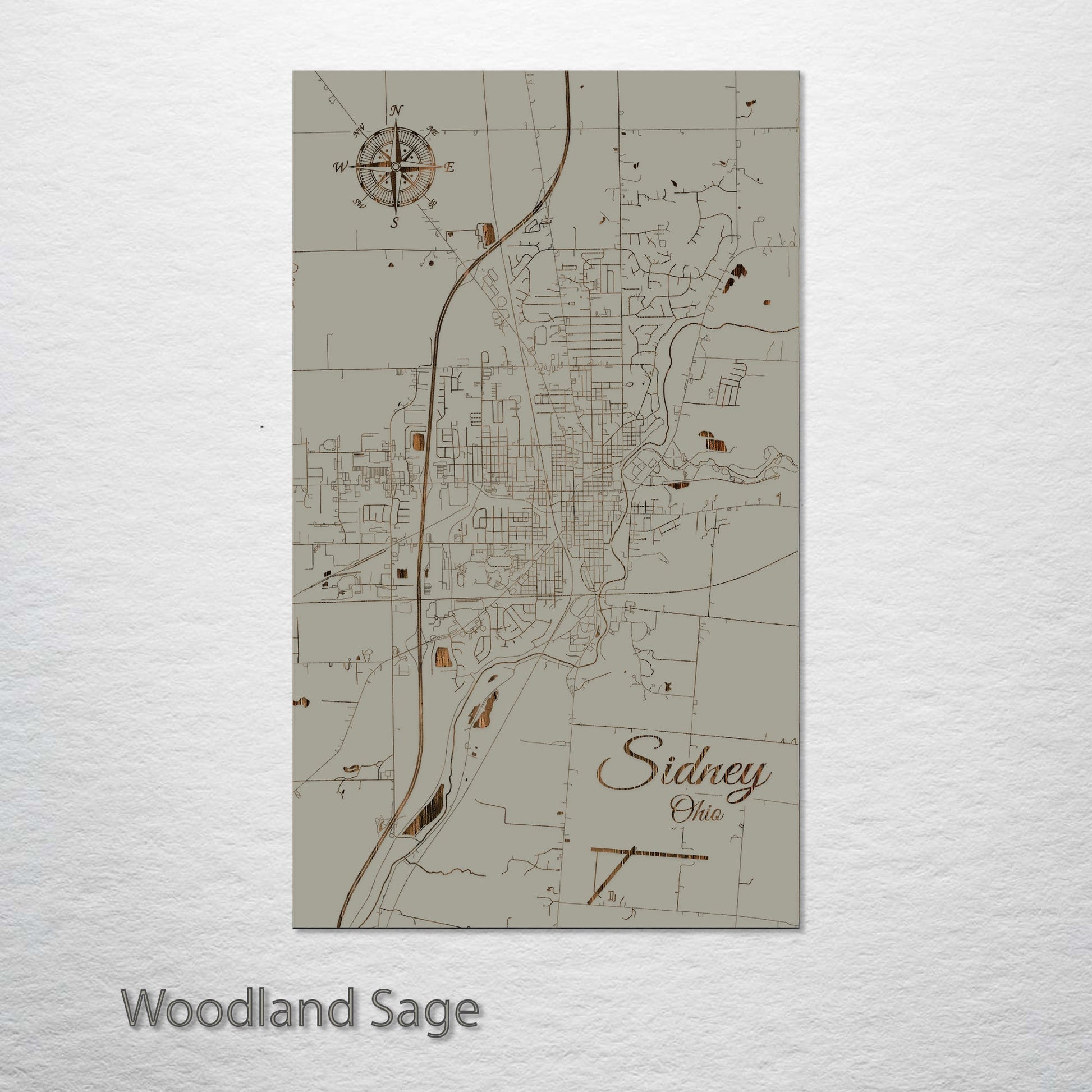 This is a street map of Sidney, OH designed by Fire & Pine artists.