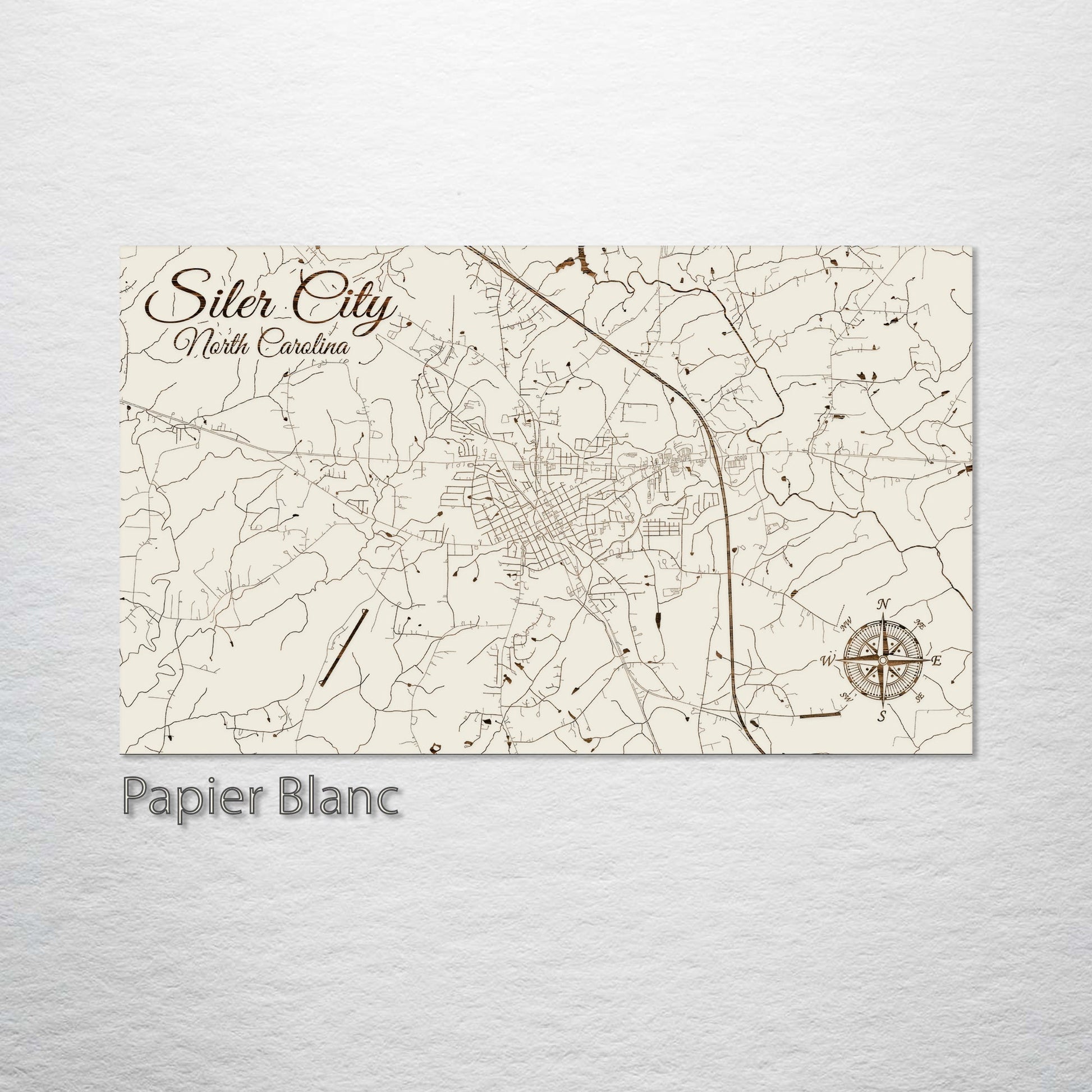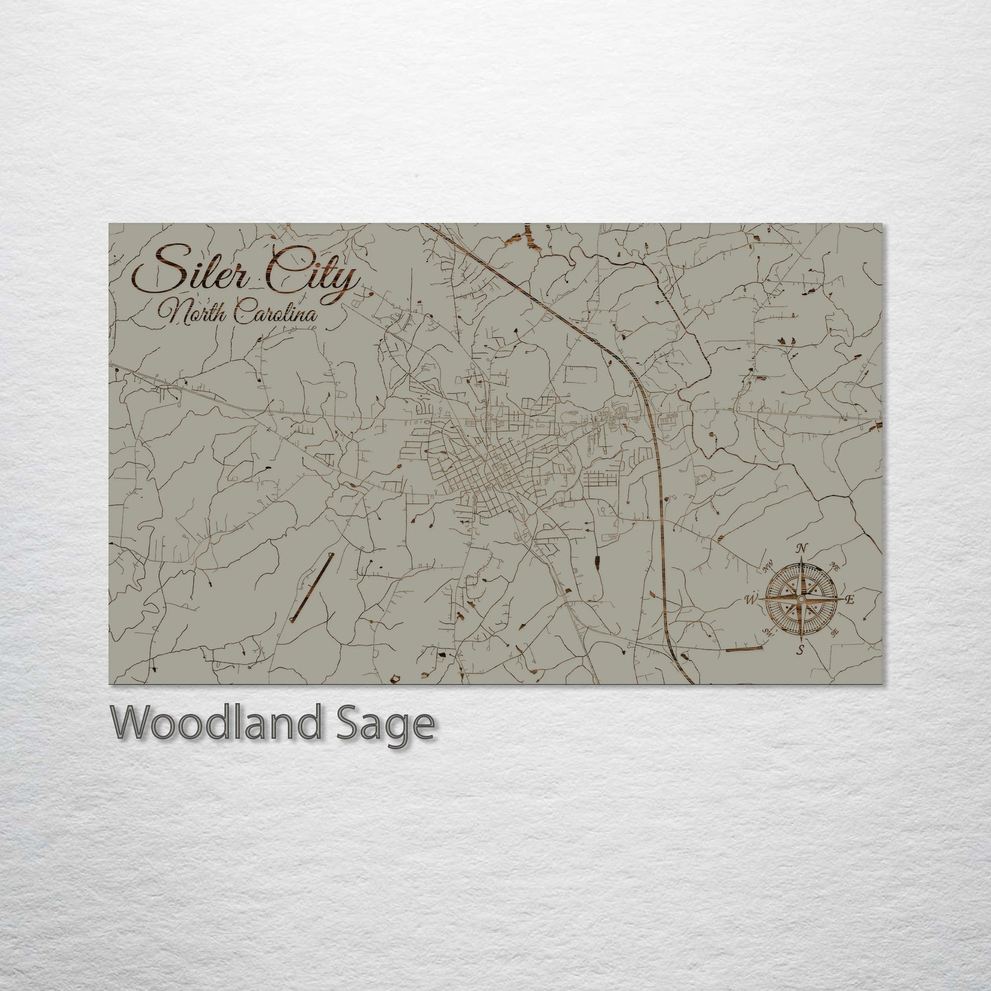 This is a street map of Siler City, NC designed by Fire & Pine artists.