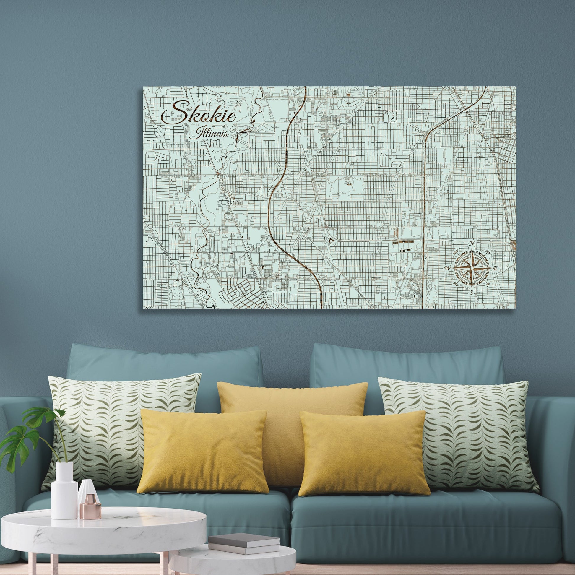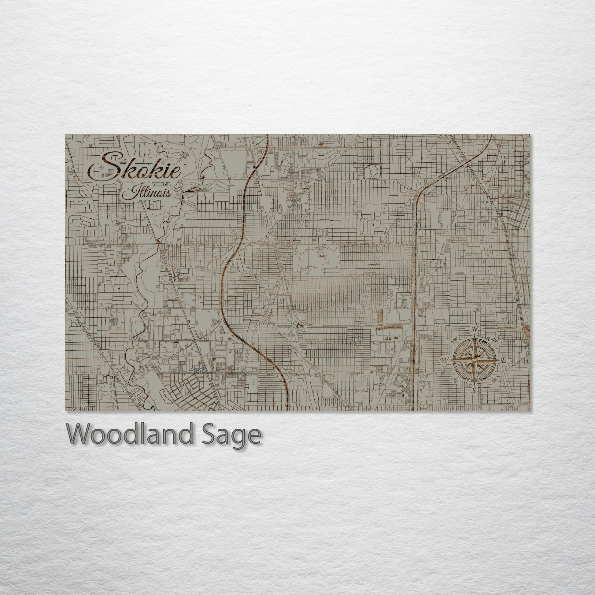 This is a street map of Skokie, IL designed by Fire & Pine artists.