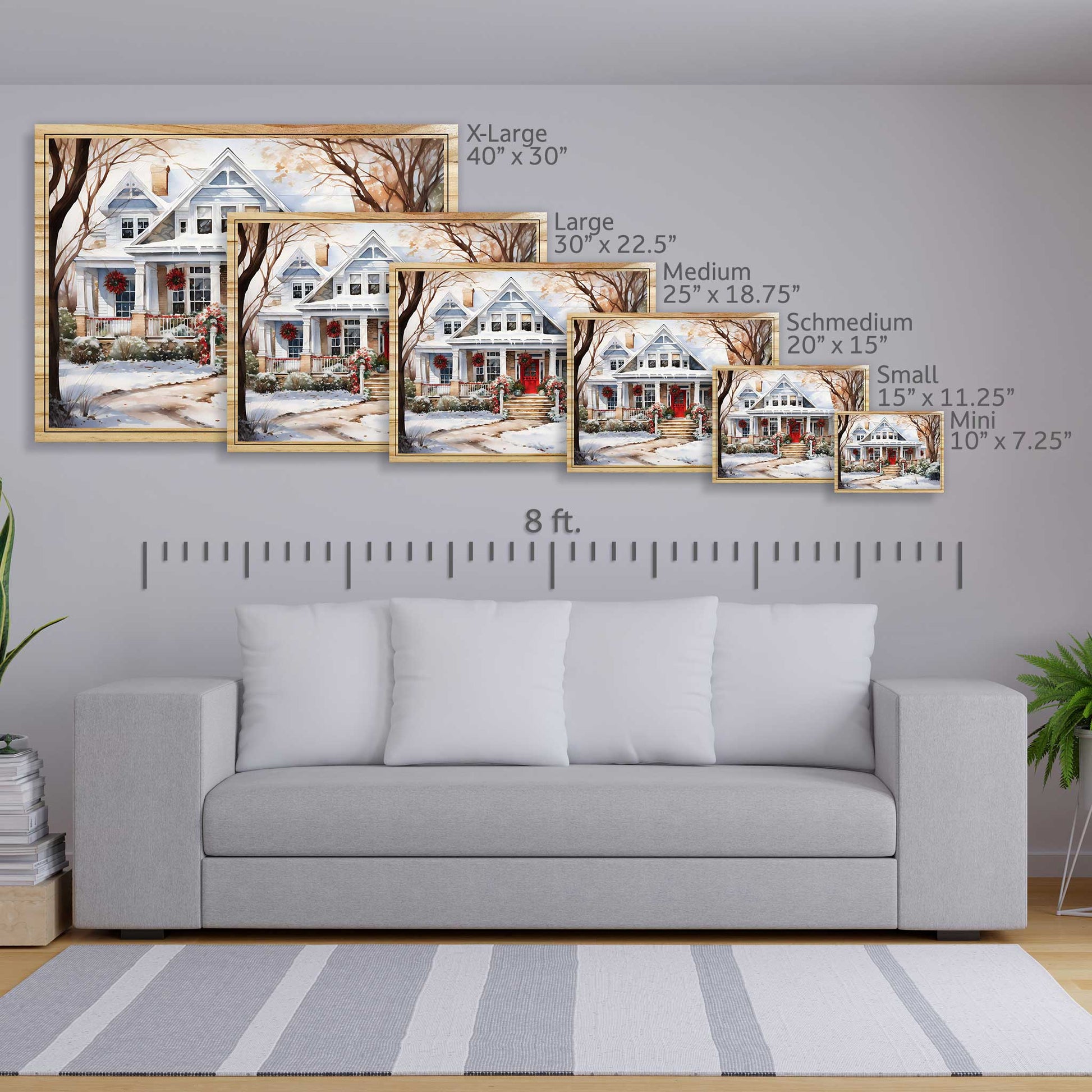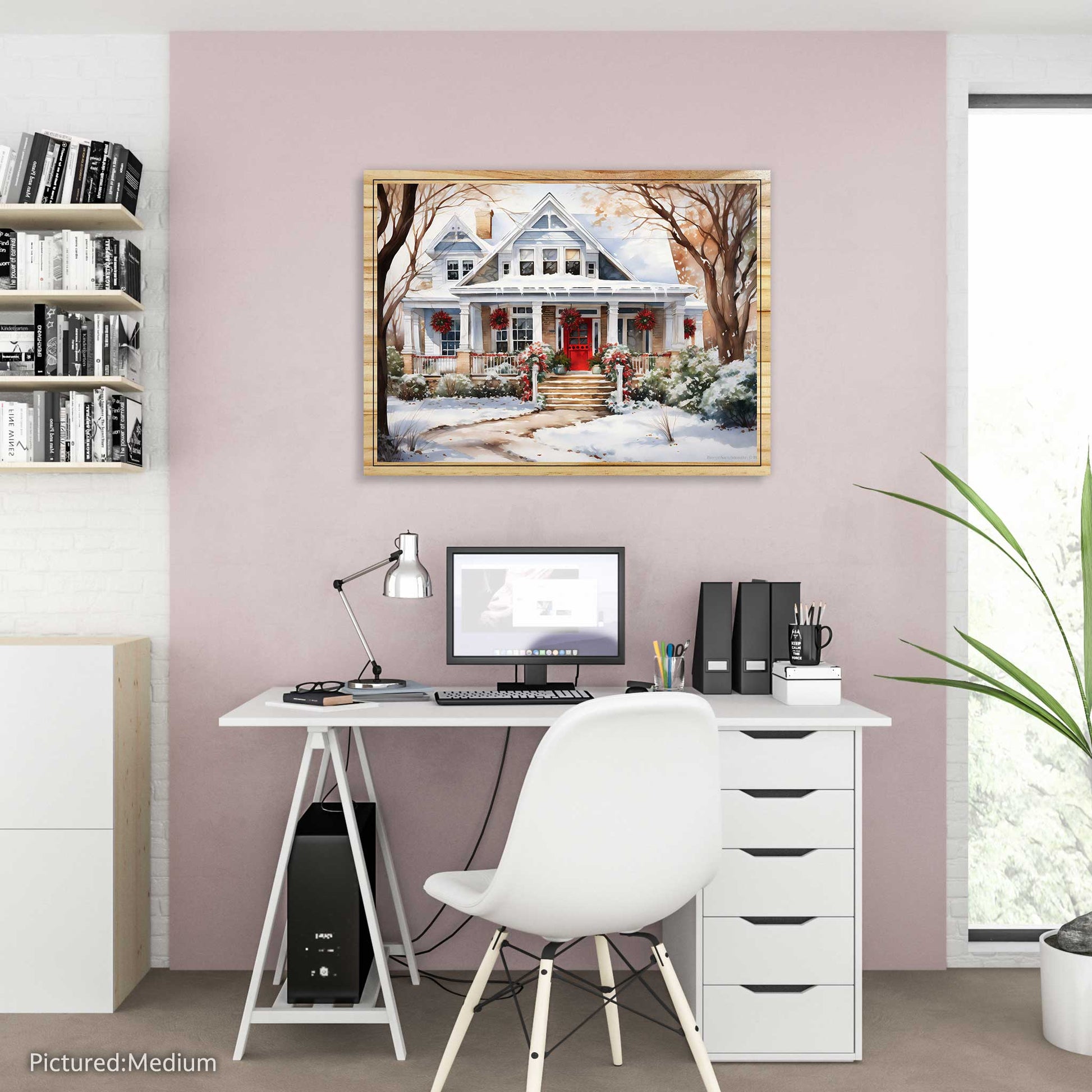 Enjoy the magic of winter with this print of a snowy home. It’s printed on sturdy pine wood and has a wooden border. It has two alternatives: flat or elevated. The elevated alternative creates more depth and texture to the print, making it resemble a real painting. This print is an exquisite product that will delight you with its elegance and style.