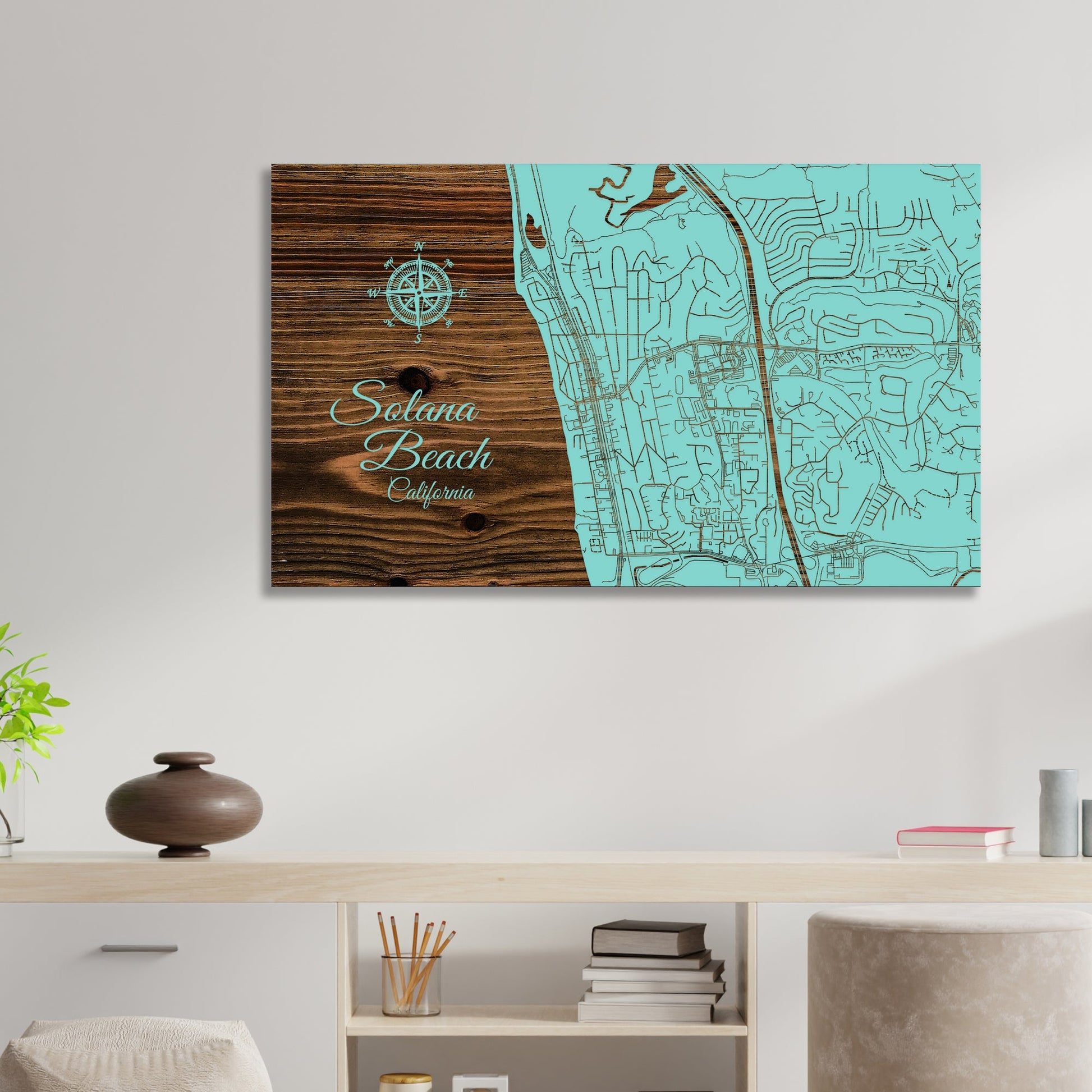 This is a street map of Solana Beach, CA designed by Fire & Pine artists.