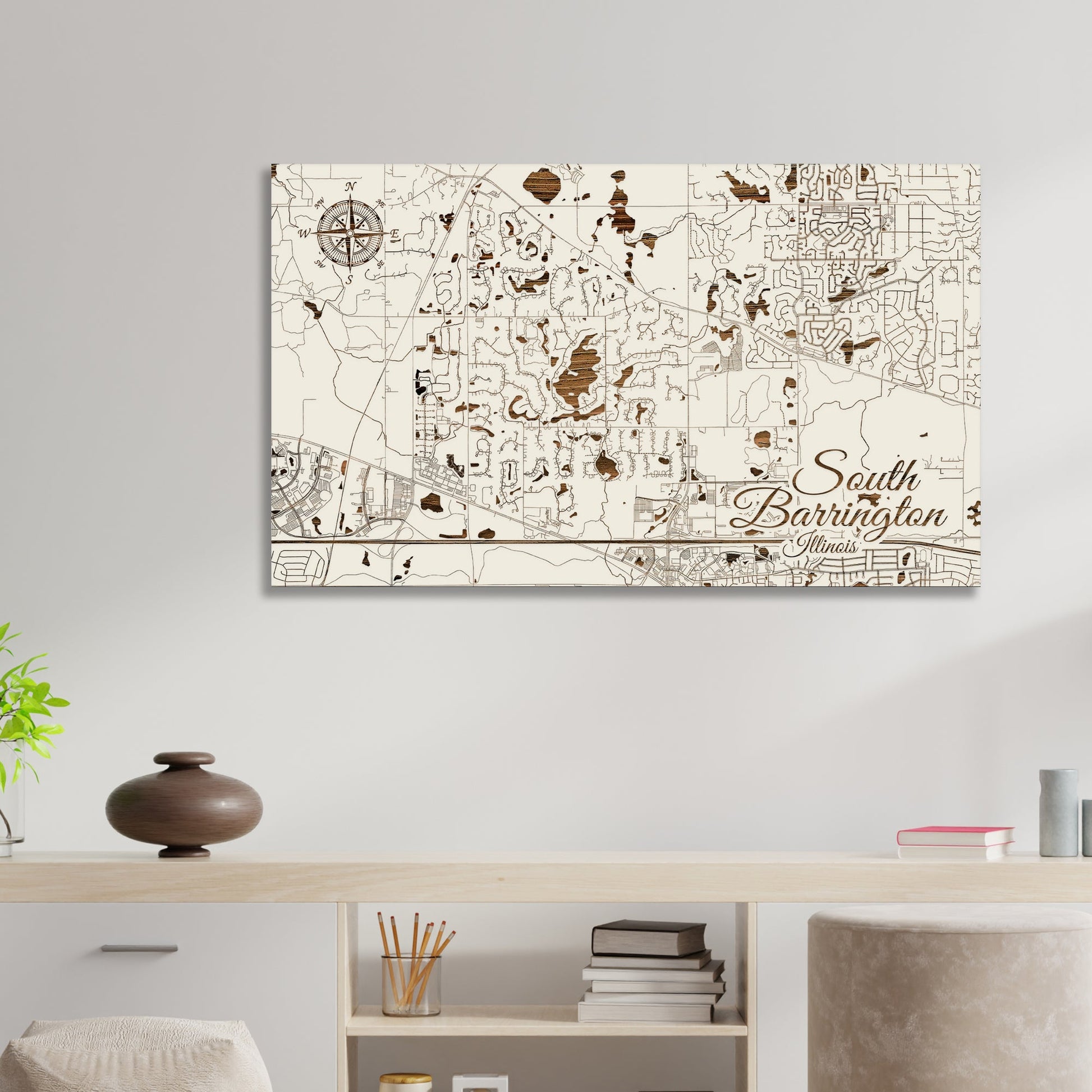 This is a street map of South Barrington, IL designed by Fire & Pine artists.