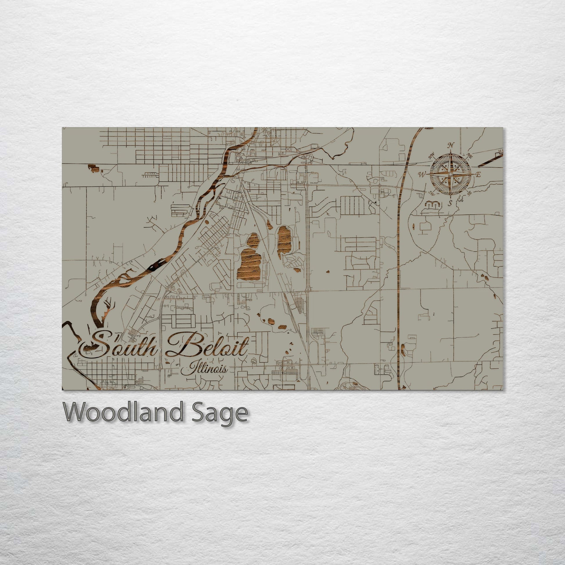 This is a street map of South Beloit, IL designed by Fire & Pine artists.