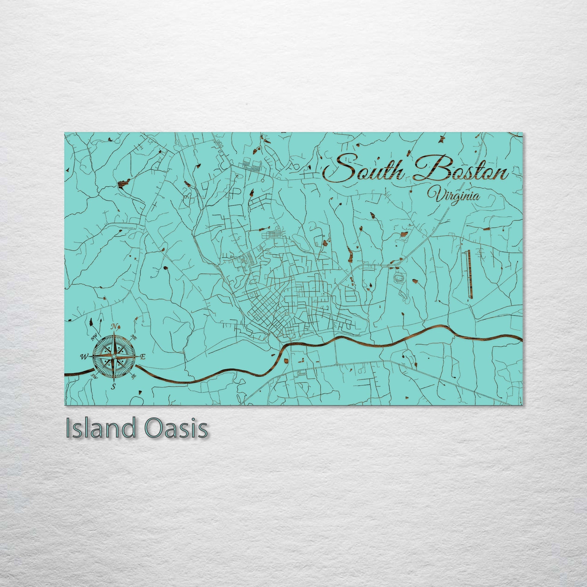 This is a street map of South Boston, VA designed by Fire & Pine artists.
