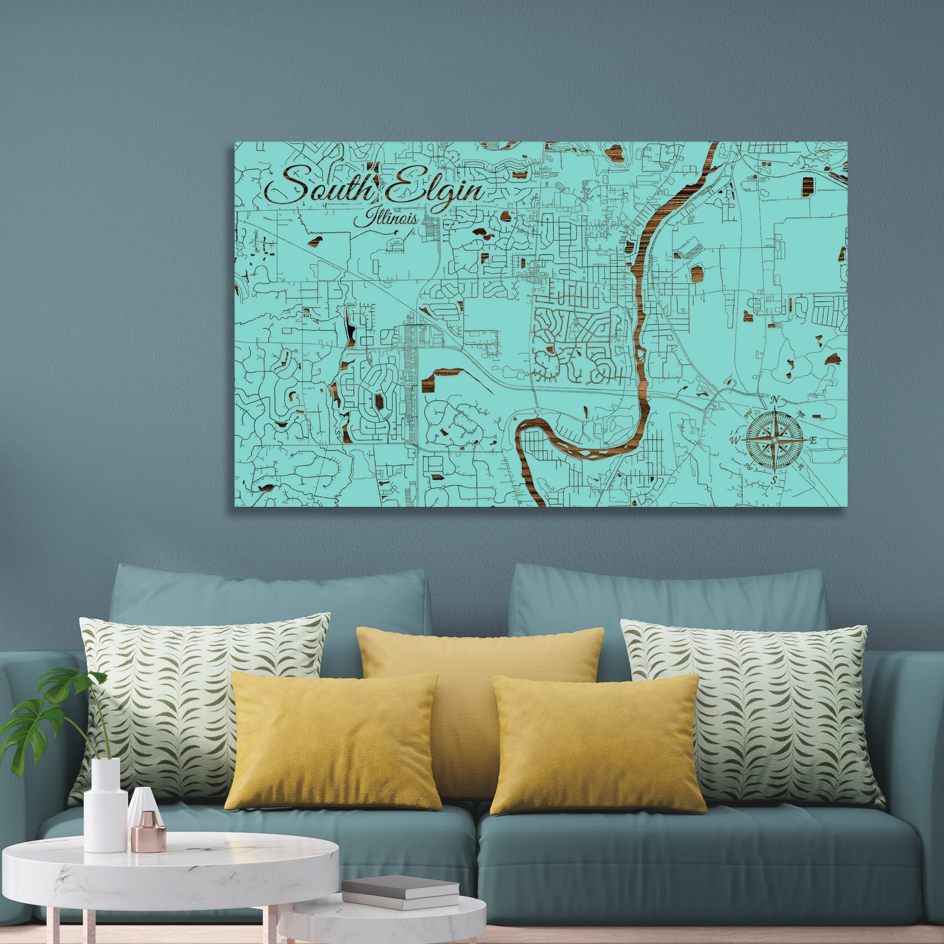 This is a street map of South Elgin, IL designed by Fire & Pine artists.