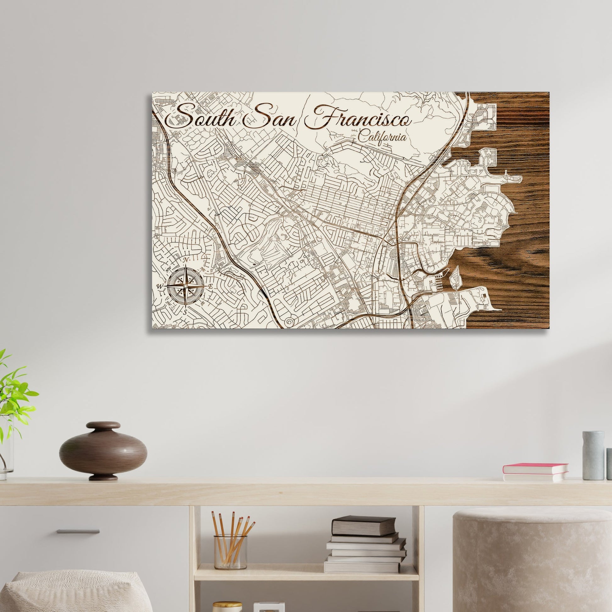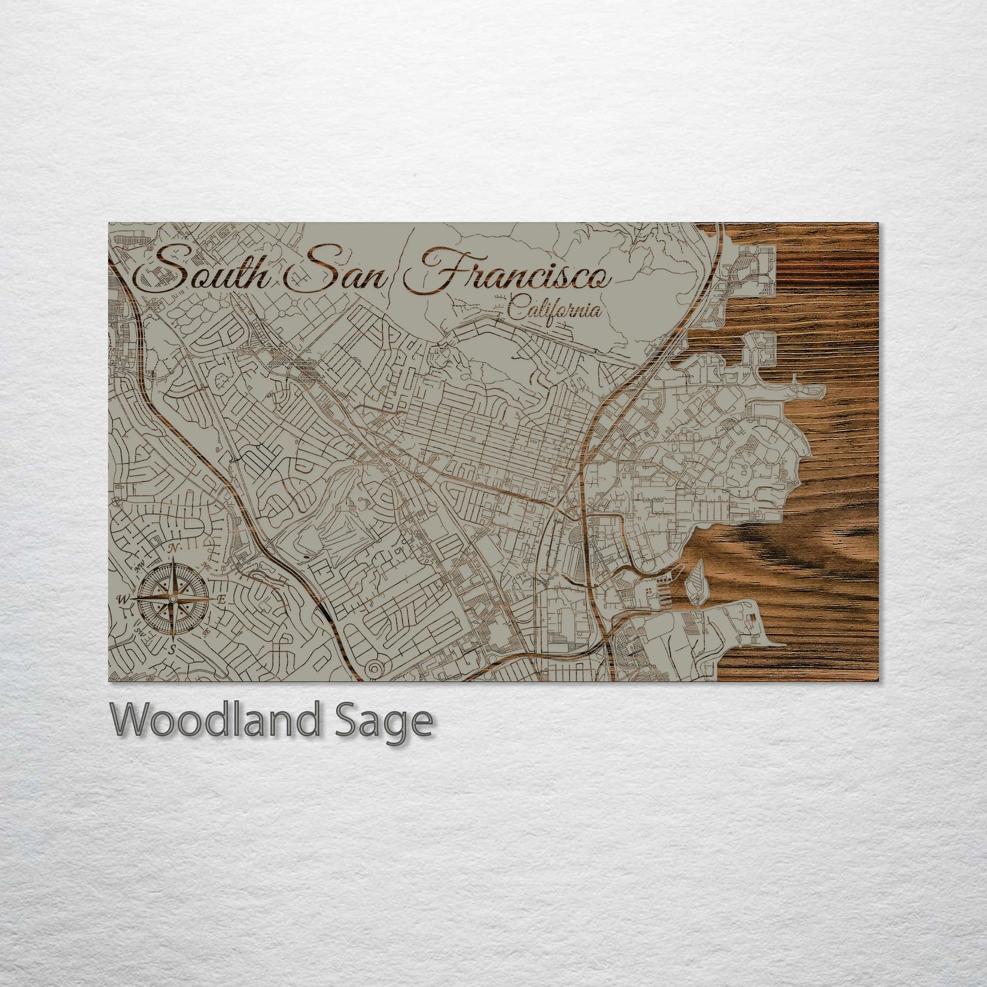 This is a street map of South San Francisco, CA designed by Fire & Pine artists.