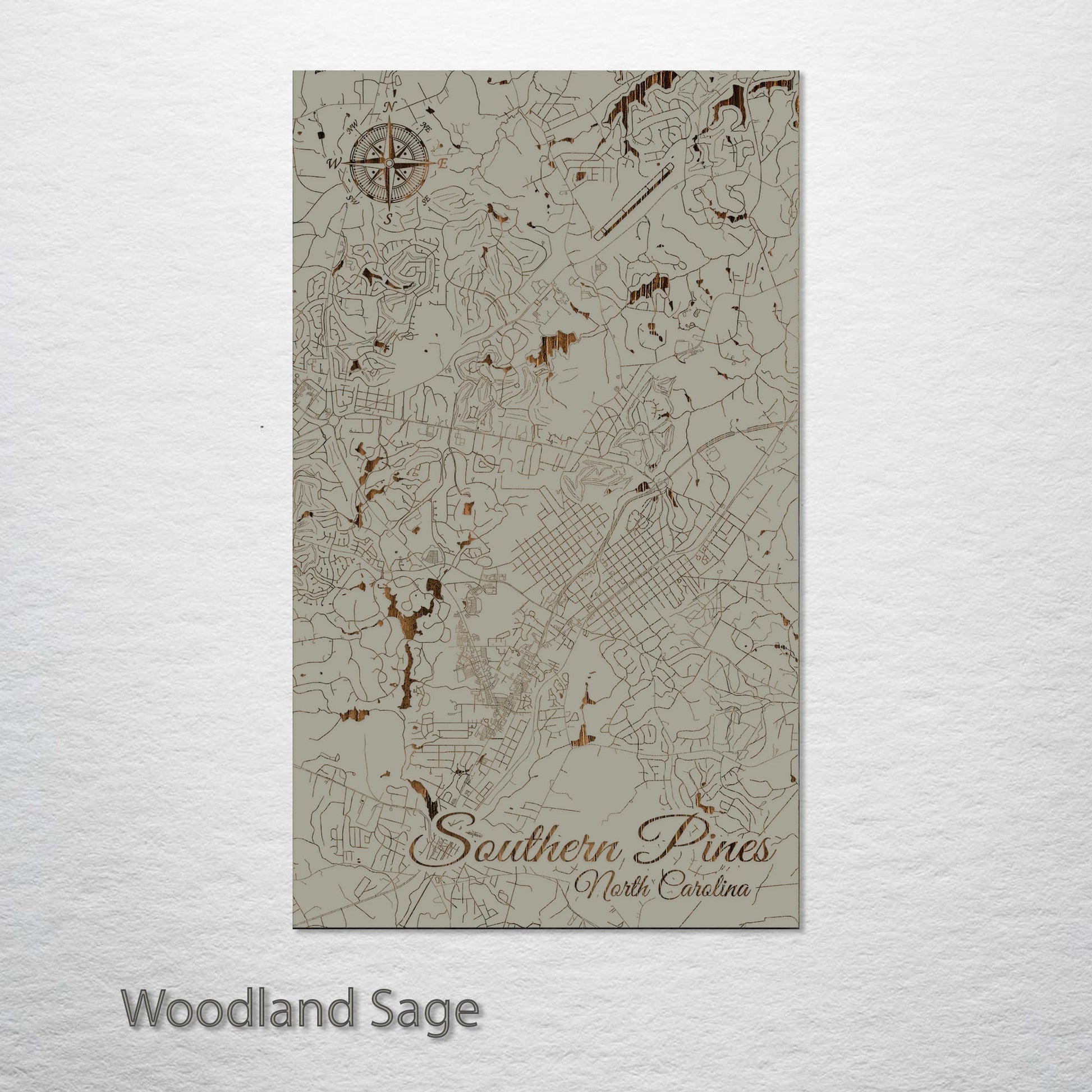 This is a street map of Southern Pines, NC designed by Fire & Pine artists.