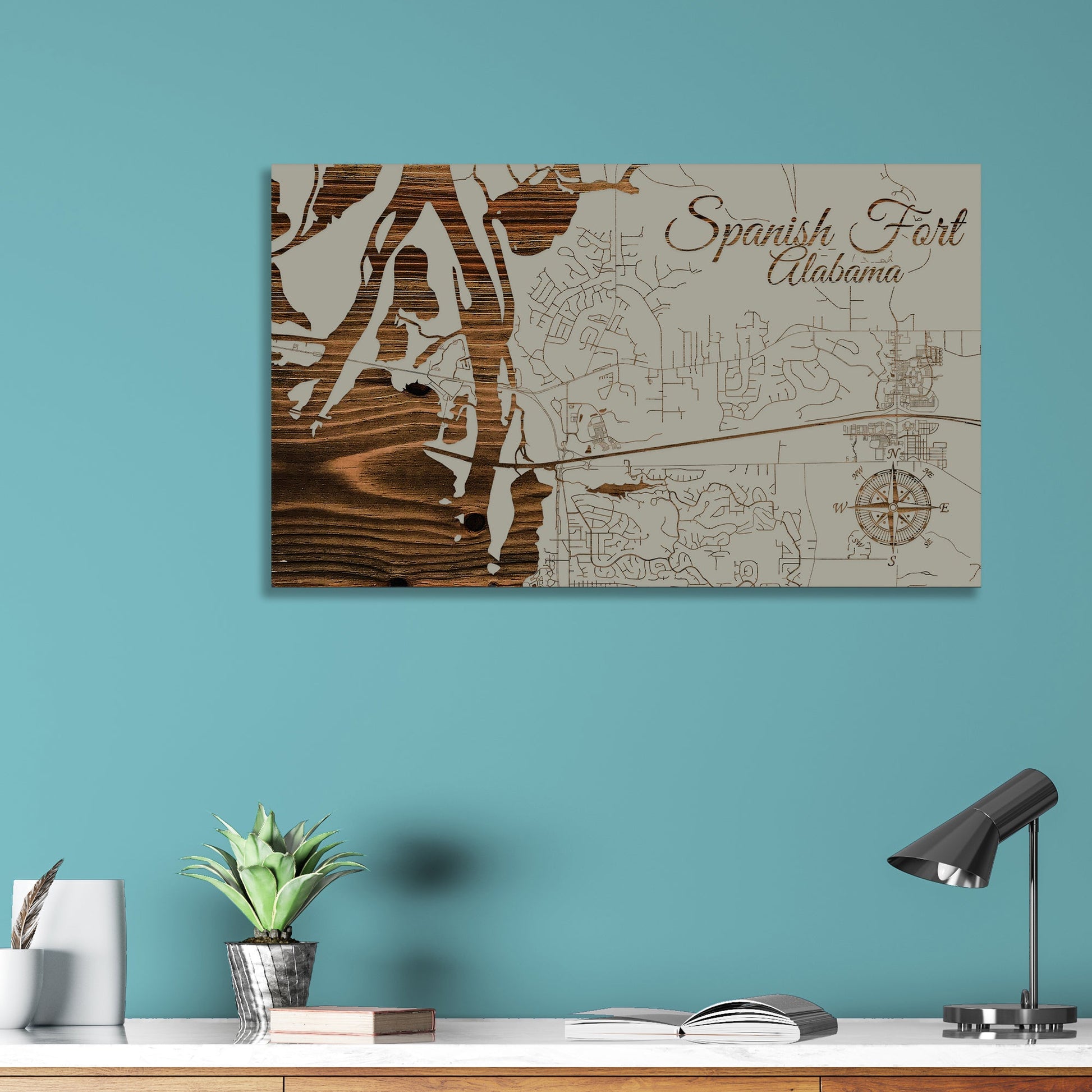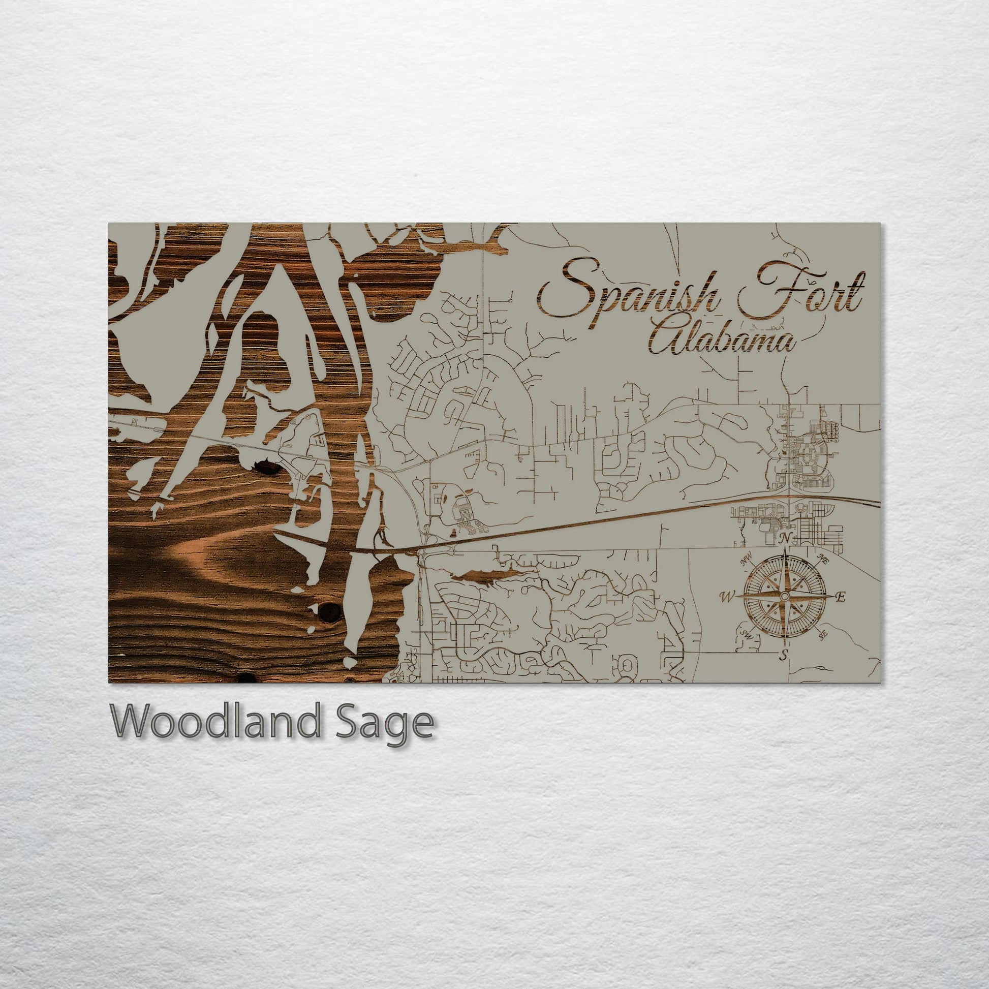 This is a street map of Spanish Fort, AL designed by Fire & Pine artists.
