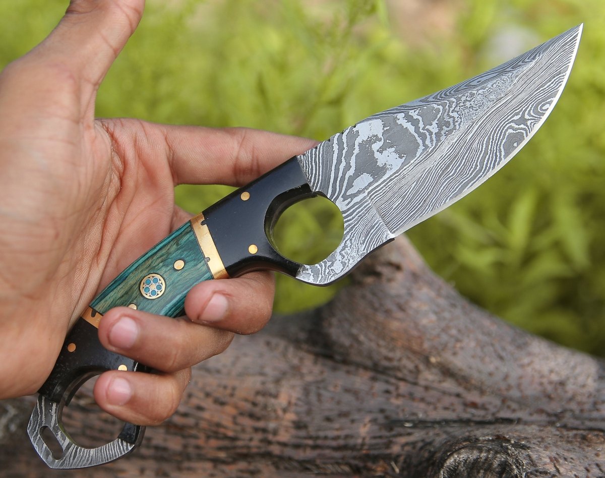 Damascus blades are hand forged through a process of layering, melting and hammering. This results in each blade having a unique design or as some would say a “fingerprint”. Each & every knife is truly one of a kind.