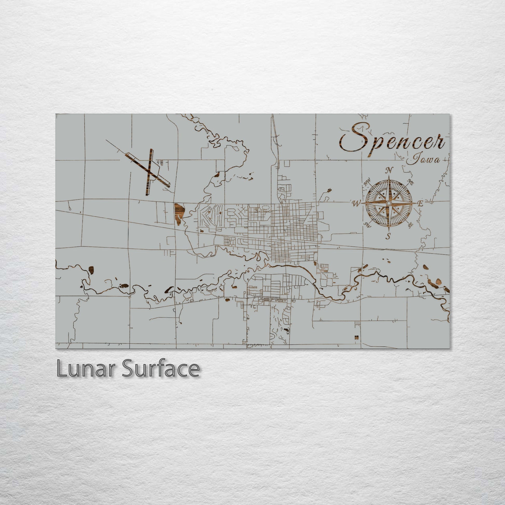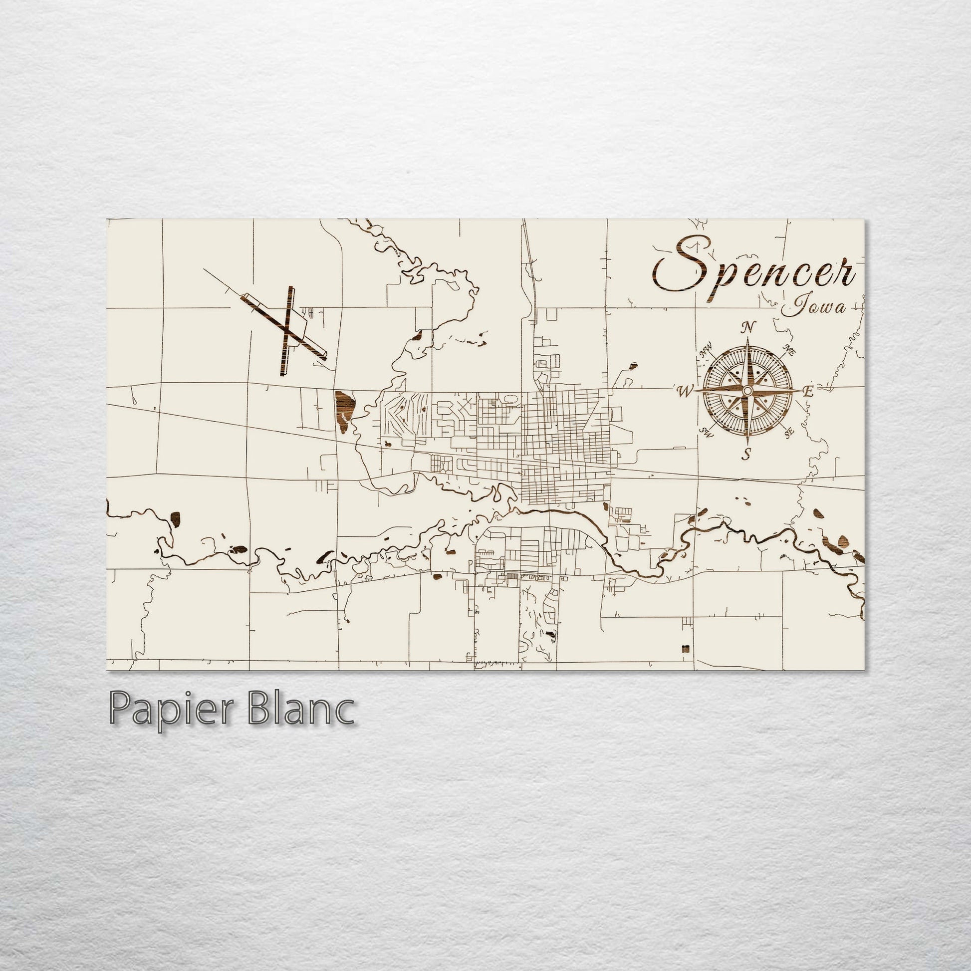 This is a street map of Spencer, IA designed by Fire & Pine artists.