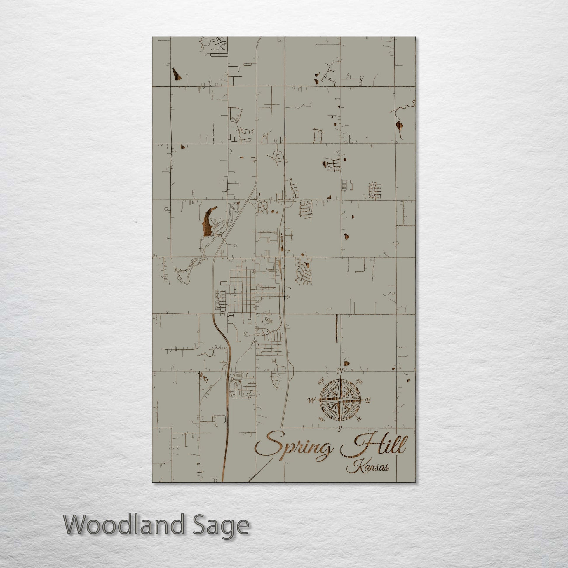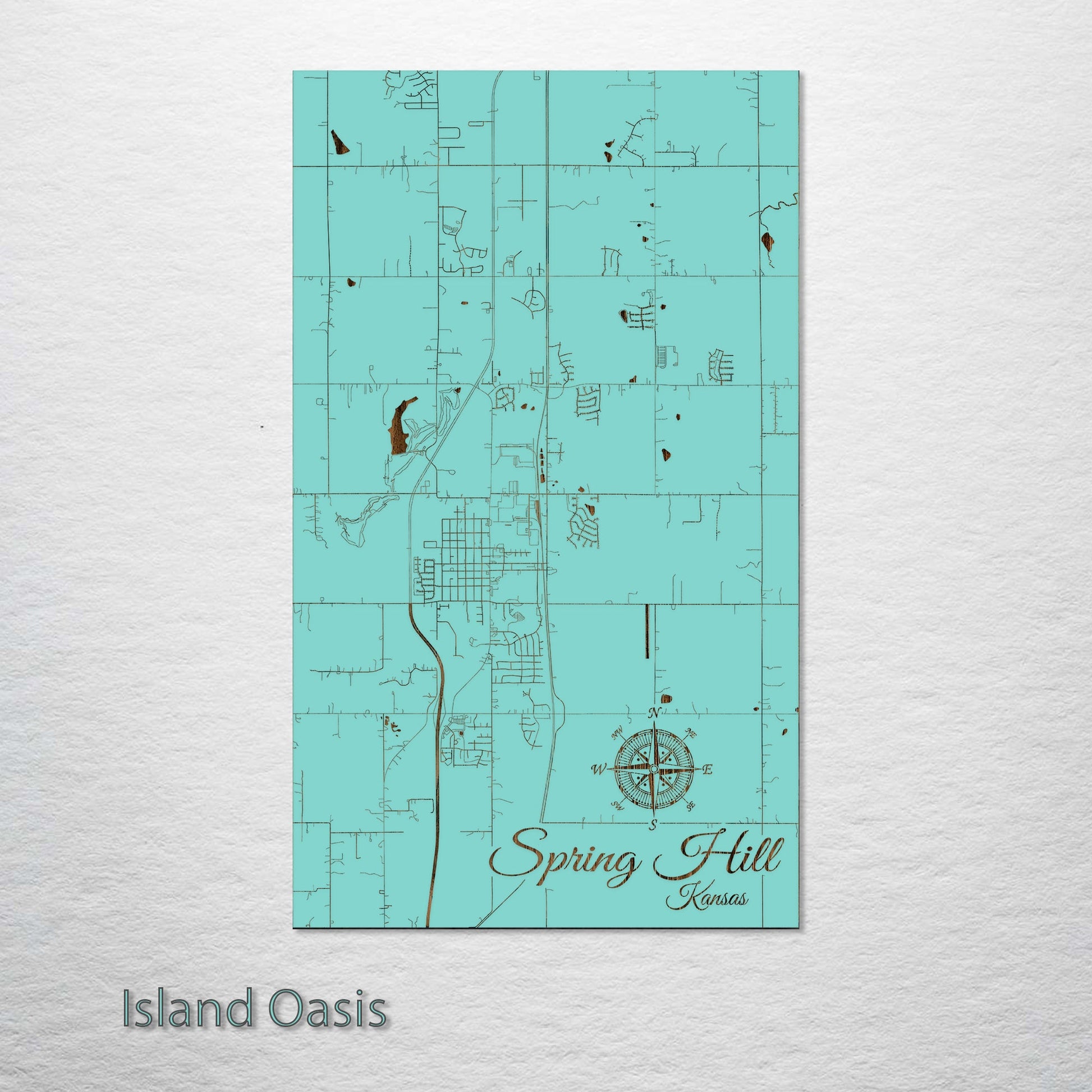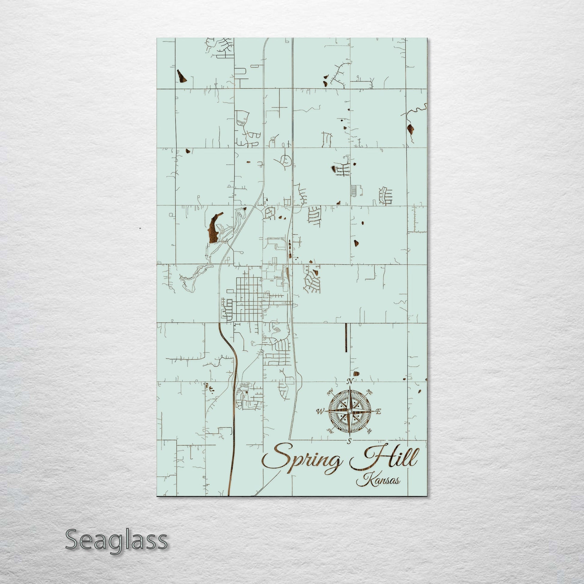 This is a street map of Spring Hill, KS designed by Fire & Pine artists.