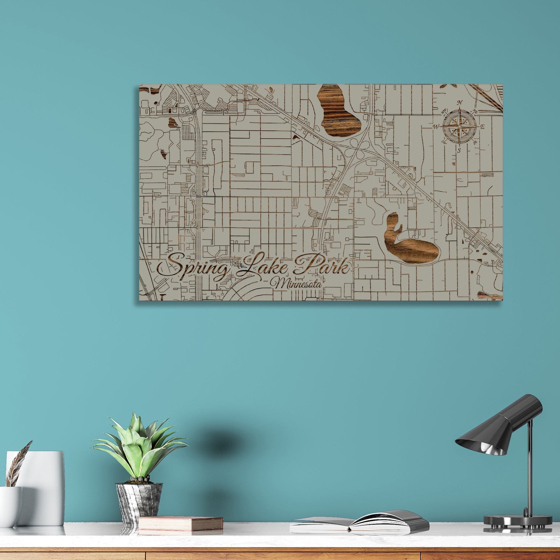 This is a street map of Spring Lake Park, MN designed by Fire & Pine artists.
