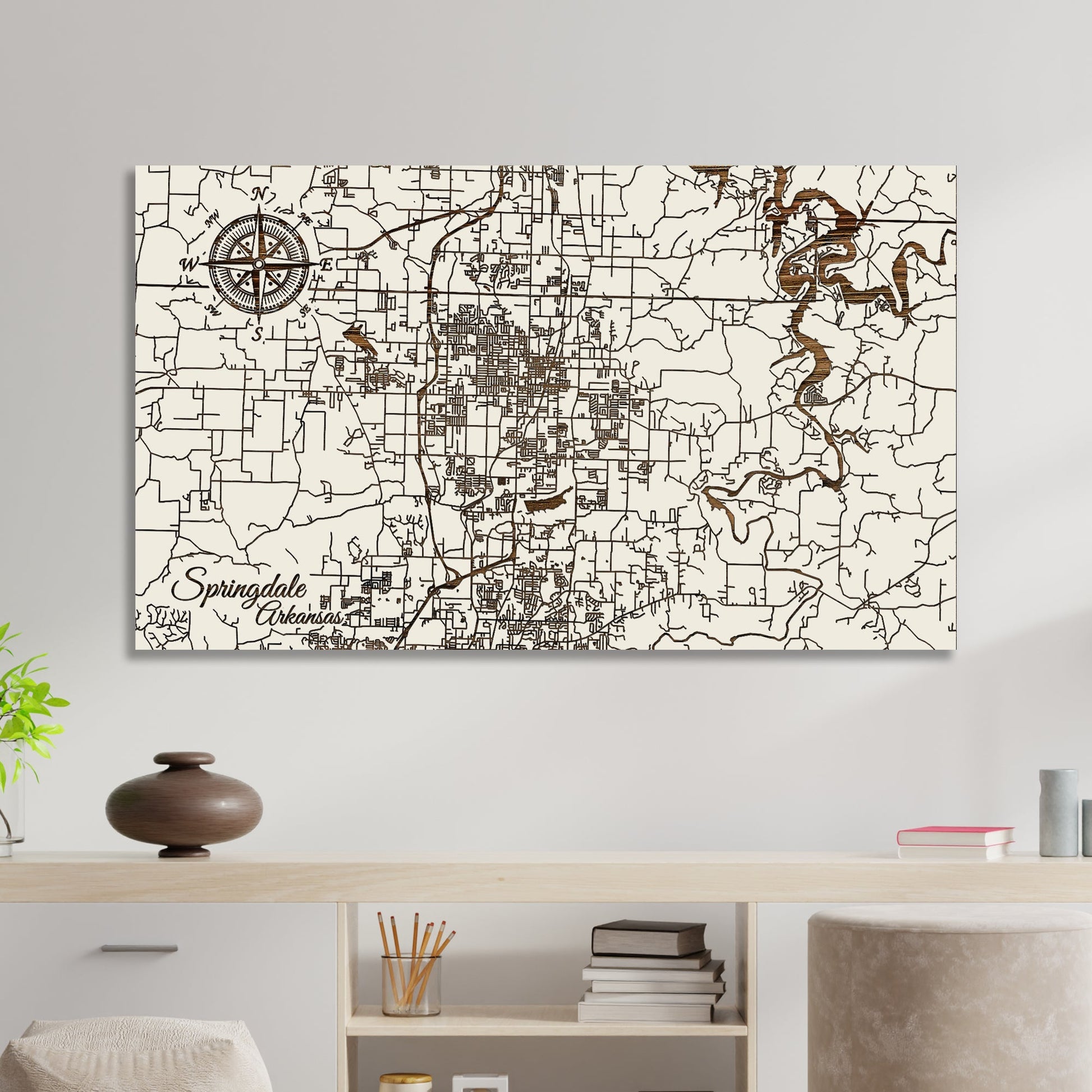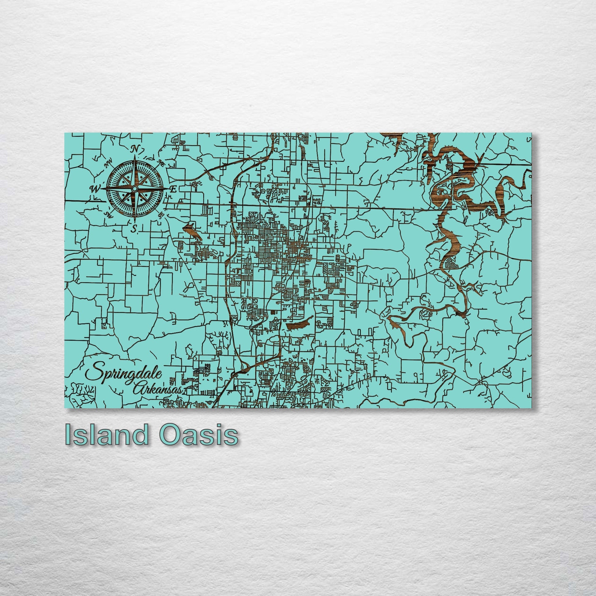 This is a street map of Springdale, Arkansas designed by Fire & Pine artists.