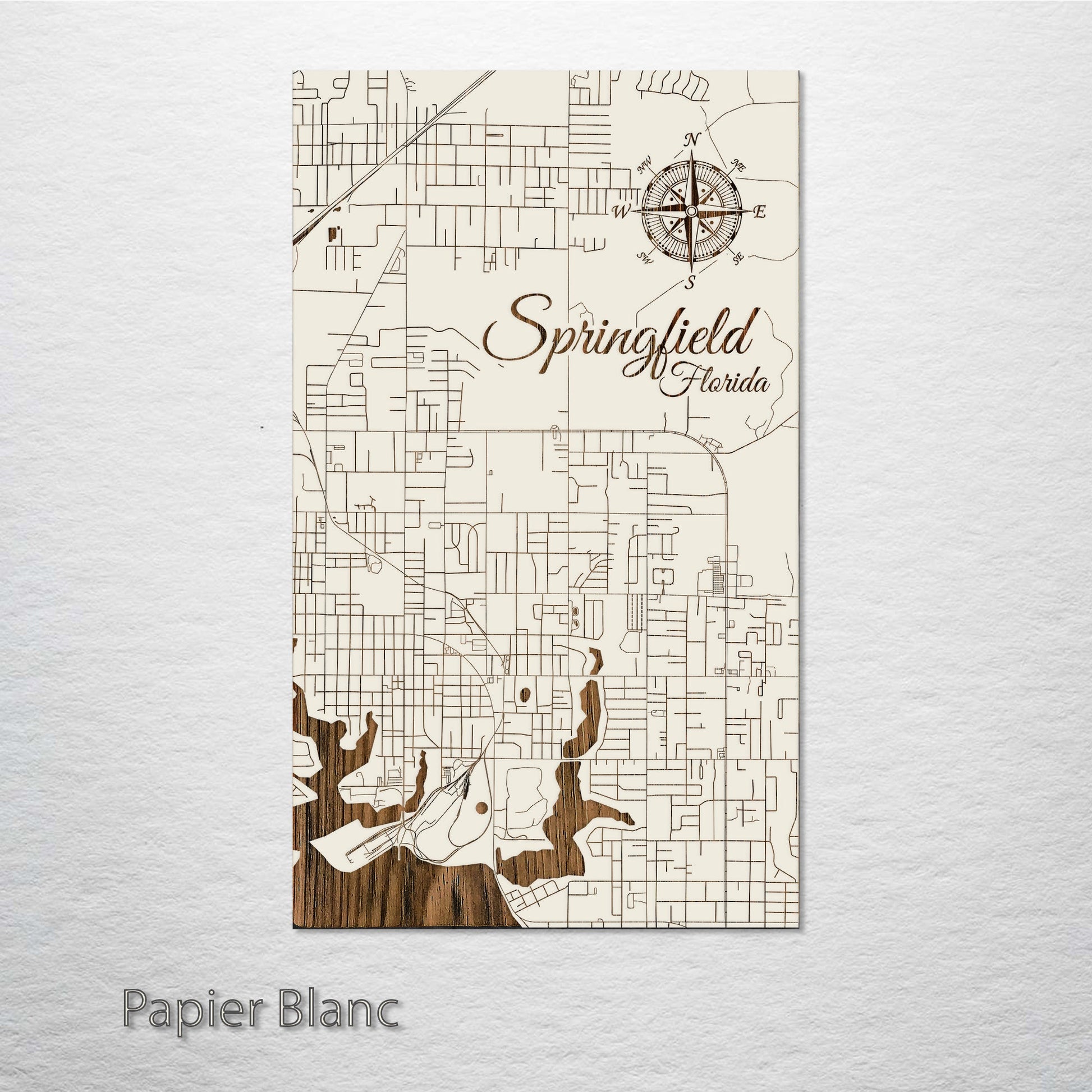 Exquisite Choice for Map Enthusiasts: This wood-engraved Springfield, Florida street map is a stunning piece for anyone who appreciates the art of cartography. Meticulously crafted from top-grade pine wood, it reveals the intricate street layout of Springfield with impressive detail, making it a standout addition to any collection.