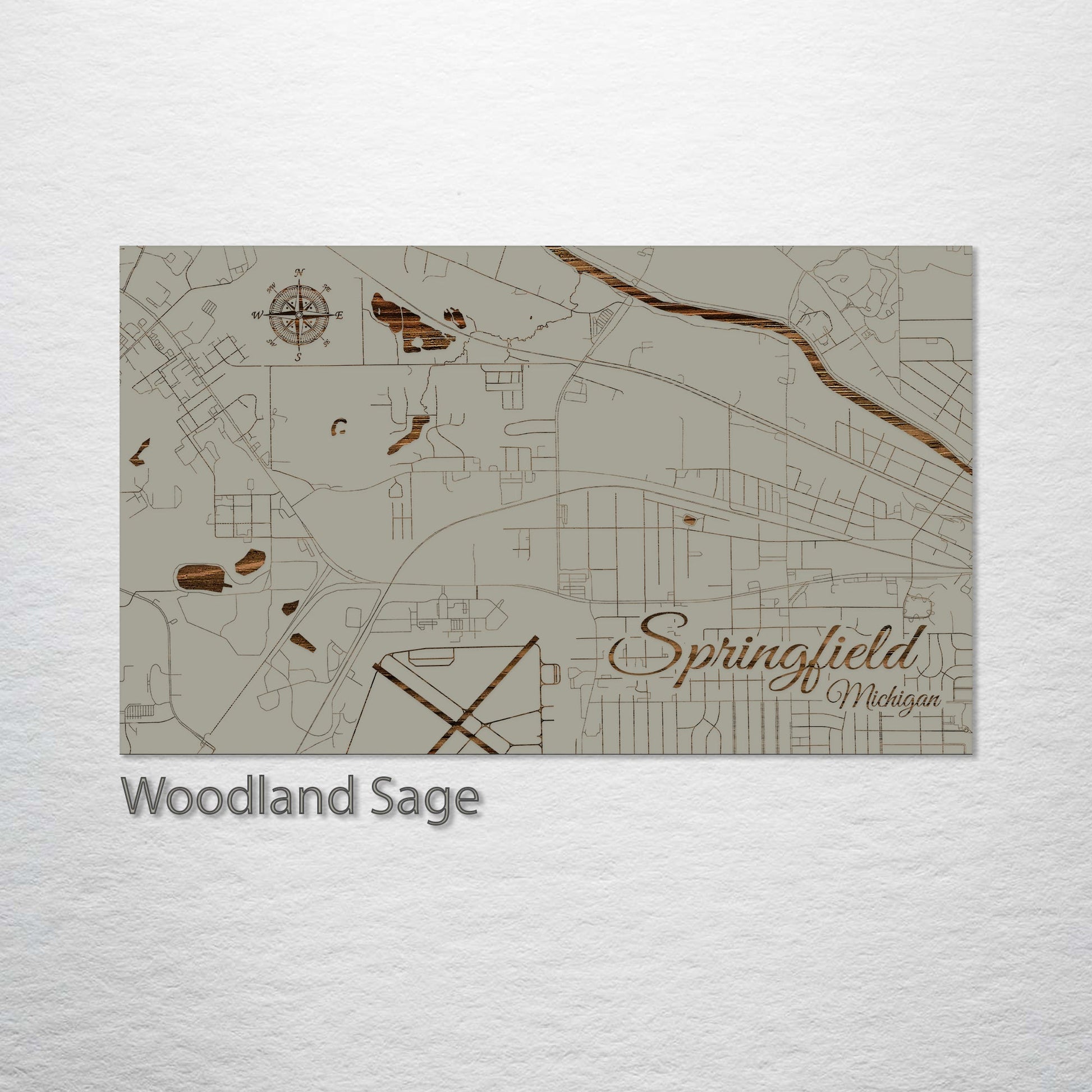 This is a street map of Springfield, MI designed by Fire & Pine artists.