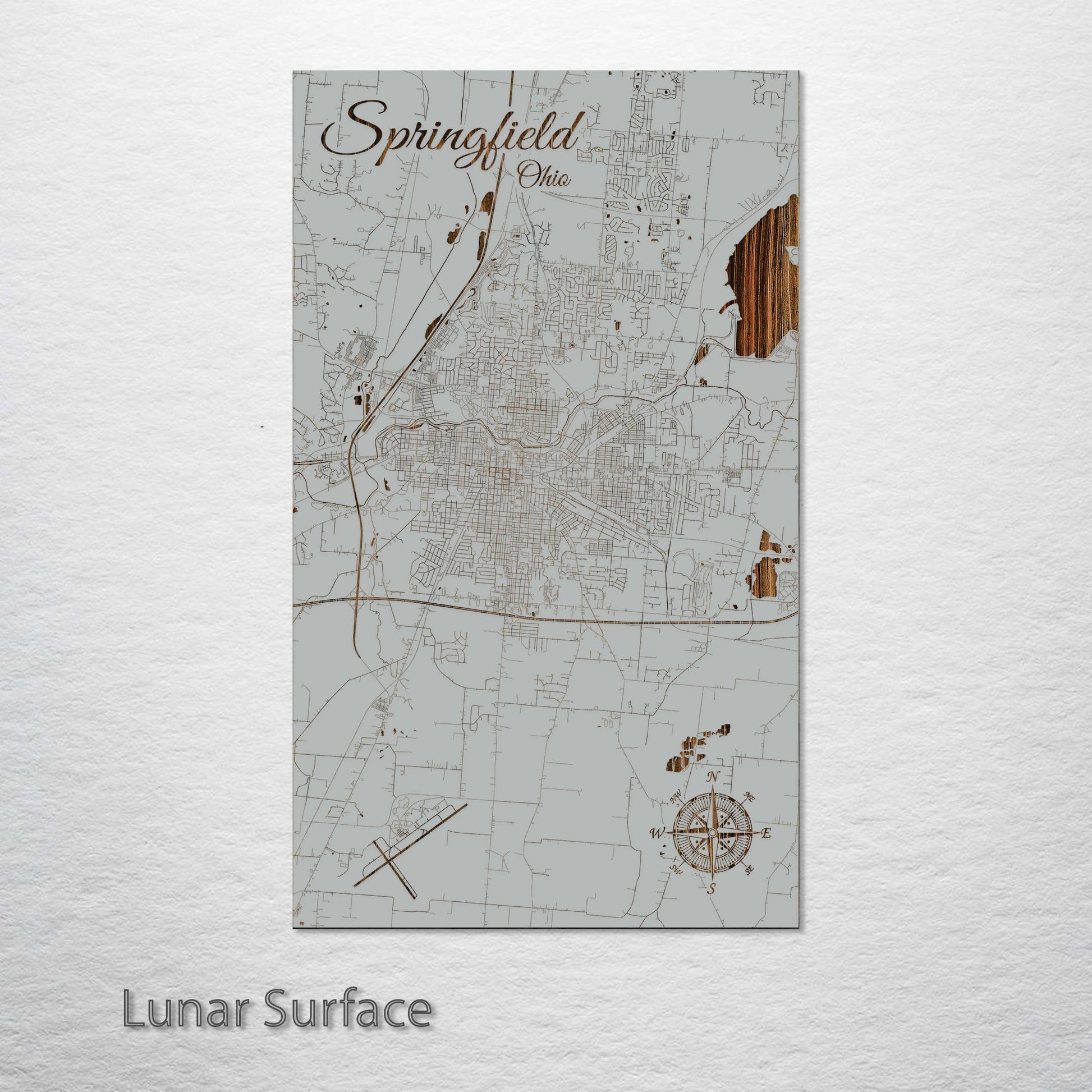 This is a street map of Springfield, OH designed by Fire & Pine artists.