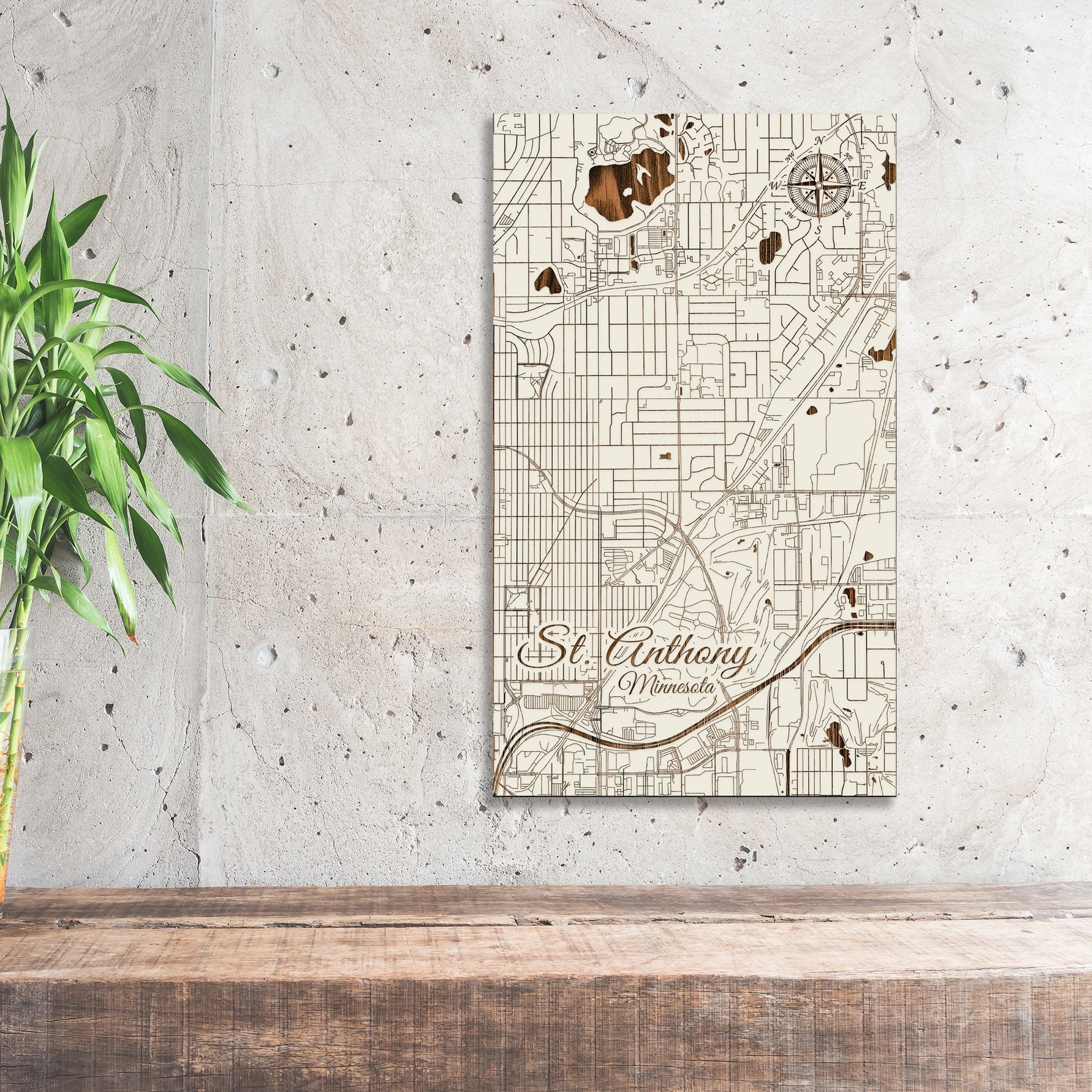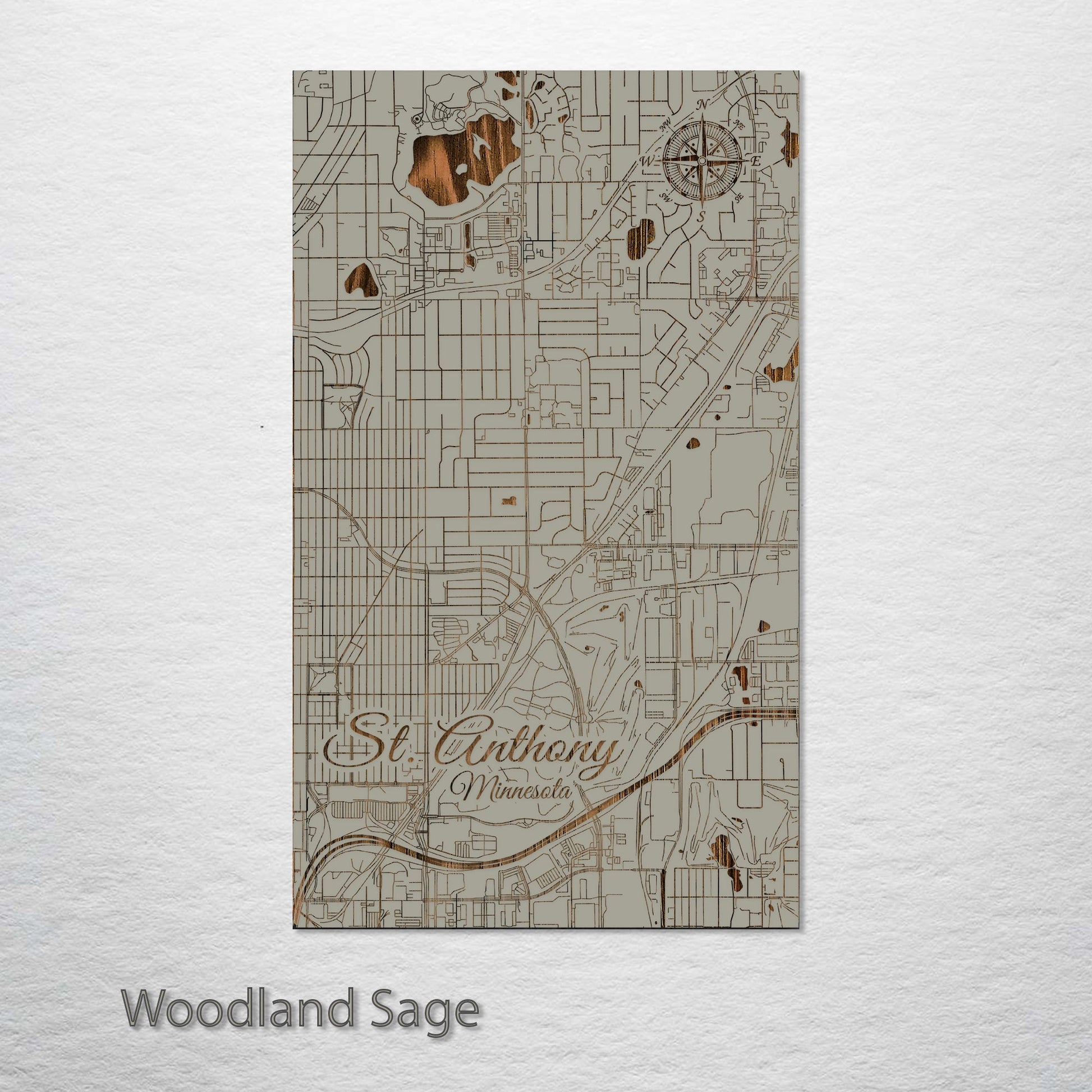 This is a street map of St. Anthony, MN designed by Fire & Pine artists.