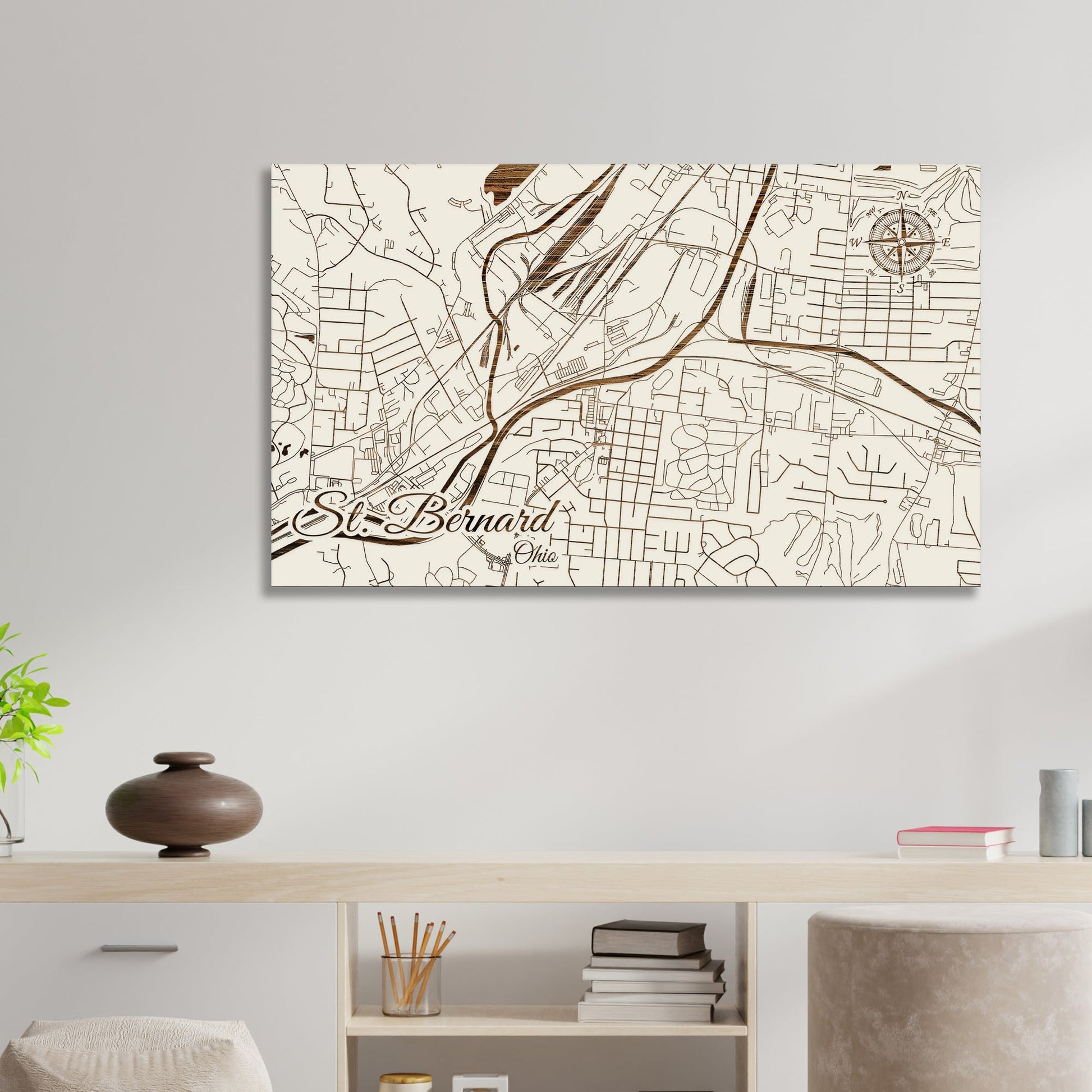 This is a street map of St. Bernard, OH designed by Fire & Pine artists.