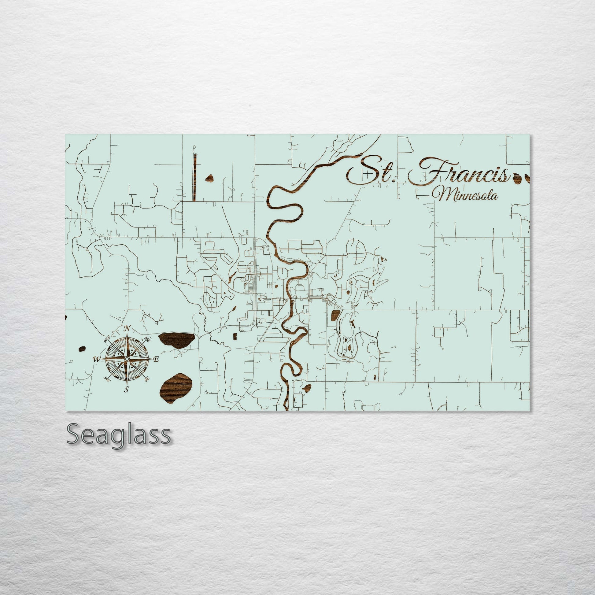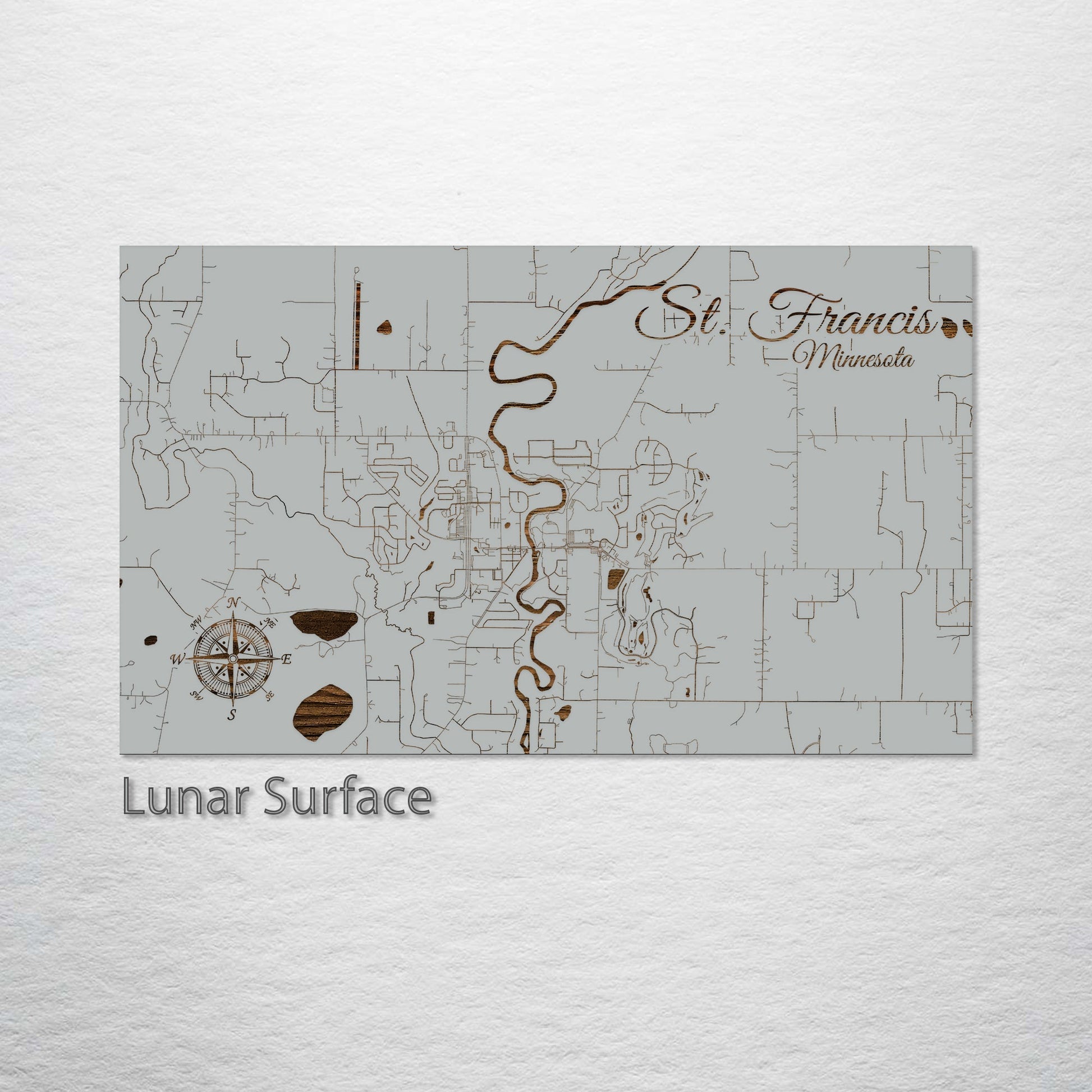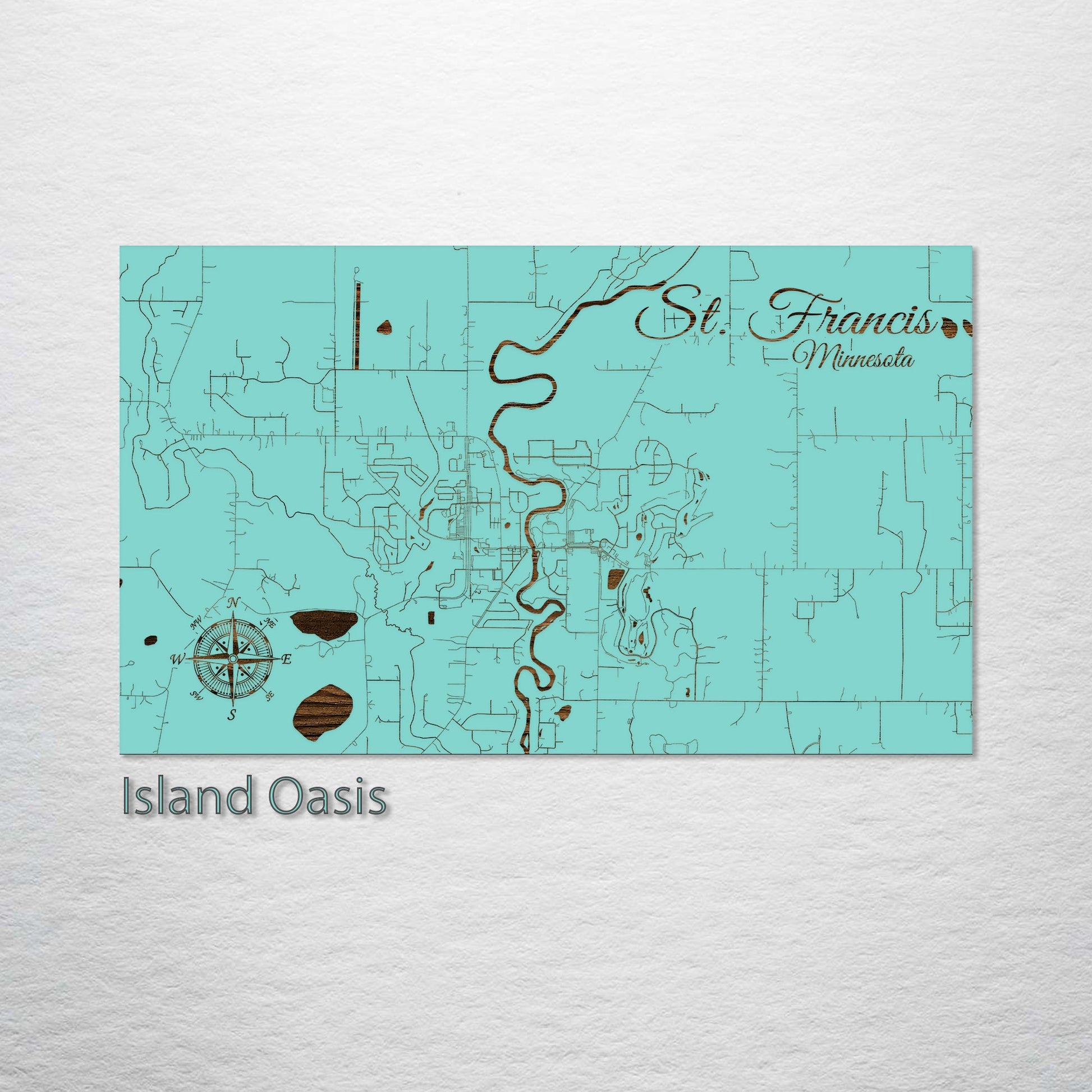 This is a street map of St. Francis, MN designed by Fire & Pine artists.