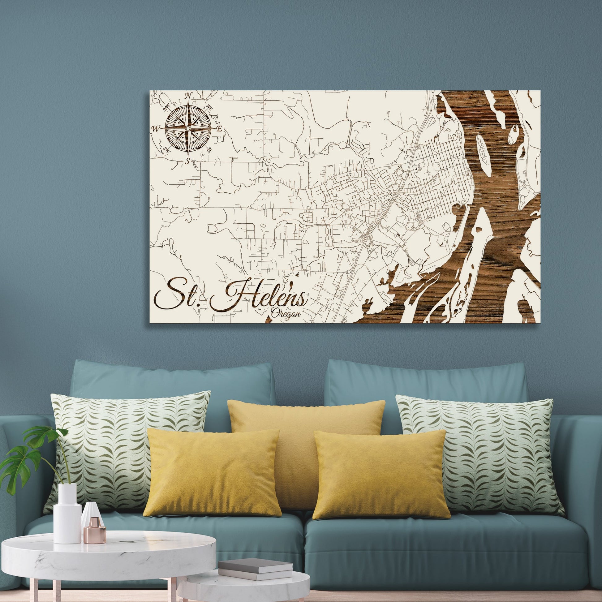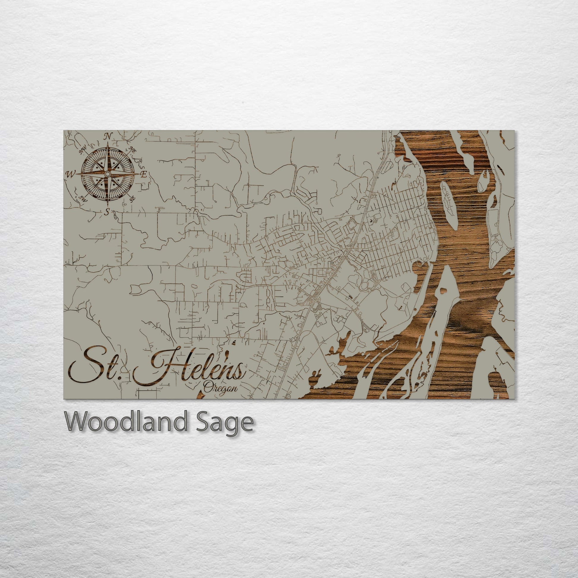 This is a street map of St. Helens, OR designed by Fire & Pine artists.