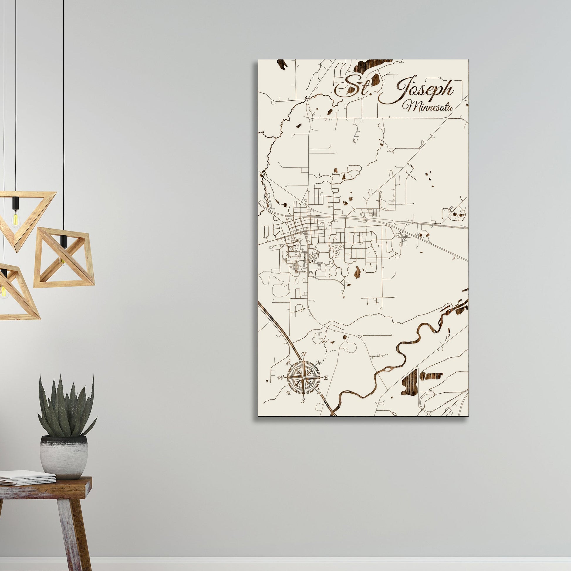 This is a street map of St. Joseph, MN designed by Fire & Pine artists.