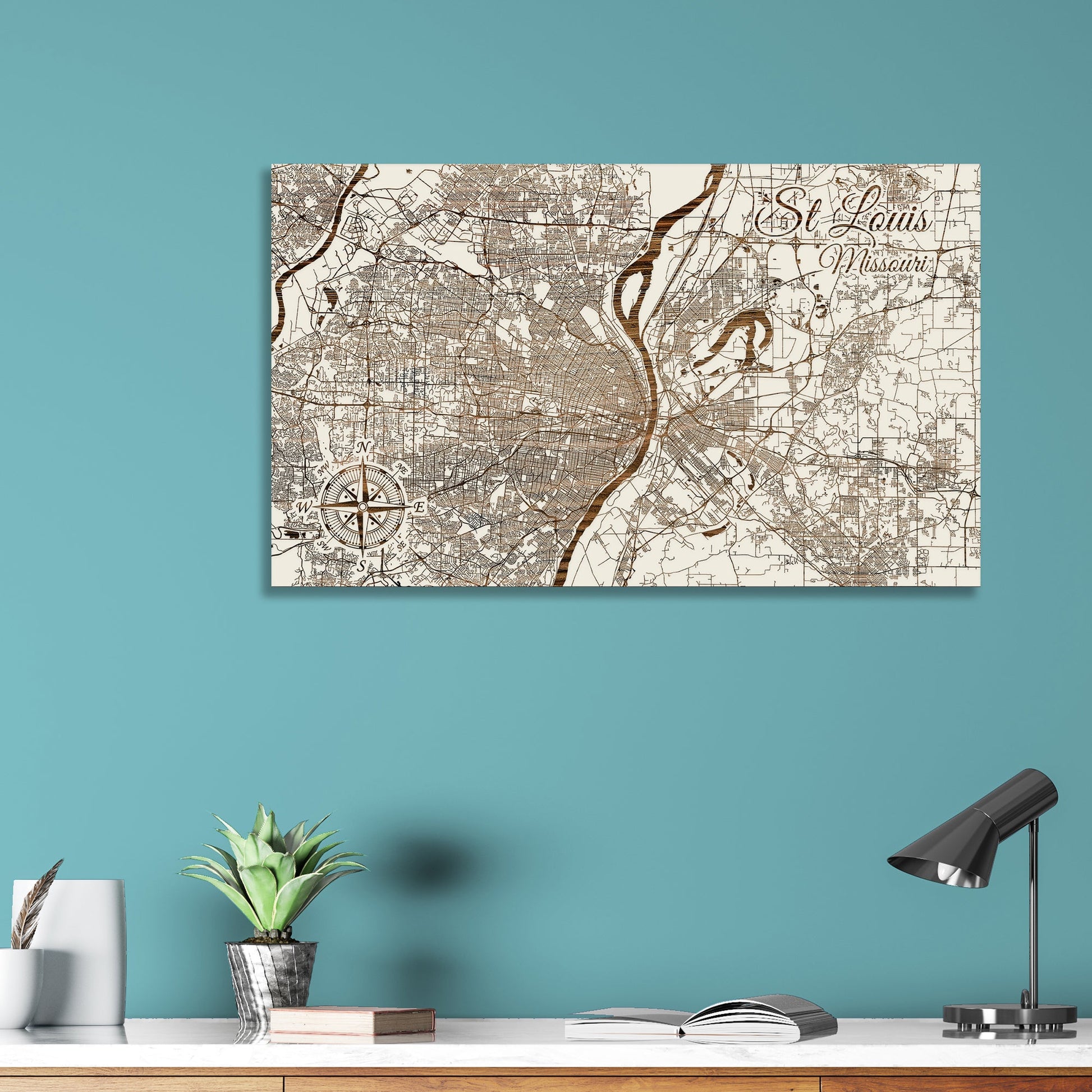 Enhances Any Space: The St. Louis street map is designed to complement a wide range of interiors, from the warmth of a living room to the formality of an office. It is not just a piece of art but a conversation starter, showcasing the distinctive roads and byways of St. Louis.
