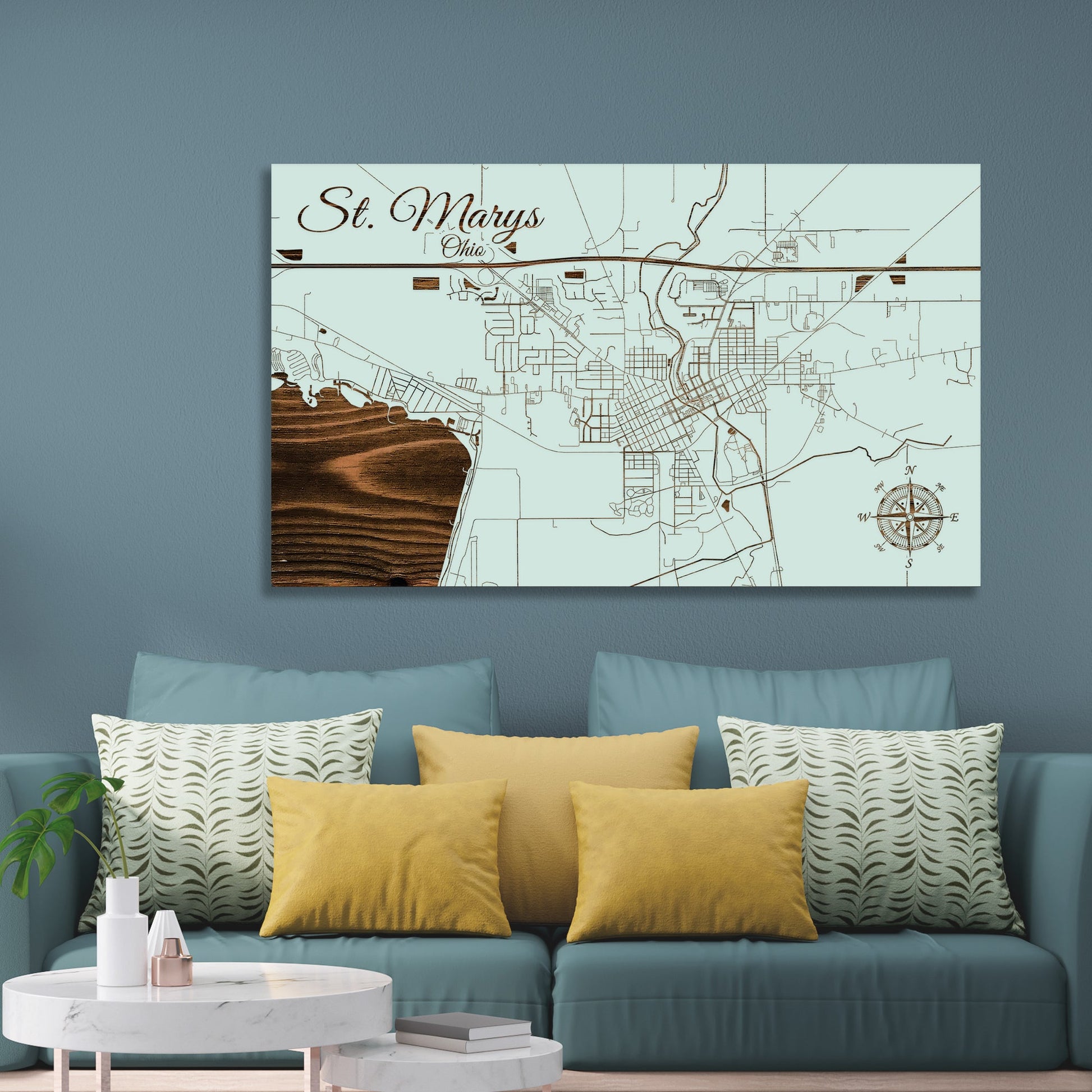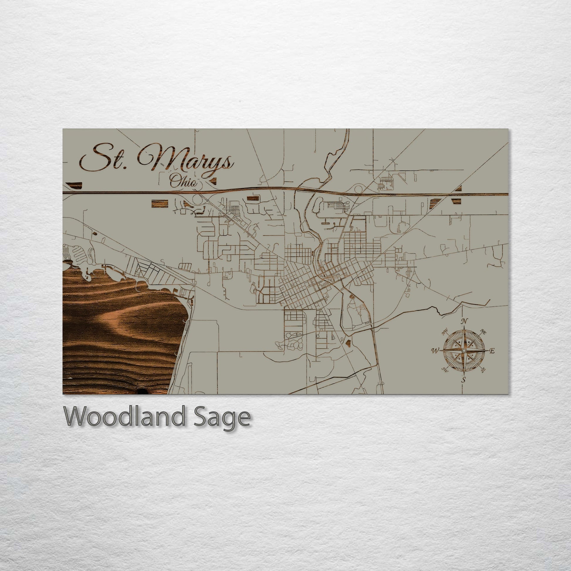 This is a street map of St. Marys, OH designed by Fire & Pine artists.