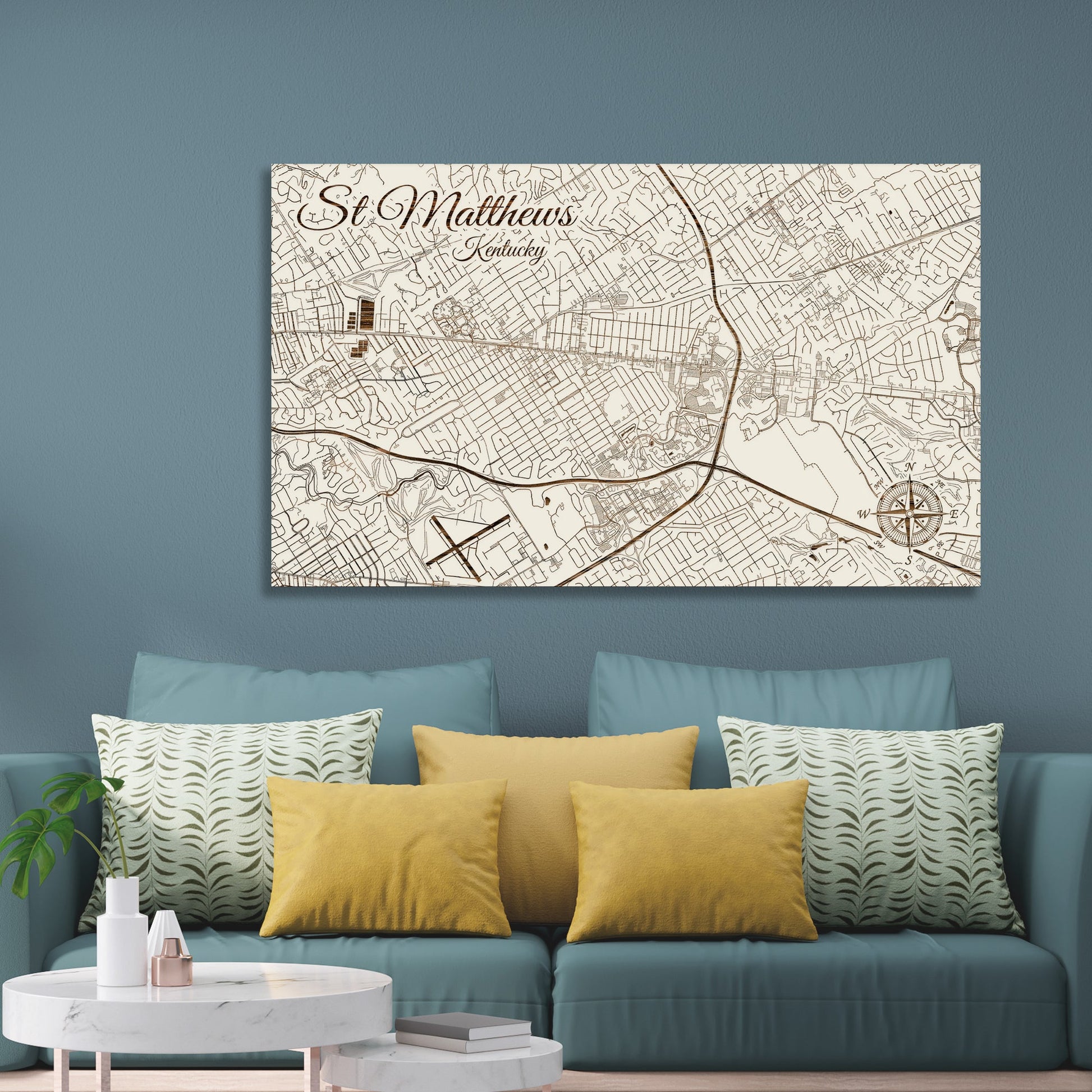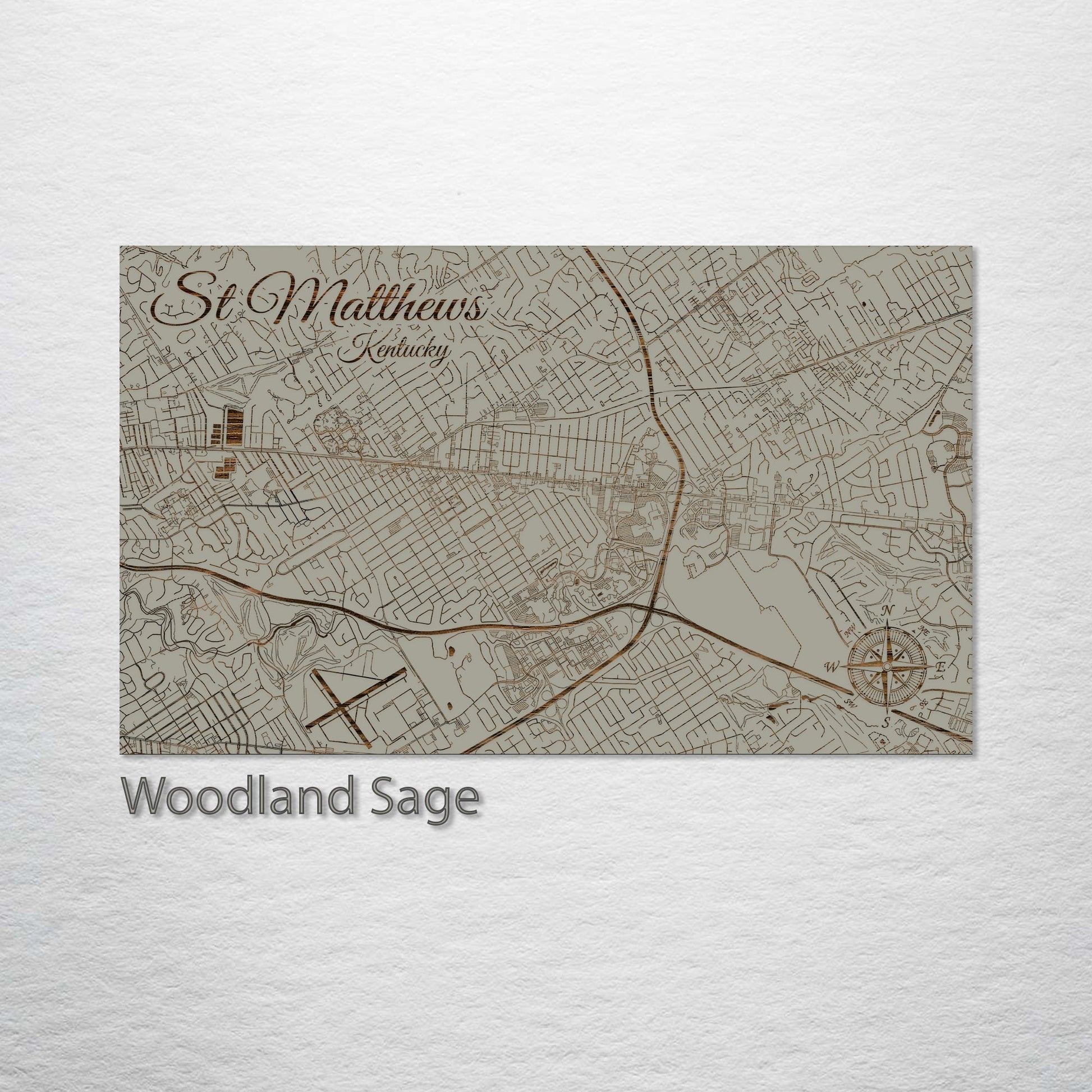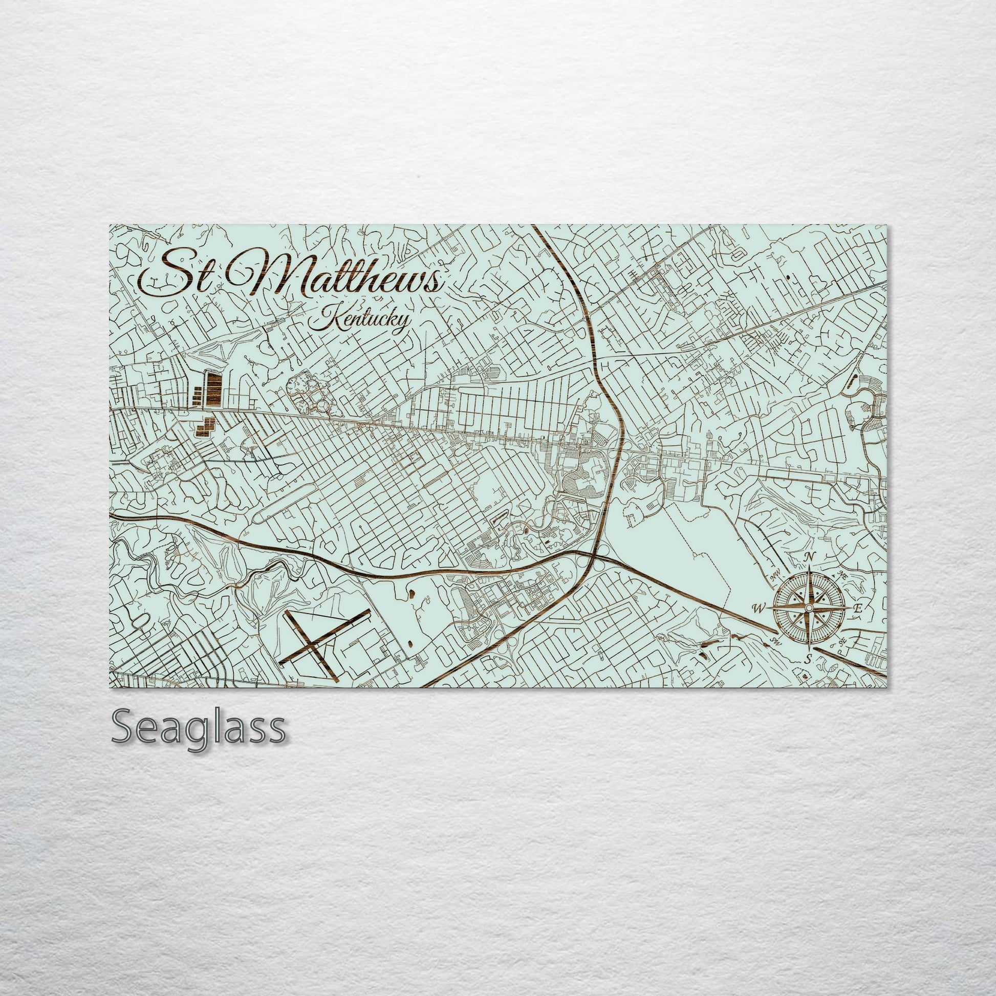 This is a street map of St. Matthews, KY designed by Fire & Pine artists.