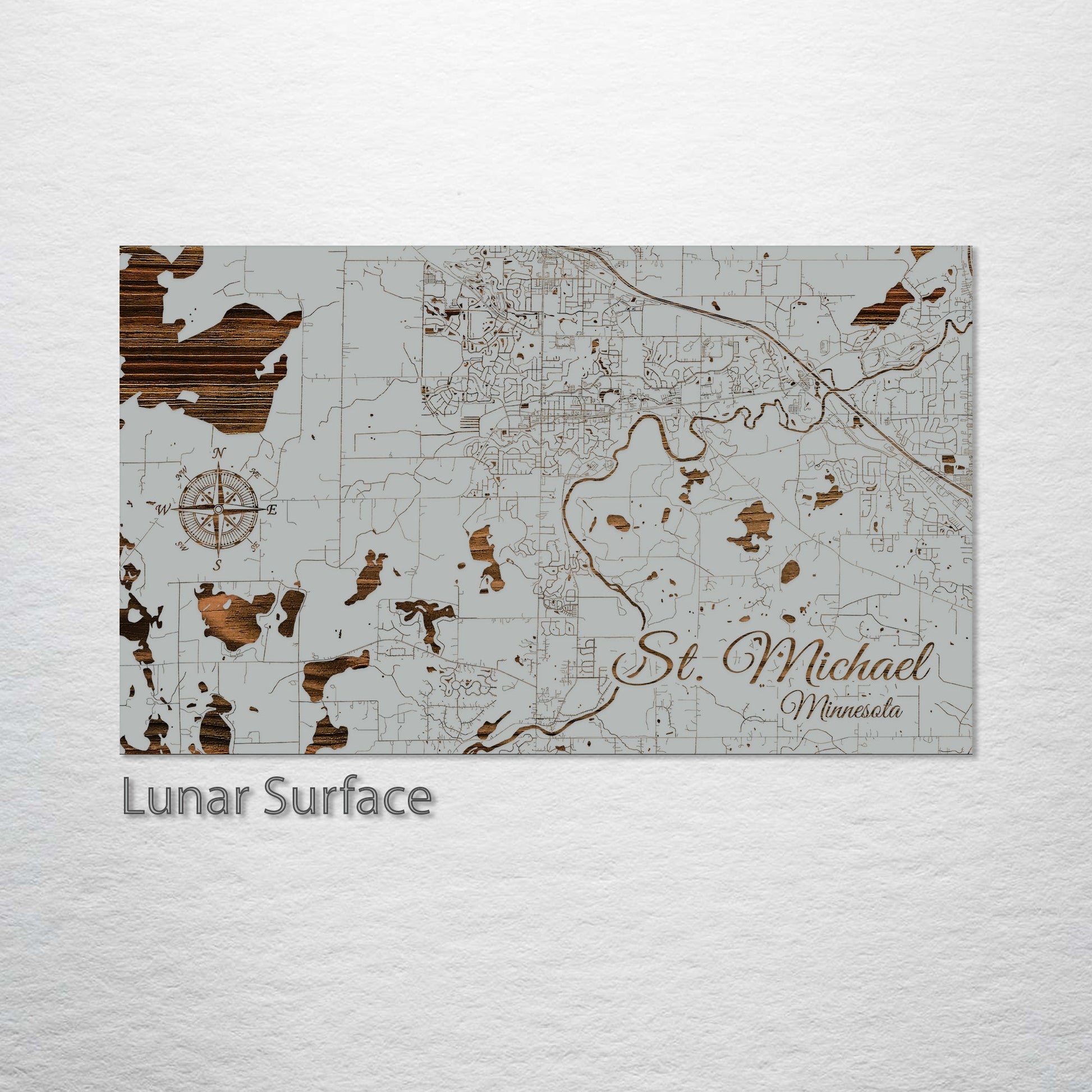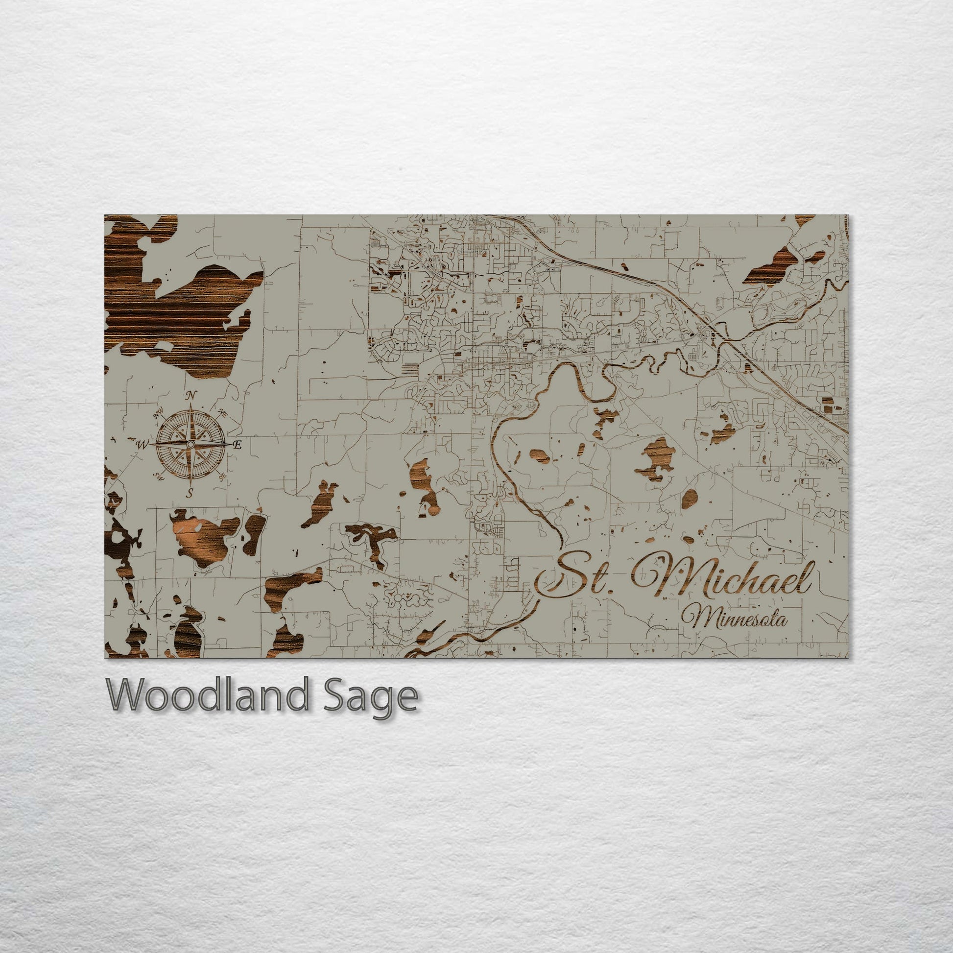 This is a street map of St. Michael, MN designed by Fire & Pine artists.
