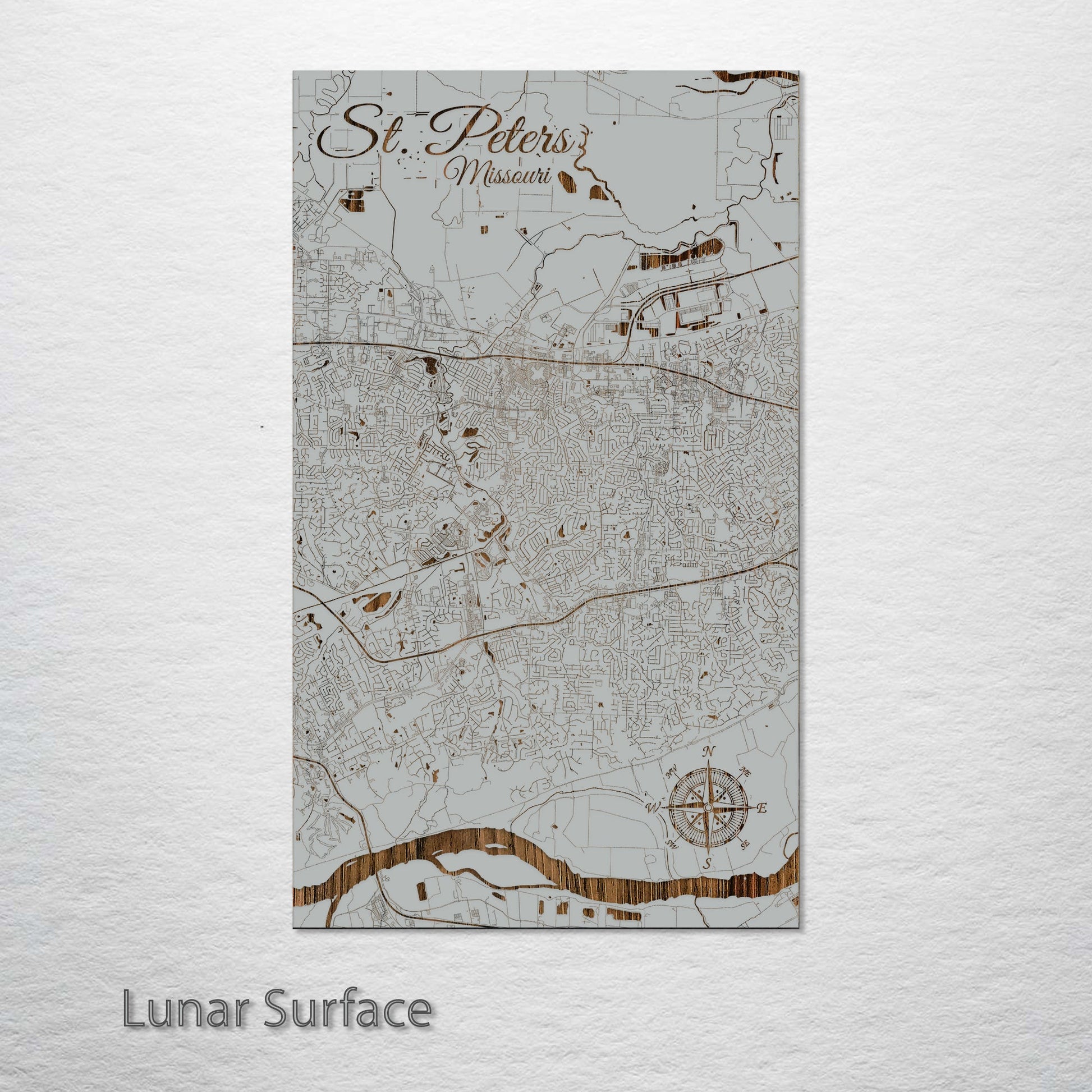This is a street map of St. Peters, MO designed by Fire & Pine artists.