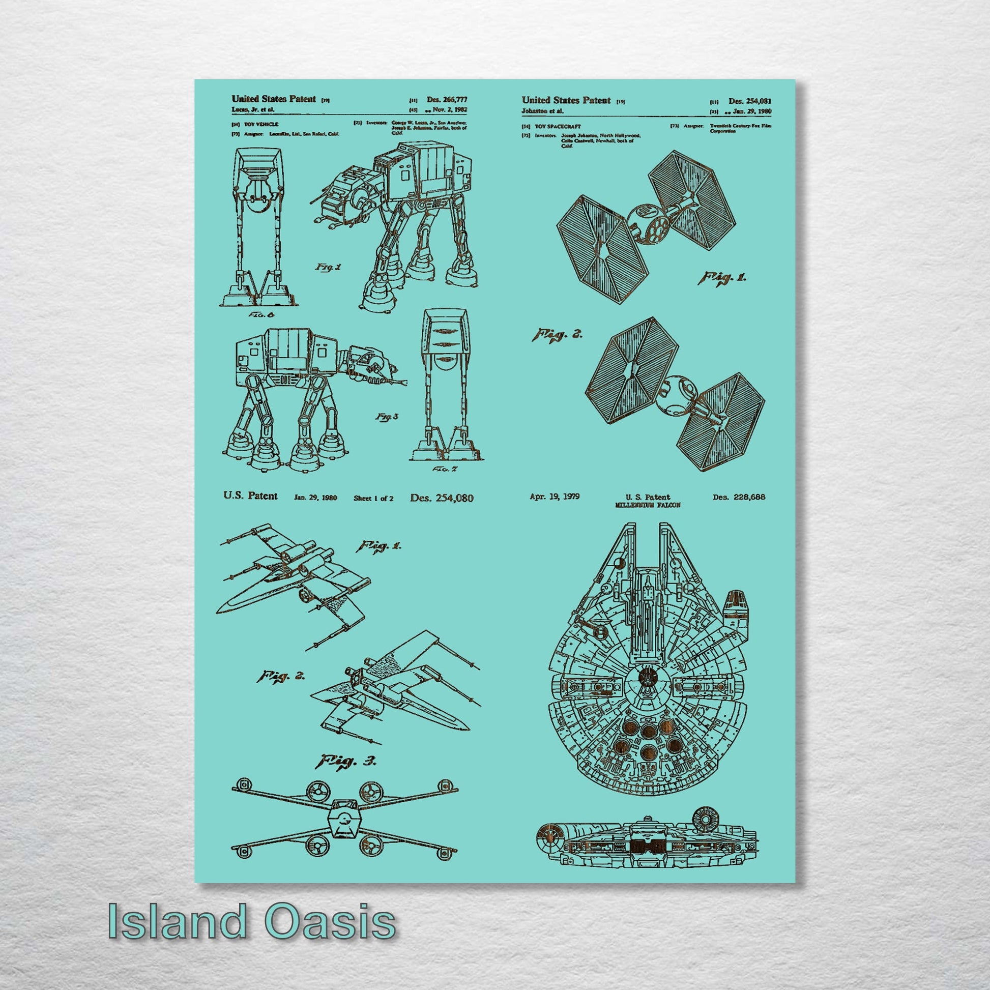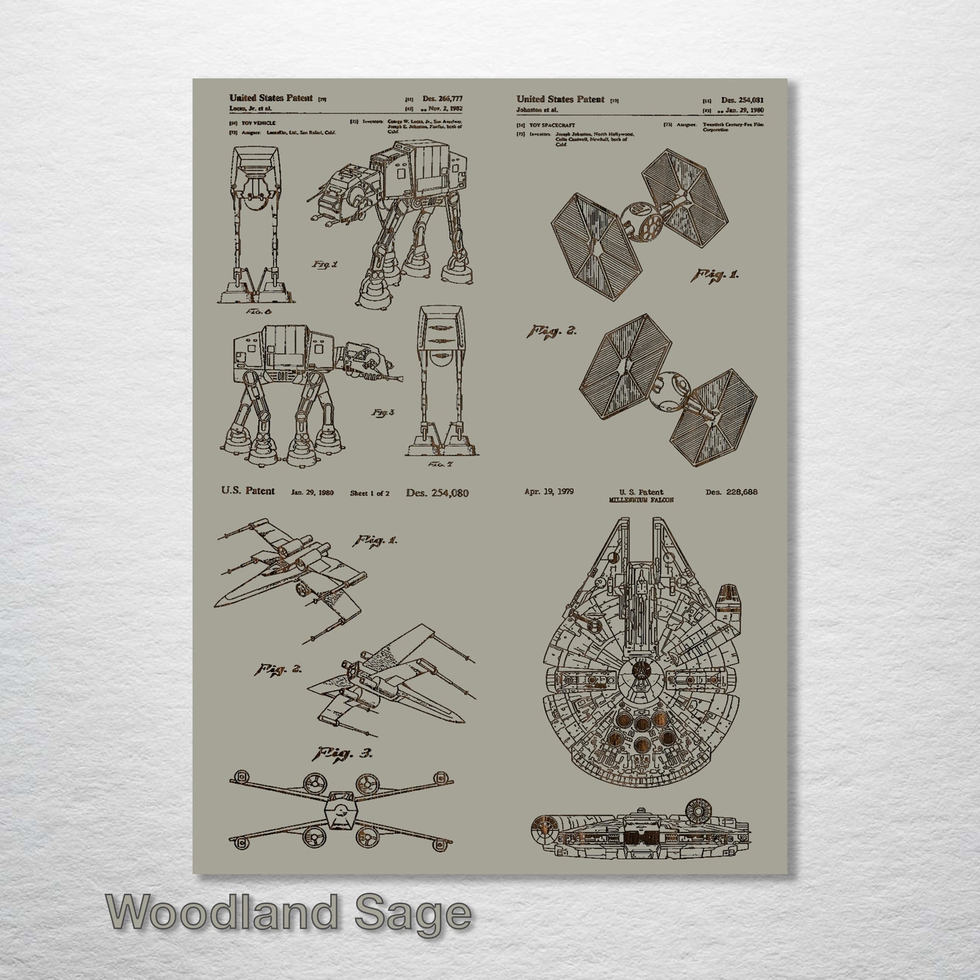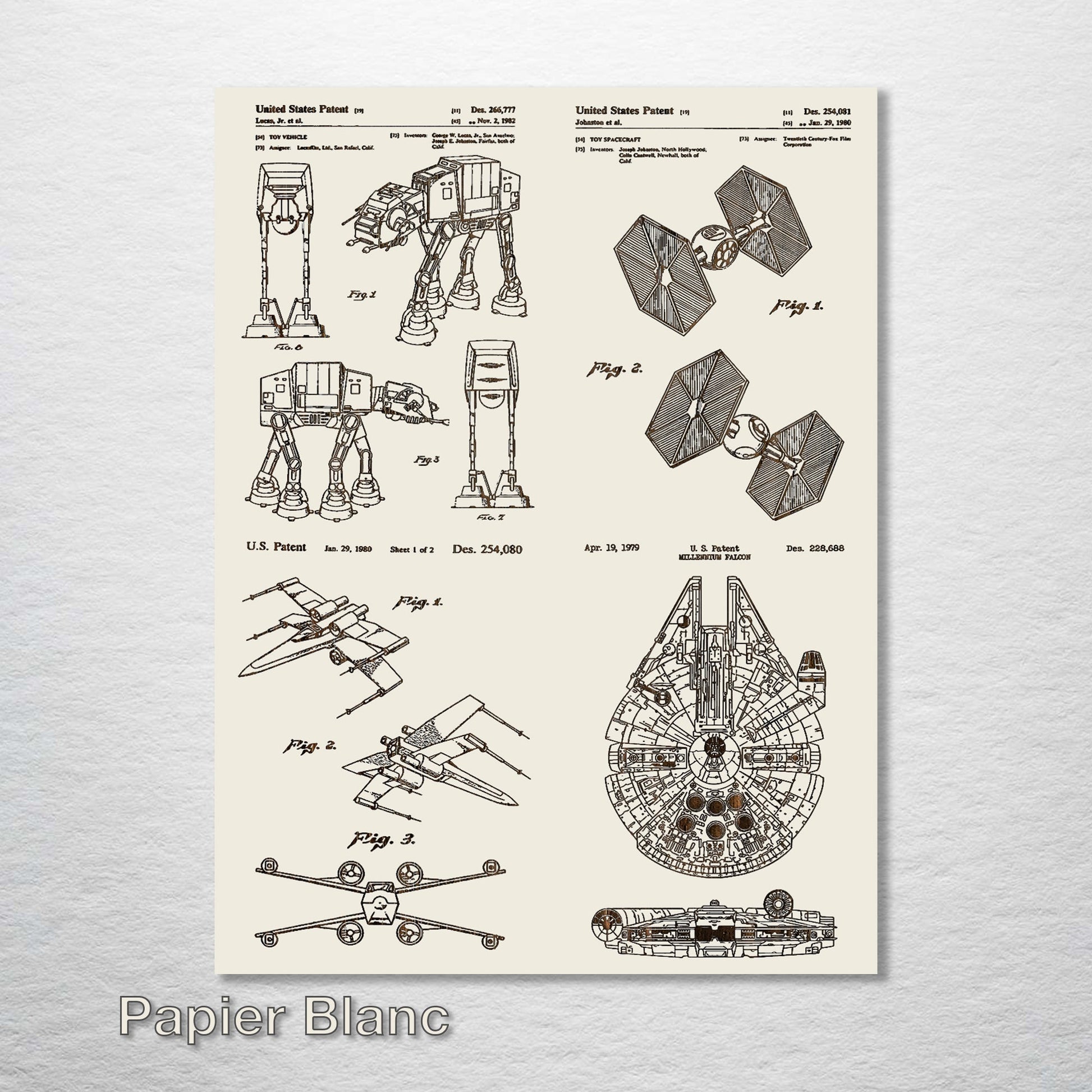 This is a four US Patent piece showing various vehicles from Star Wars.