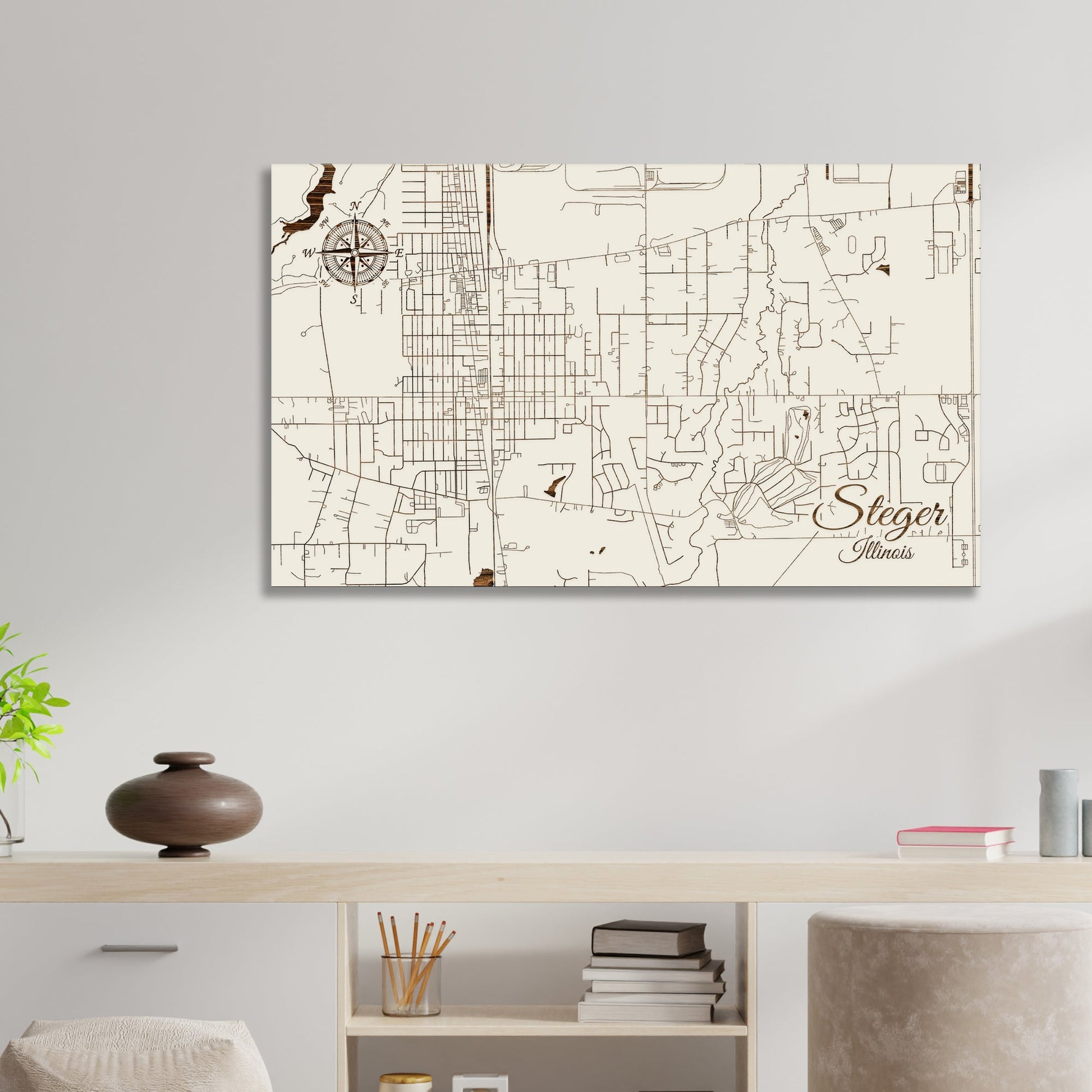 This is a street map of Steger, IL designed by Fire & Pine artists.